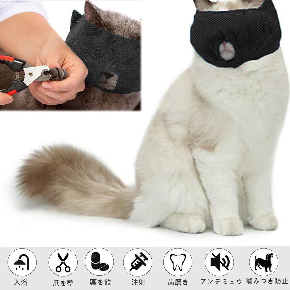 YonTens 猫用 マスク 目隠し ペット フェイスマスク 穴あり 通気性 保護マスク爪切り補助用 耳掃除 マスク 噛みつき防止 猫を落ち着かせる、猫の餌やり、お風呂、爪切り、清潔、外出、予防接種に使用します (ブラック, S)