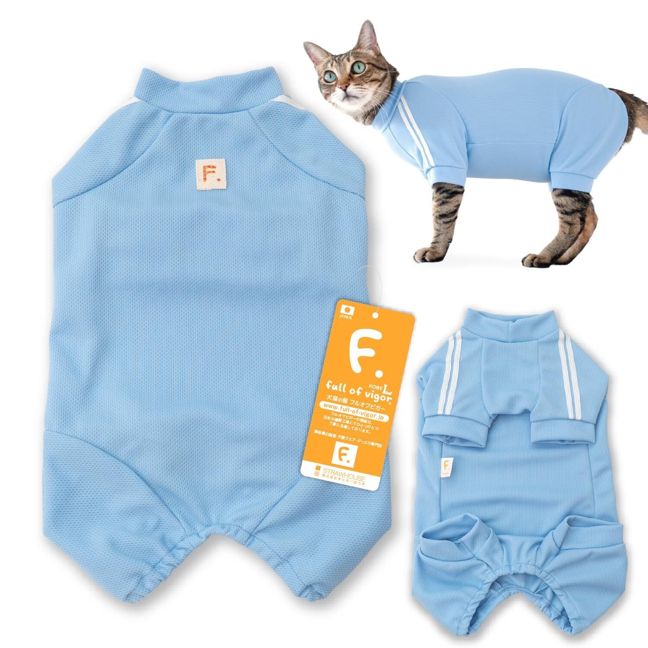 猫服 体操服 ジャージ つなぎ 抜け毛対策 長袖 ロンパース 猫の服 フルオブビガー 7/スカイブルー CM