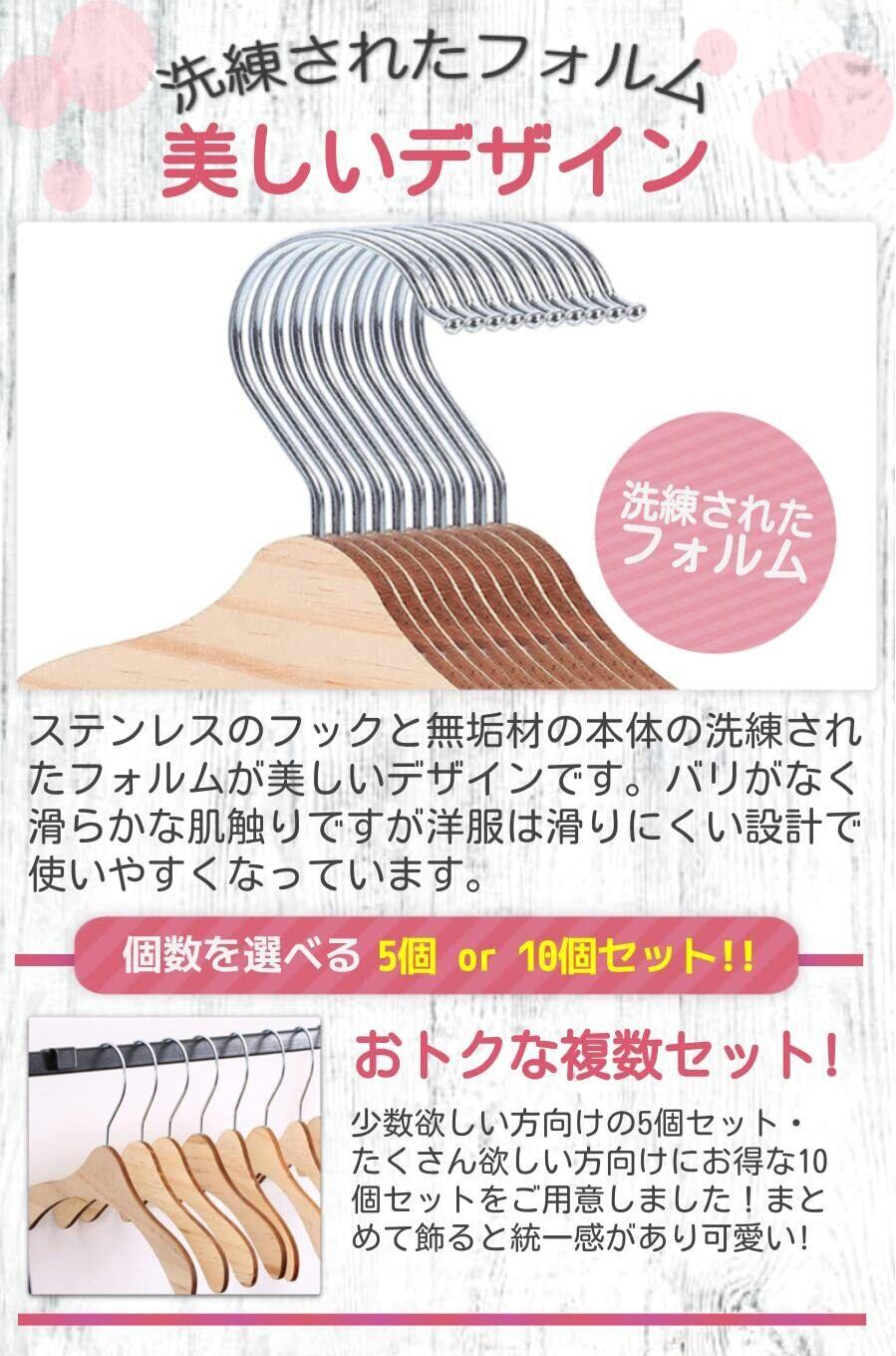 【美しいデザイン】ステンレスのフックと無垢材の本体の洗練されたフォルムが美しいデザインです。バリがなく滑らかな肌触りですが洋服は滑りにくい設計で使いやすくなっています。