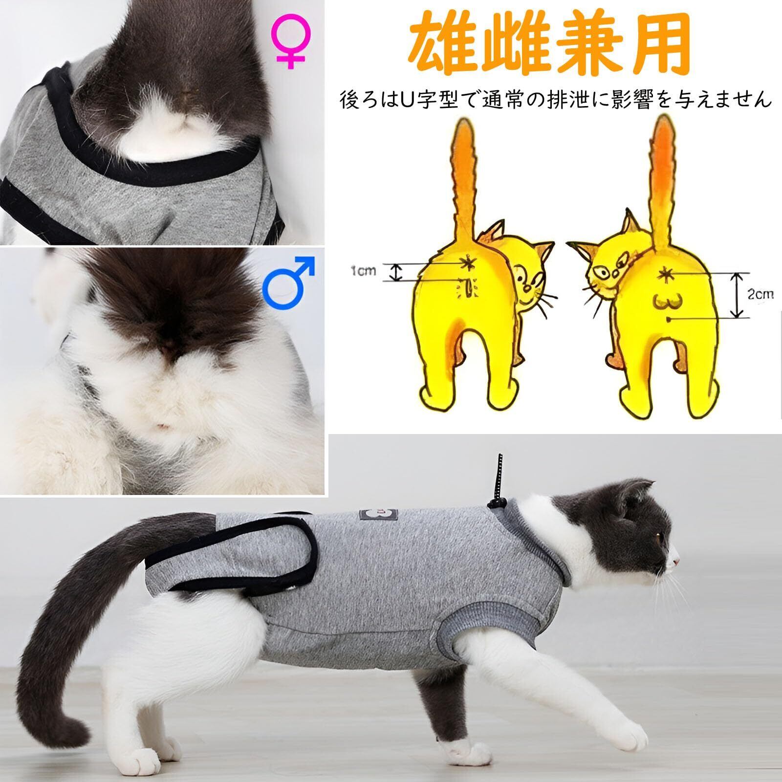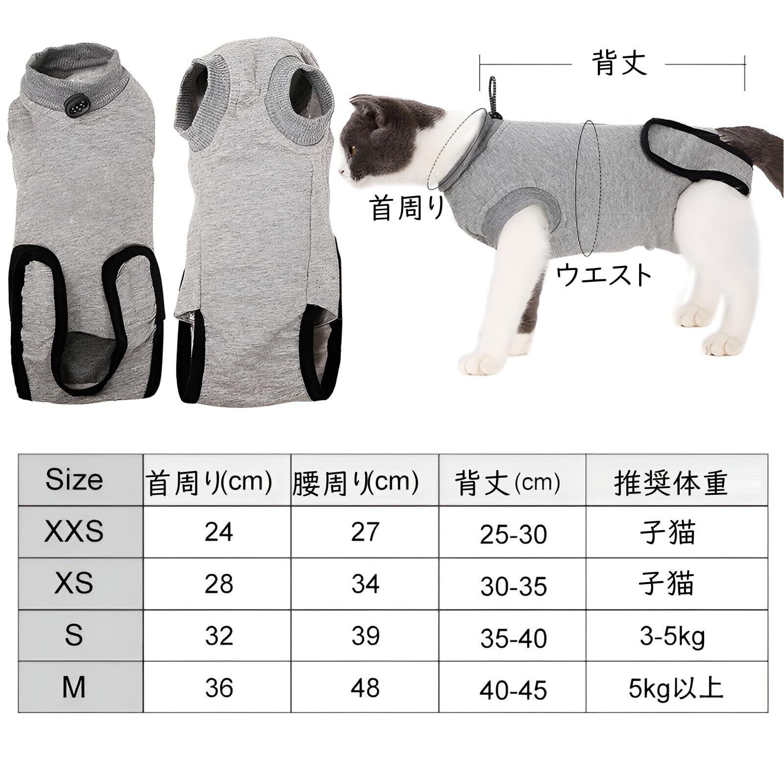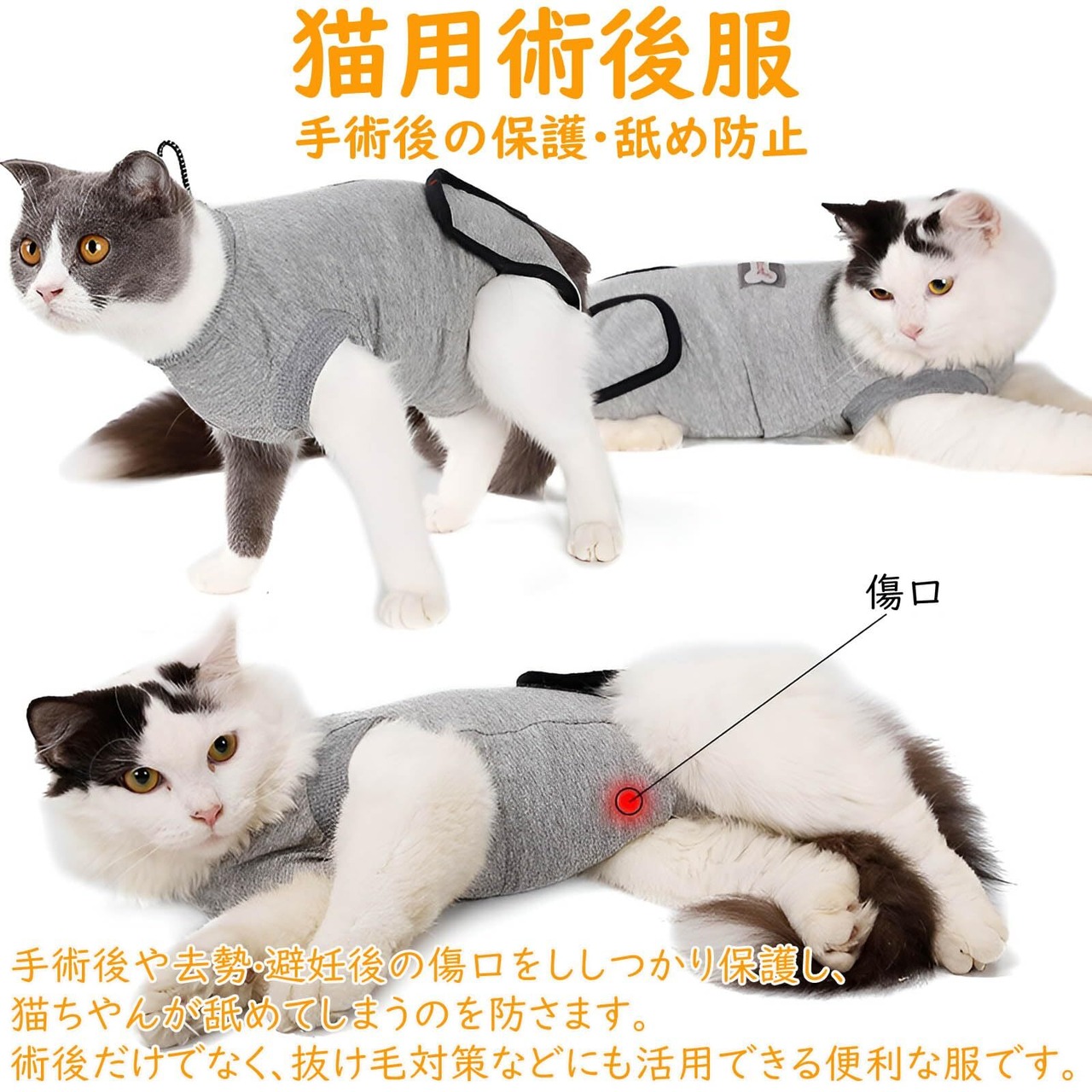 HAKONA 猫 術後服 メス オス猫 服 舐め防止 傷口保護 引っ掻き防止犬 術後服 女の子 男の子犬 介護用品 犬服 可愛い猫 ロンパース猫用術後ウェア猫服 離乳服 ねこの服 ストレス軽減 着脱が容易 抜け毛対策ペット用品 グレー(M)