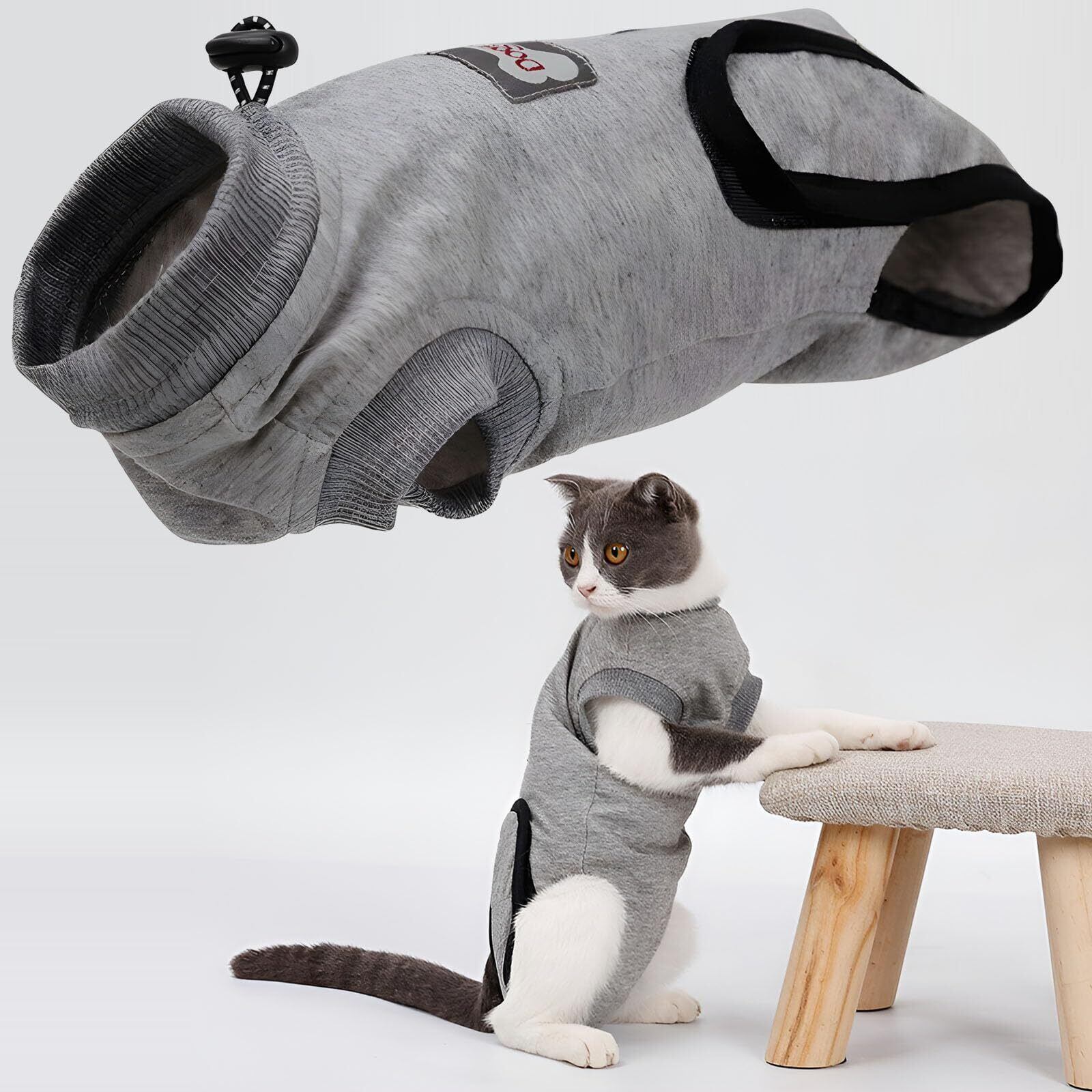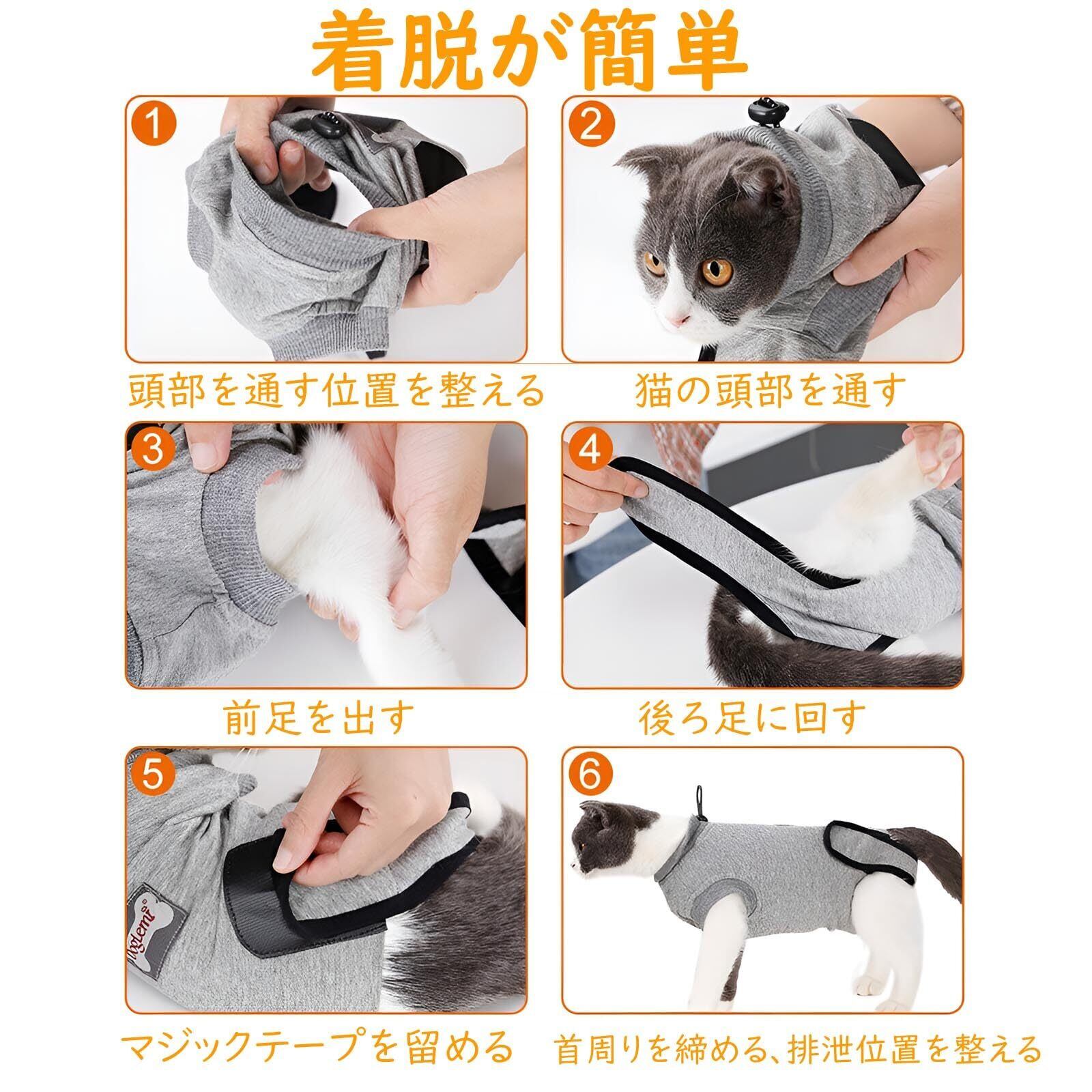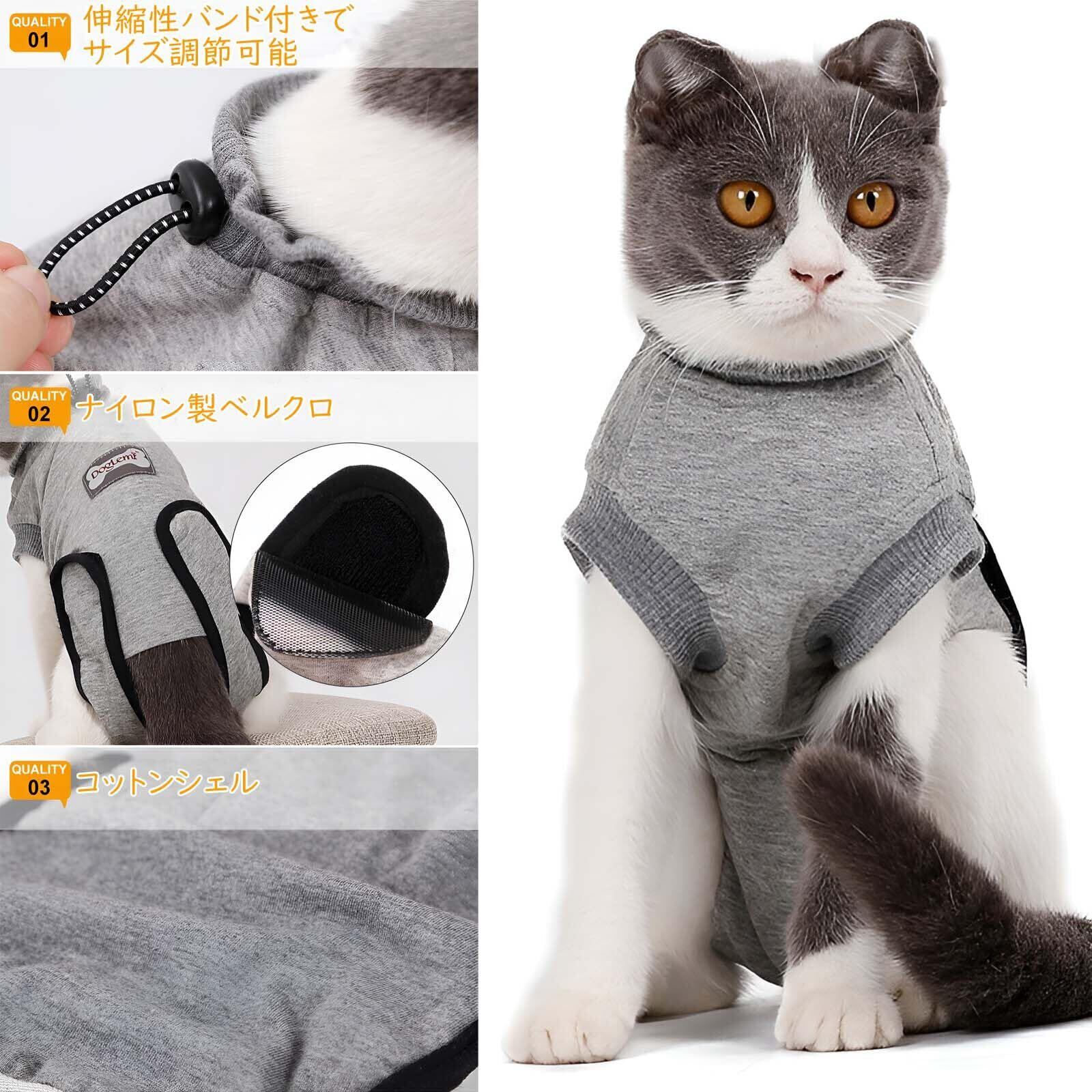 HAKONA 猫 術後服 メス オス猫 服 舐め防止 傷口保護 引っ掻き防止犬 術後服 女の子 男の子犬 介護用品 犬服 可愛い猫 ロンパース猫用術後ウェア猫服 離乳服 ねこの服 ストレス軽減 着脱が容易 抜け毛対策ペット用品 グレー(M)