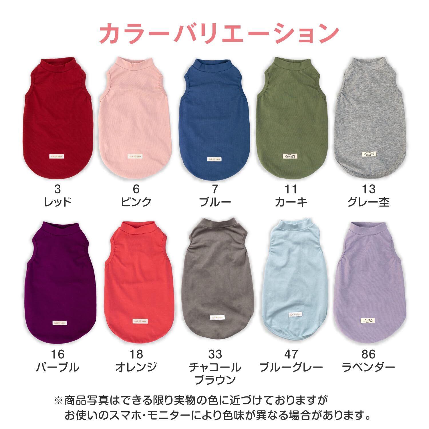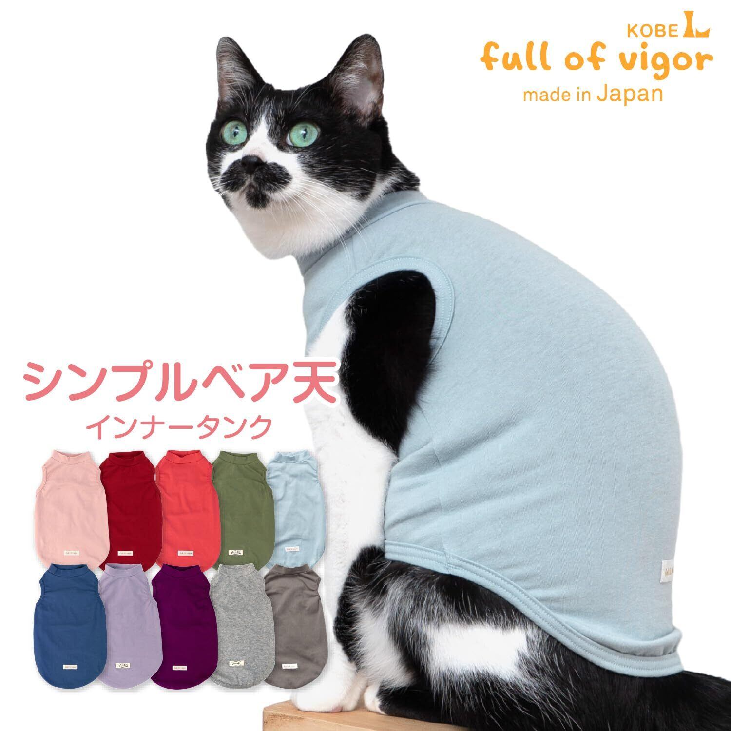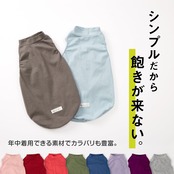 縦横斜めにストレッチ性の高いベア天竺を使用した、動きやすく締めつけのない通年着用できるタンク。 寒がりネコちゃんの保温やクーラー対策、抜け毛対策に。 お洋服デビューからシニア期まで、幅広く着用できるやさしいウエアです。 ベア天竺は伸縮性に優れ、ネコちゃんのストレスを出来る限り少なくします。 前身頃の丈は長めで、お腹の過剰グルーミング対策にもおすすめです。