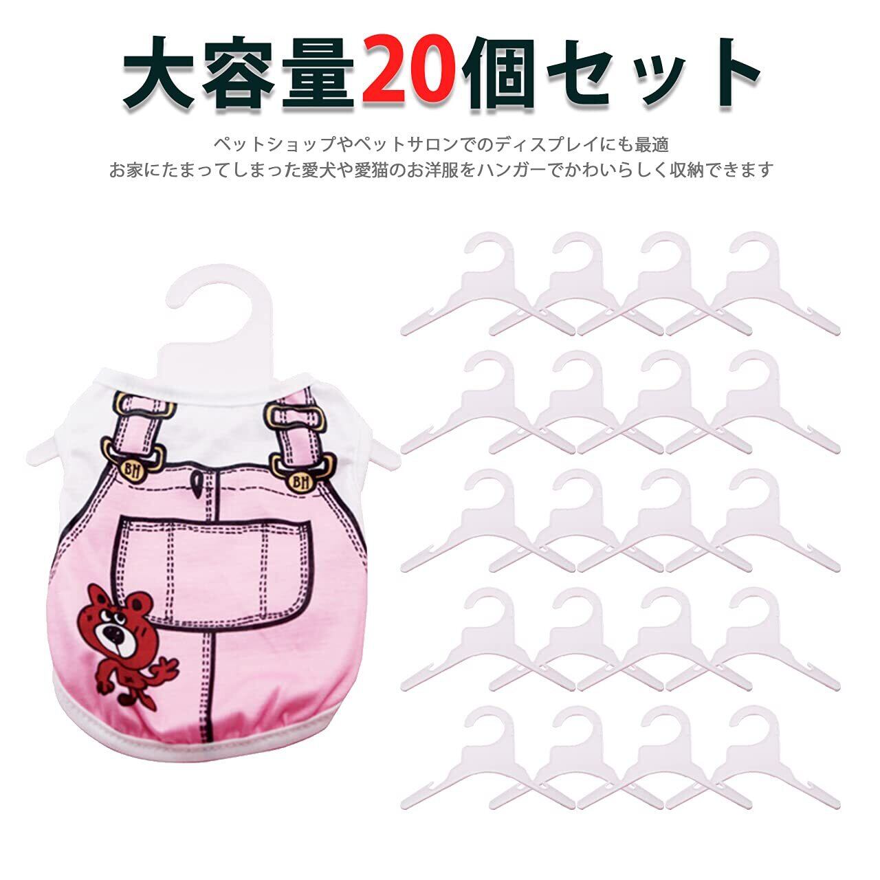 HIRAISM ペット ハンガー 犬 服 専用 かわいい おしゃれ ペット用品 プラスチック (ホワイト, 20個セット)
