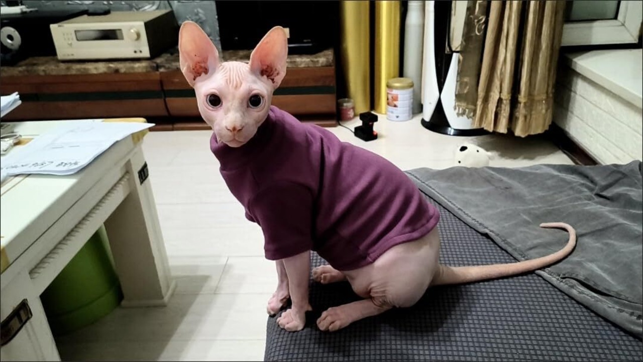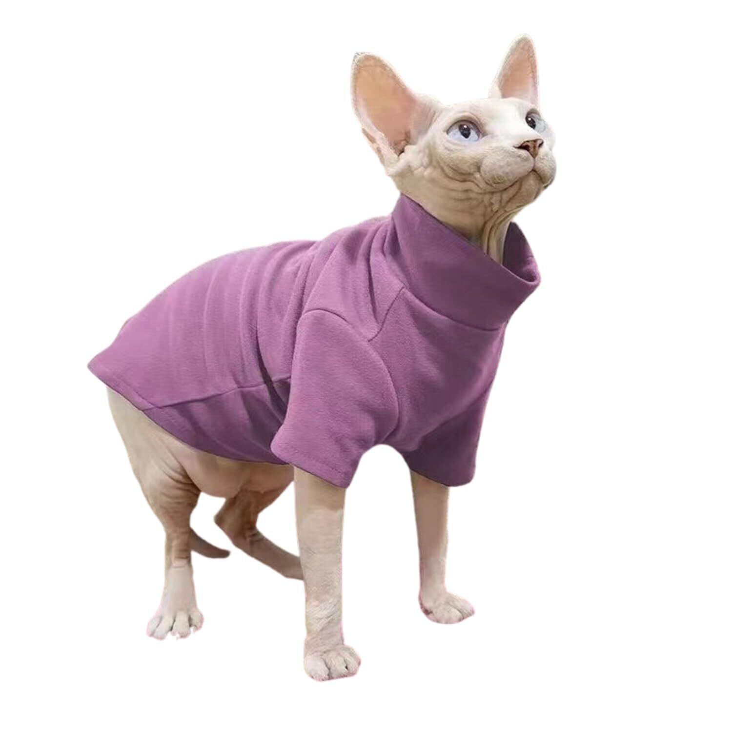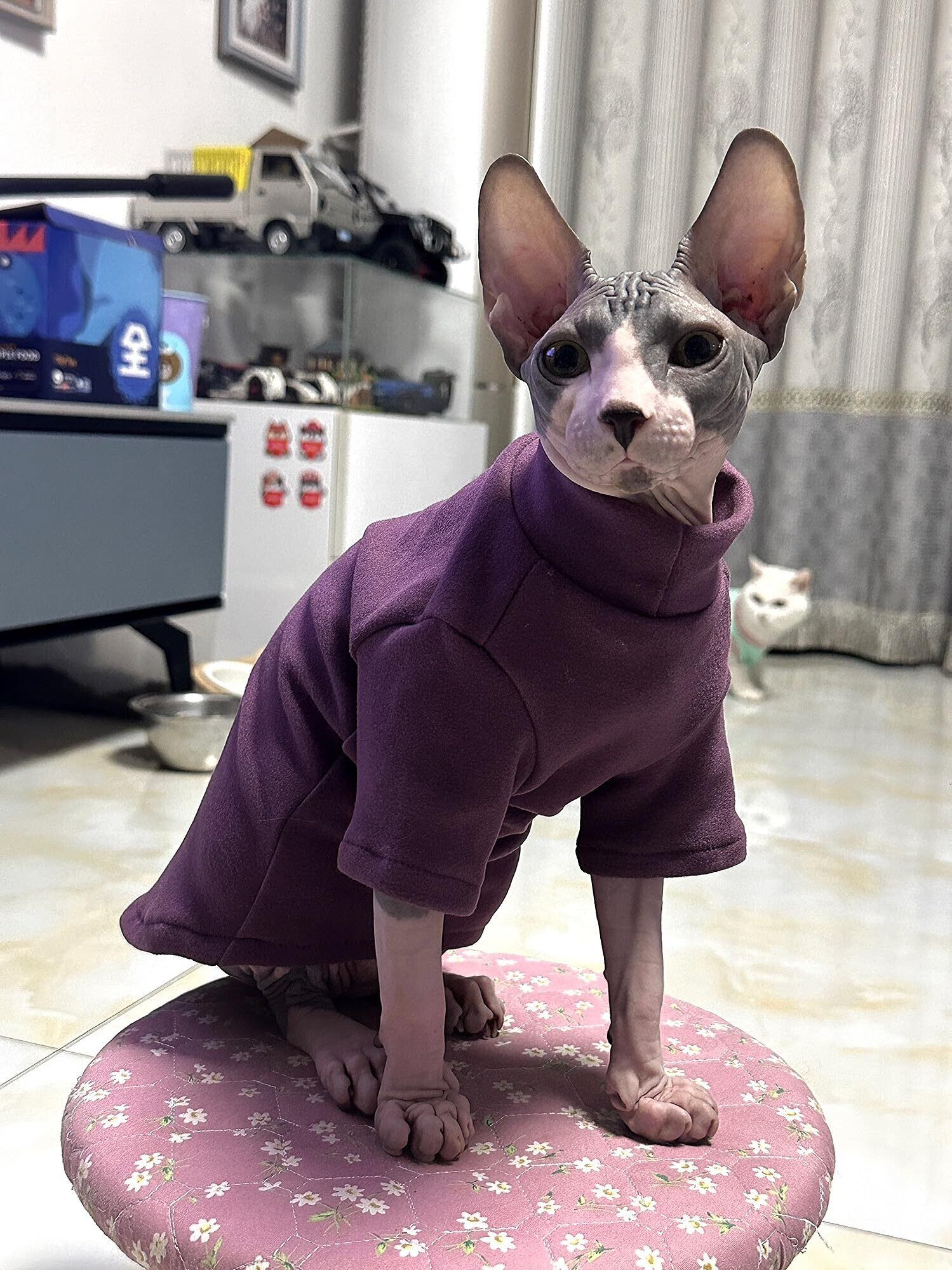 MEIAOJIA 猫服 冬着 猫パジャマ着 猫の服 ネコ 冬服 猫 スフィンクス 服 皮膚保護 猫 セーター コート パーカー かわいい 暖かい 防寒 猫用 秋冬衣装 紫 L