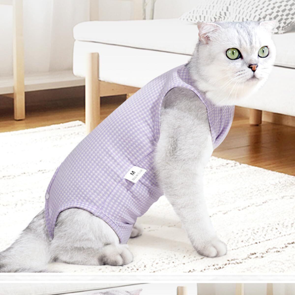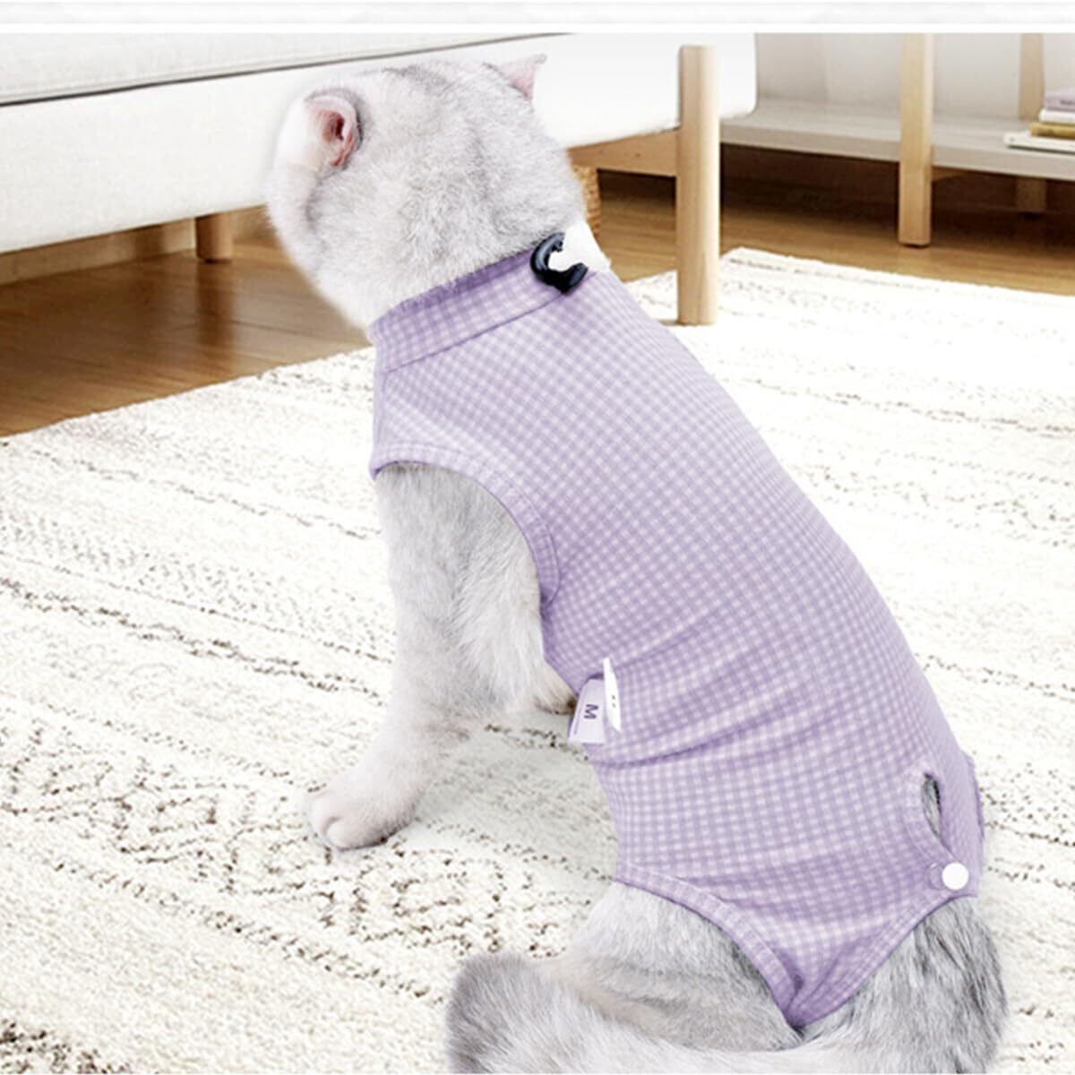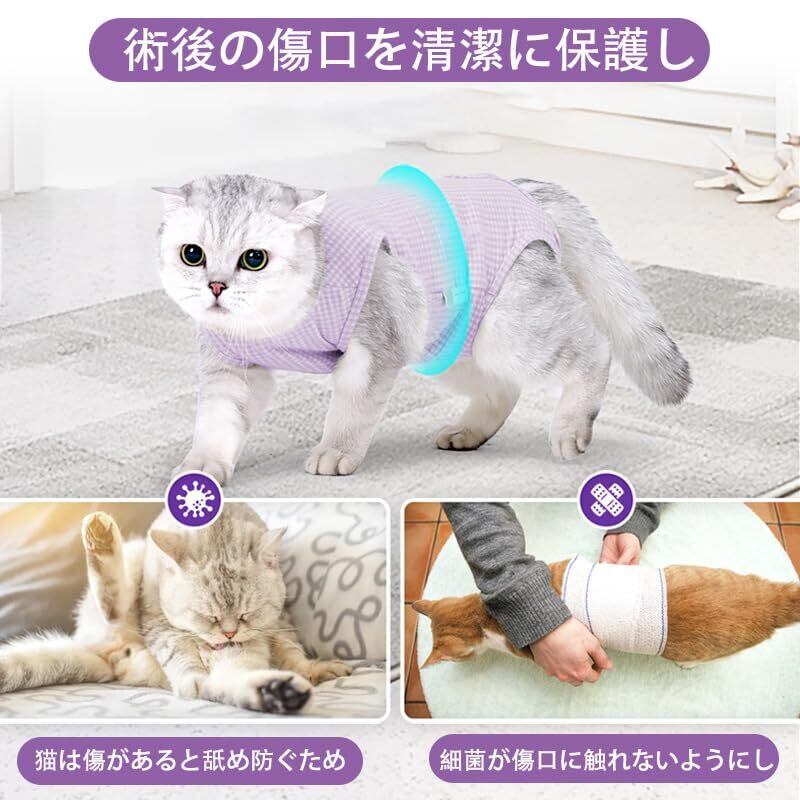 YOASONEK 猫 術後服 術後ウェア 猫の服 手術後 介護服 皮膚保護 不妊手術 傷口保護 避妊 傷舐め 引っ掻き防止 手術用 男の子 女の子 兼用 (パープル, S)