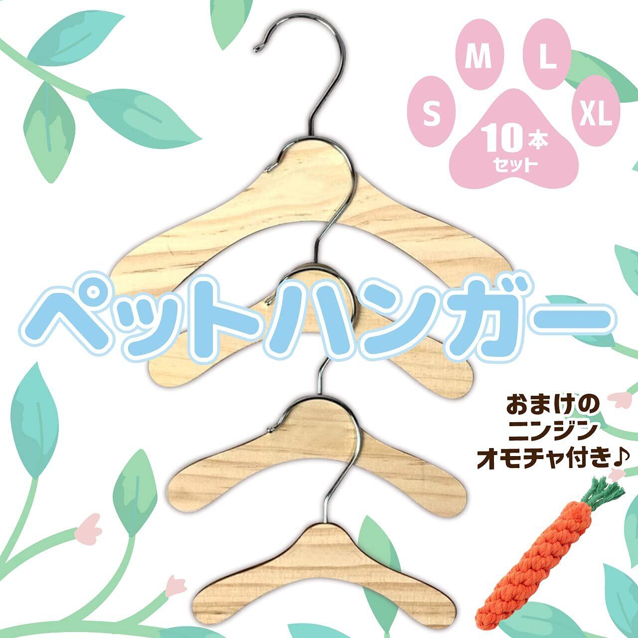 RERACO ペットハンガー 犬 服 ハンガー ペット用 犬用 木製 10本セット 猫 おしゃれ かわいい 小型犬 洋服 ドッグ (M・おもちゃ付)