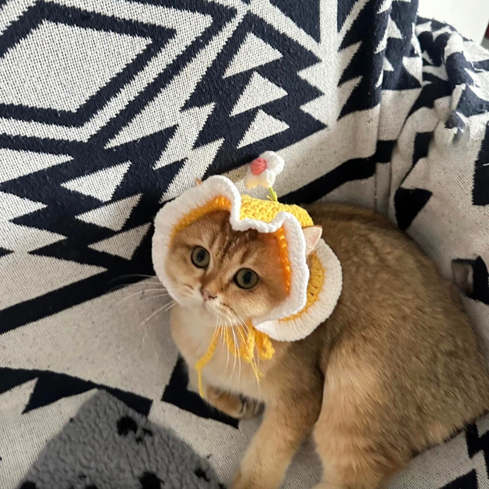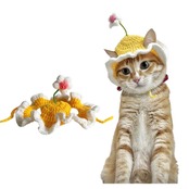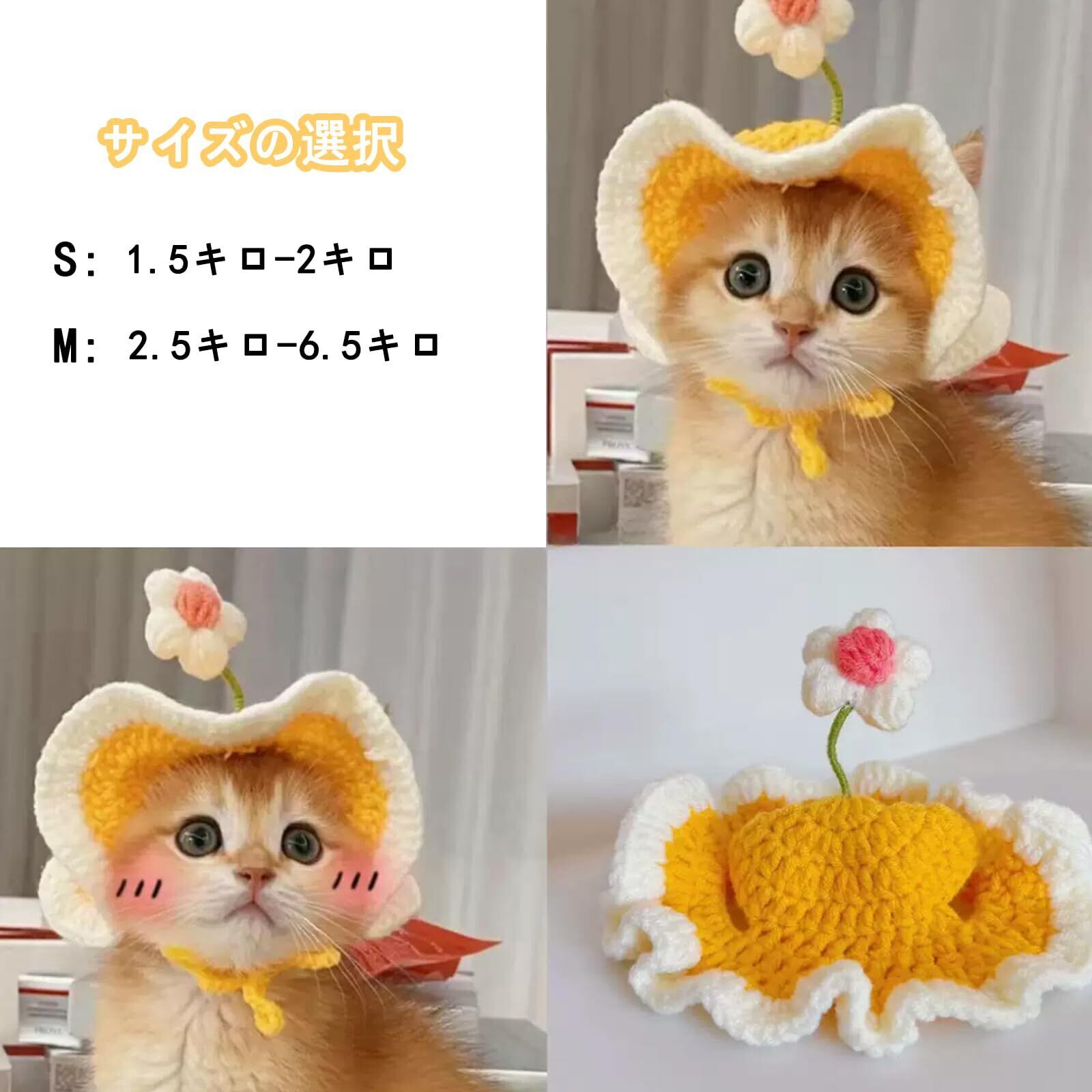猫帽子 猫コスプレ ペット用帽子 可愛いペット用 パンダ クマ 猫用 犬用 被り物 かぶりも 可愛い 春と夏の旅 花を携えて (M)
