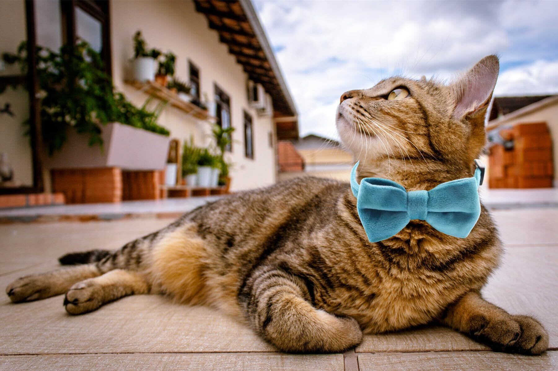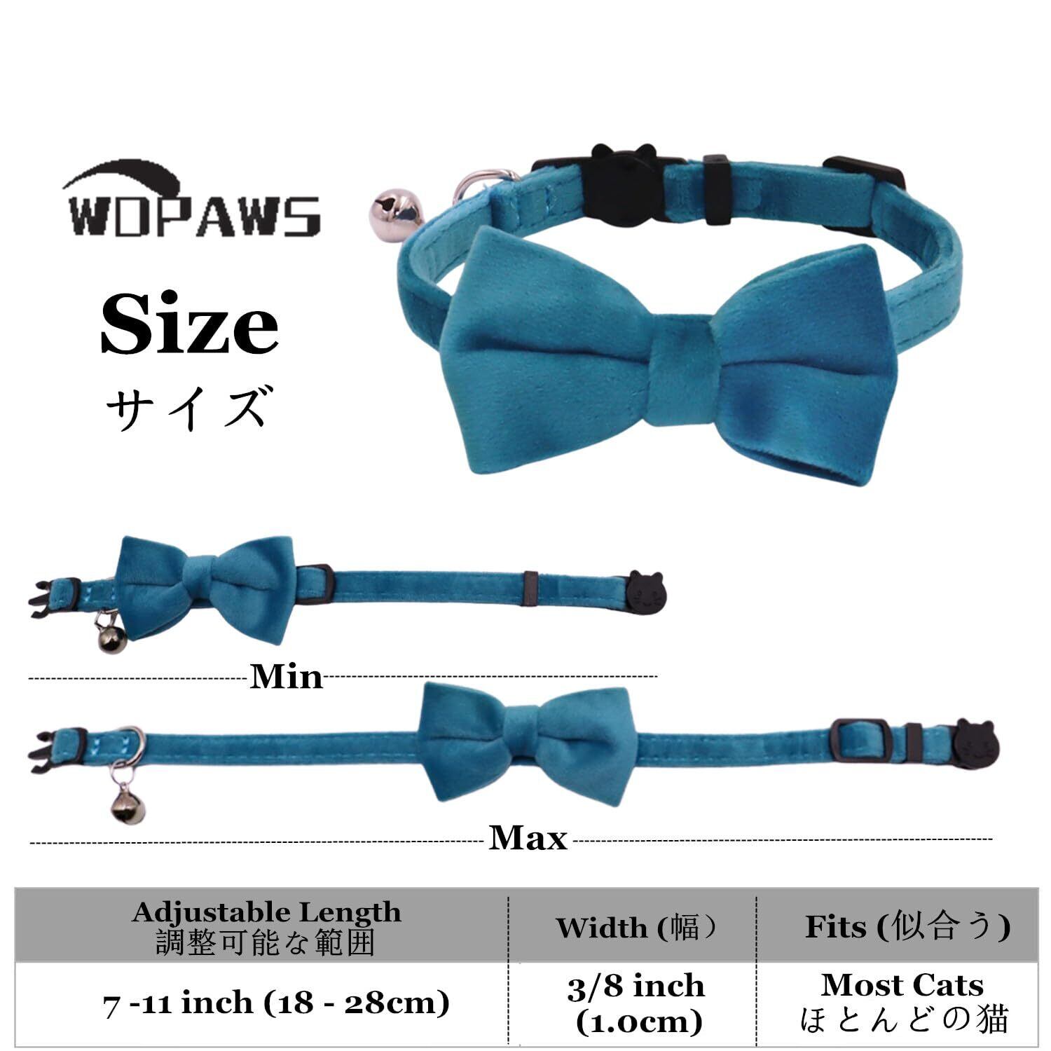 WDPAWS猫 首輪 猫の首輪 子猫 調節可能 可愛い 蝶結び付き 鈴付き (ブルー)