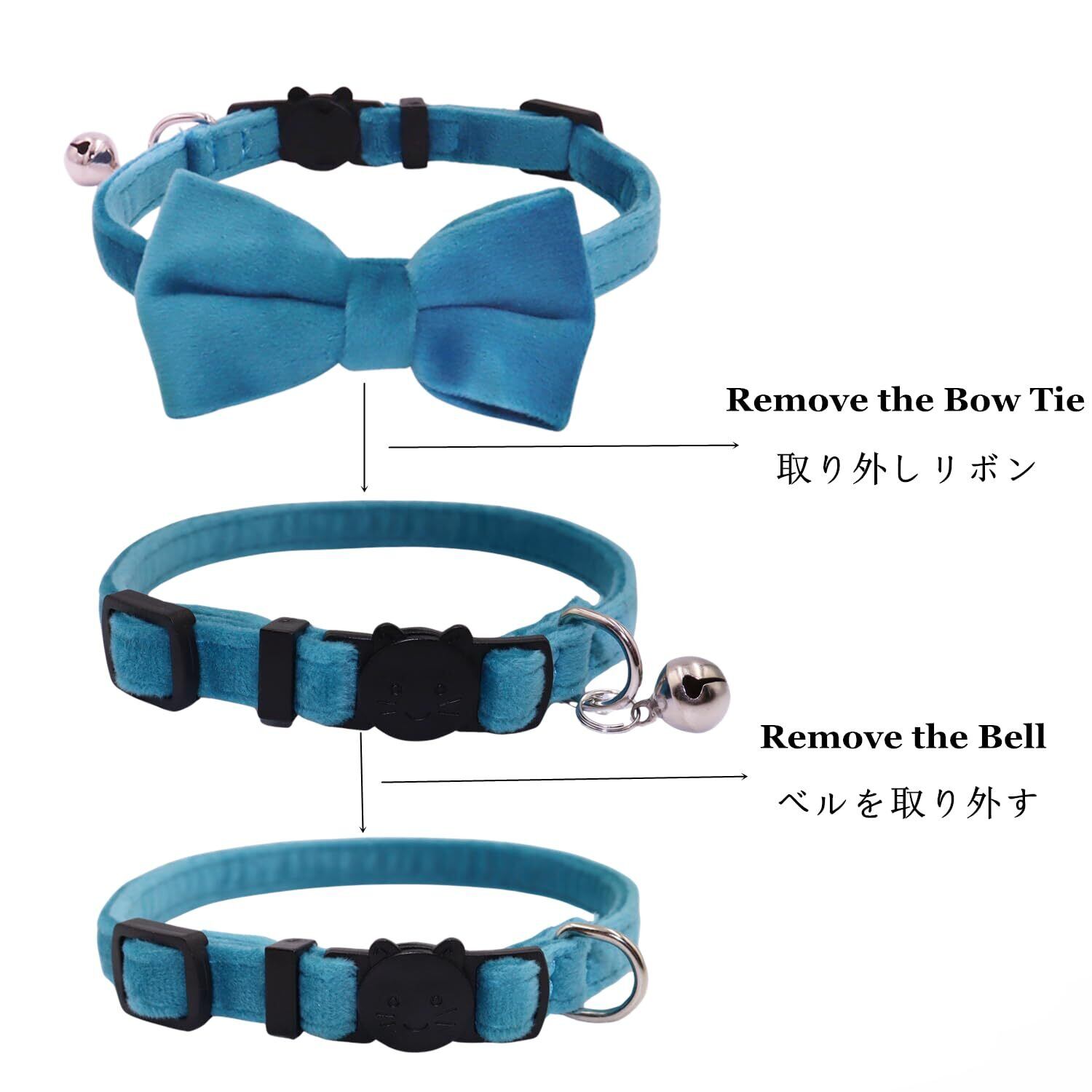 ●首輪は蝶結び付きで、オシャレで可愛いです。蝶結びが必要ないなら、蝶結びを取り外してからおつけください。