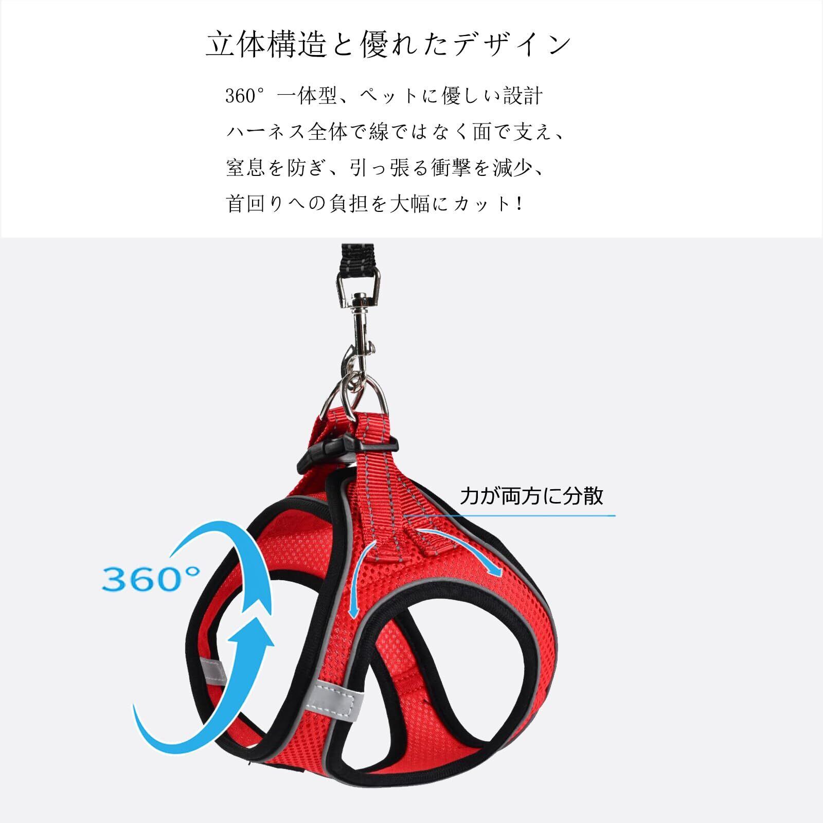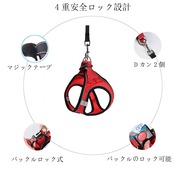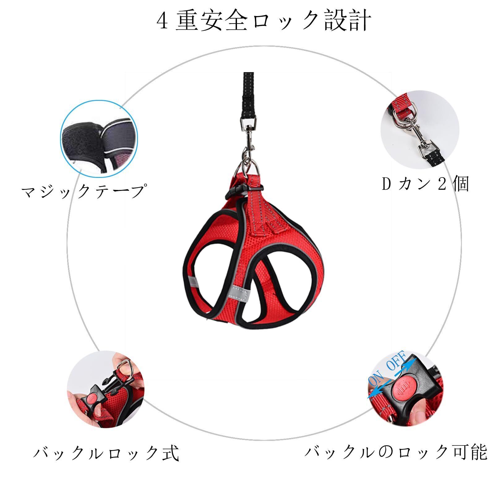 L'andFree 猫 猫用 ハーネス リード 4重ロック 抜けない リード付きハーネス 小型犬 犬 ねこ ネコ 子猫 散歩 お出かけ 夜反射 ソフト胸あて 軽量 装着簡単 サイズ調節可 通気 メッシュ(S レッド)