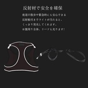 360°反射材で安全を確保 光を反射する反射材が付いているから夜間でも歩道を歩く人には知らせ、車や自転車のライトには反射が光るから猫ちゃん、ワンちゃんとより安全にお散歩できます。 付属のハンドガード付きリードも発光する反射素材を使っており、より効果的なコントロールが可能となり、紛失の防止にも役立ちます。