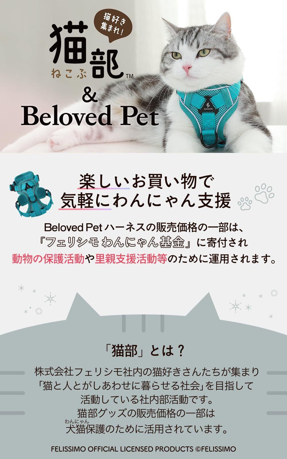 【柔らか素材】マジックテープで取り付けるものと違い、全体的に柔らかく猫の体にフィットします。
