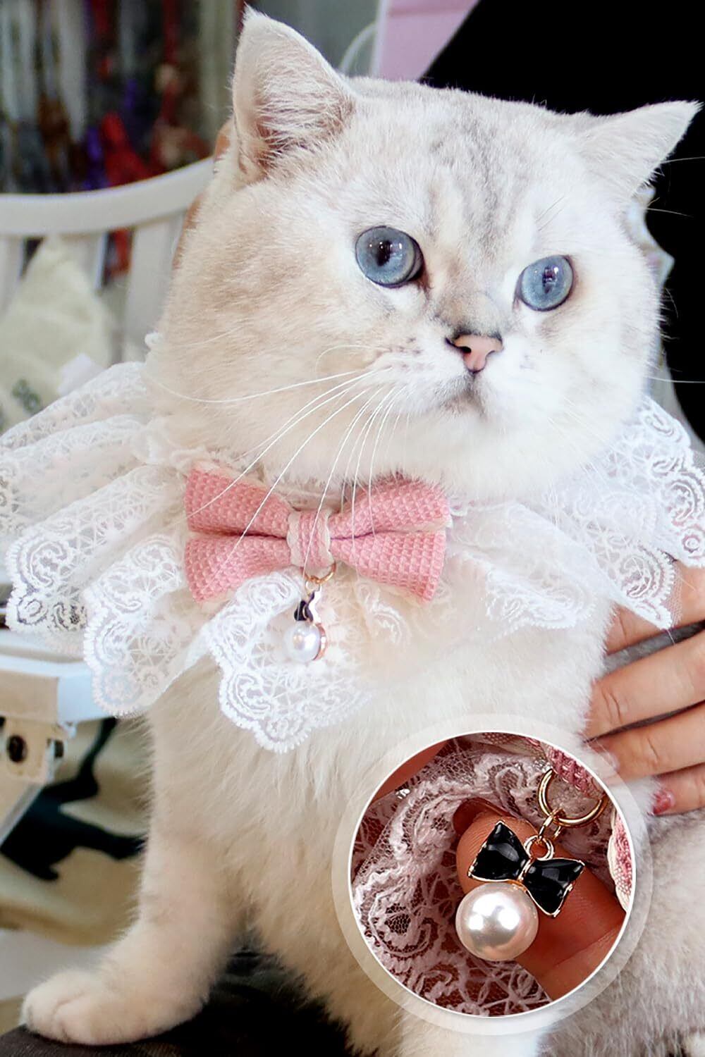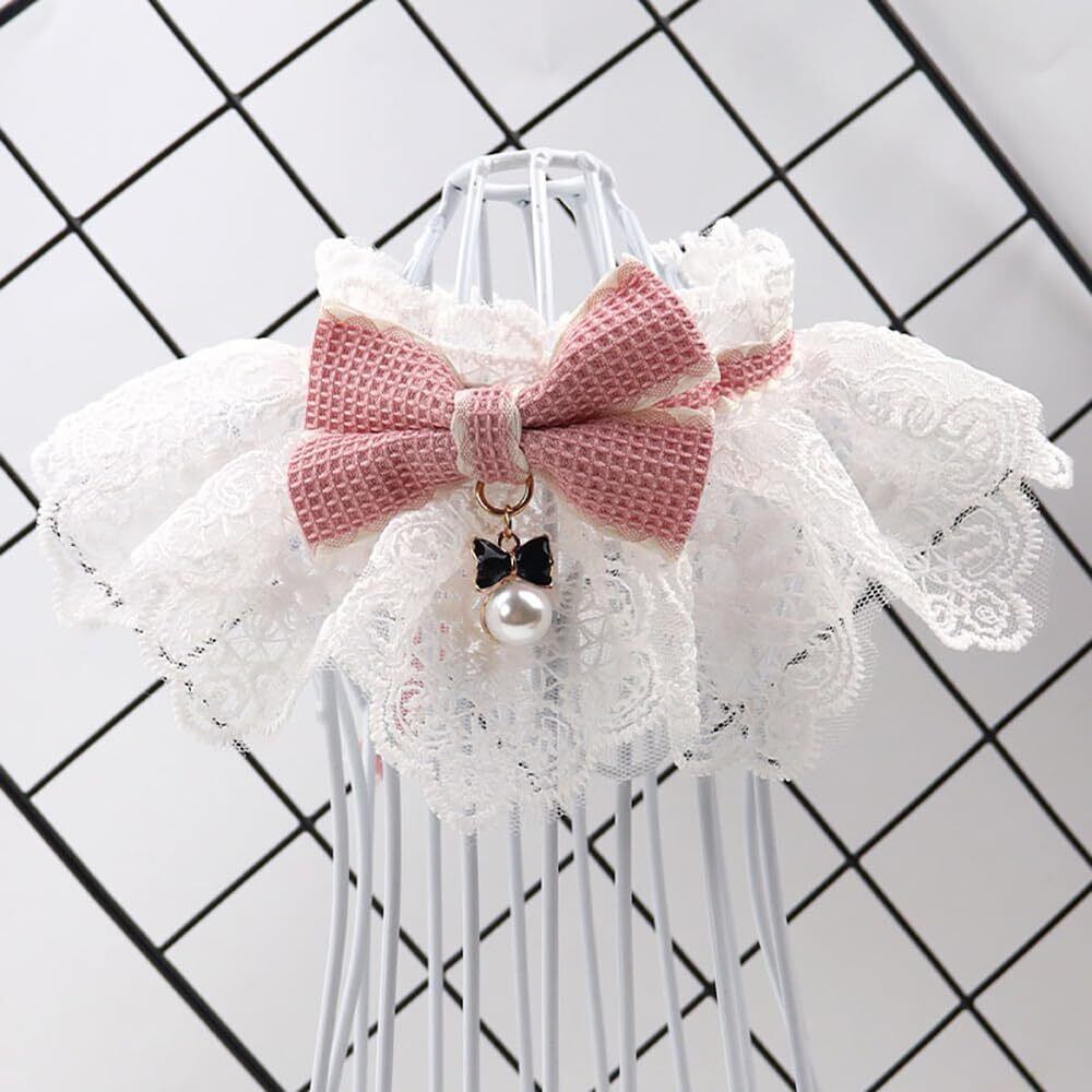 TCYYNEK 猫首輪 犬首輪 リボン かわいい首輪 猫くびわ 猫 项圈 超軽量 ペット用首輪 蝶ネクタイ かわいい 軽い 中小型 犬 猫用首輪 ペット用品 (ピンク, M)