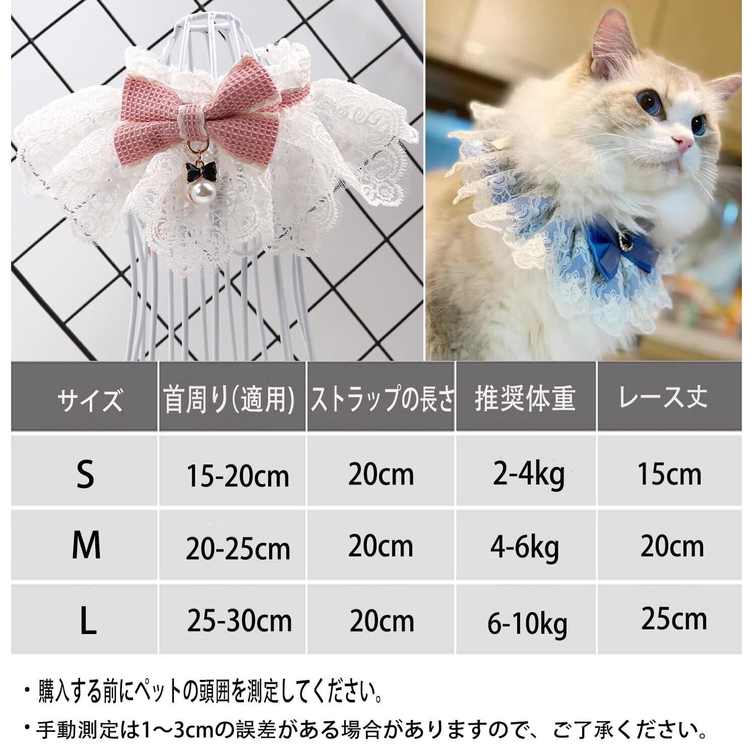 【用途】-よだれかけを使用することで、毛を汚すことを防げ、首をいつも清潔に保つできます。日常の服アクセサリーとしても最適です。デザインがかわいいから、日常着、写真撮影、パーティー、結婚式にピッタリです!