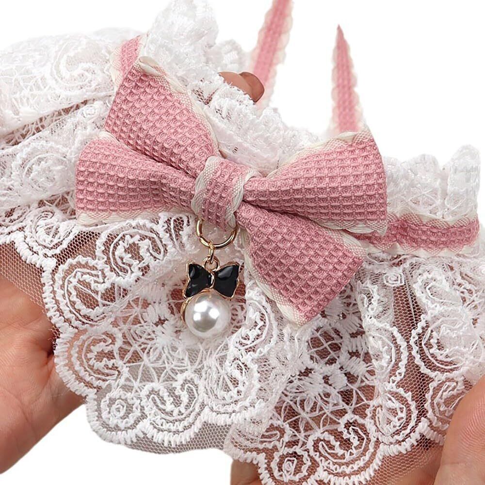 【可愛い見た目】-ビビットカラーで元気にお出かけ!かぶるだけで大変身!可愛いレースデザイン、素敵な蝶結の装飾があり、ペットをもっと可愛くさせます。