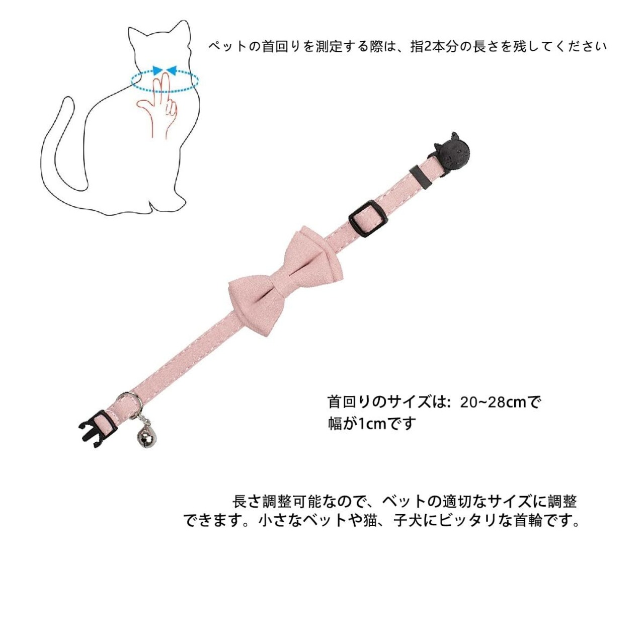 【素材とカラー】猫 首輪の素材は耐久性のある布生地で柔らかくとても軽いから、猫ちゃんに優しいです、デザインはシンプルで上品です; 首回りのサイズは:20~28cmで、幅が1cmです、長さ調整可能です。※ご注意:写真撮影の照明や、画像処理の加減により実物の色と若干異なる場合もございます。予めご了承の上ご購入下さい。