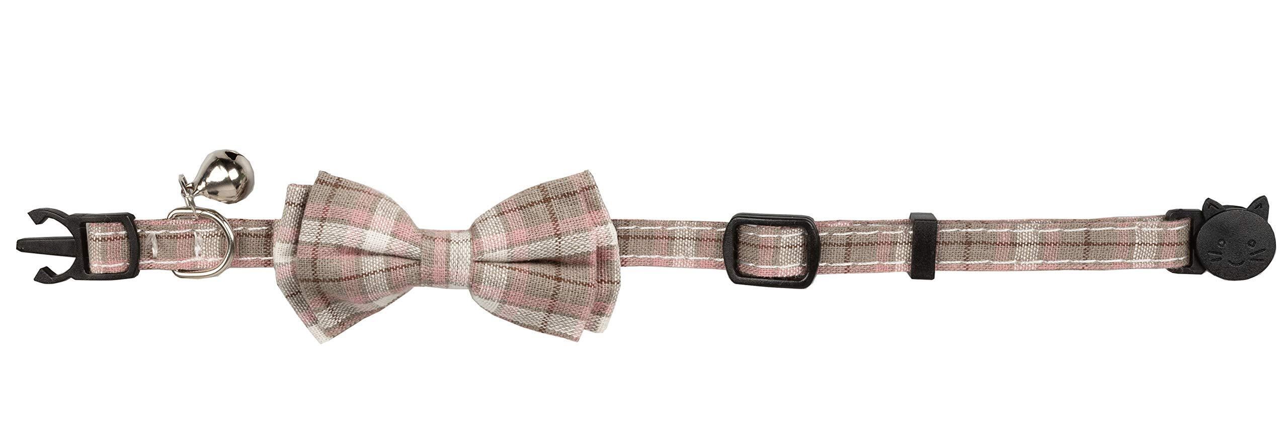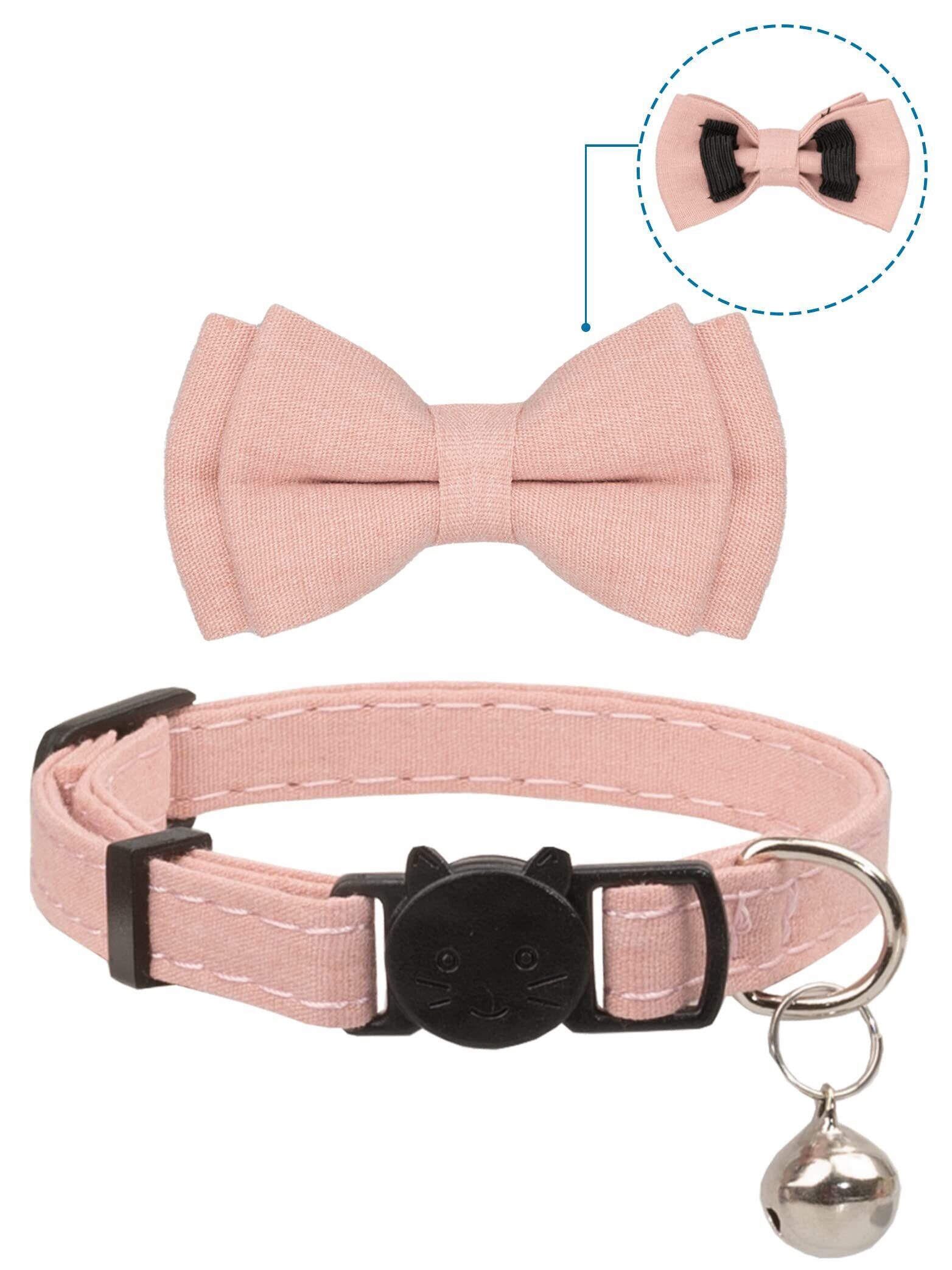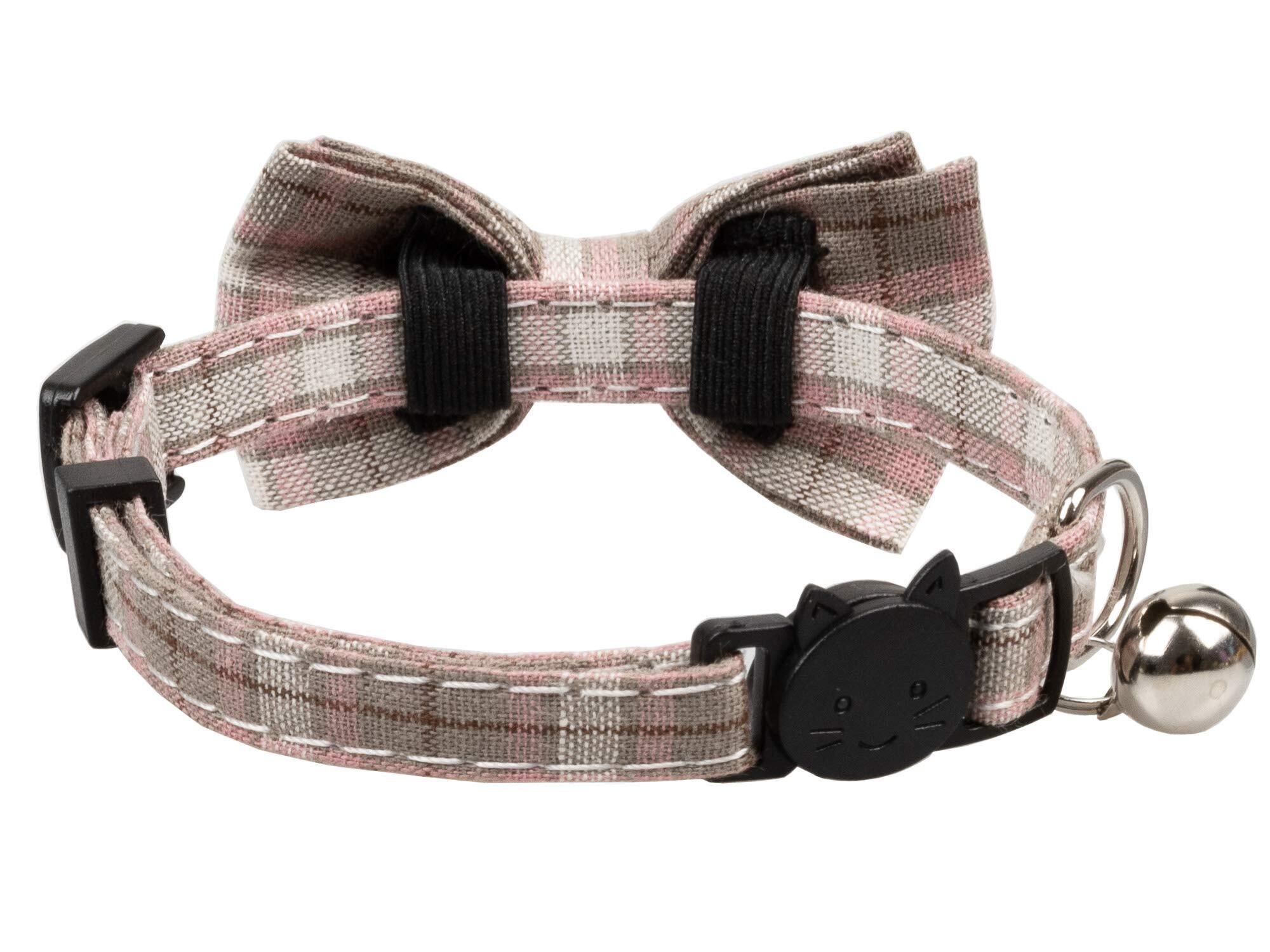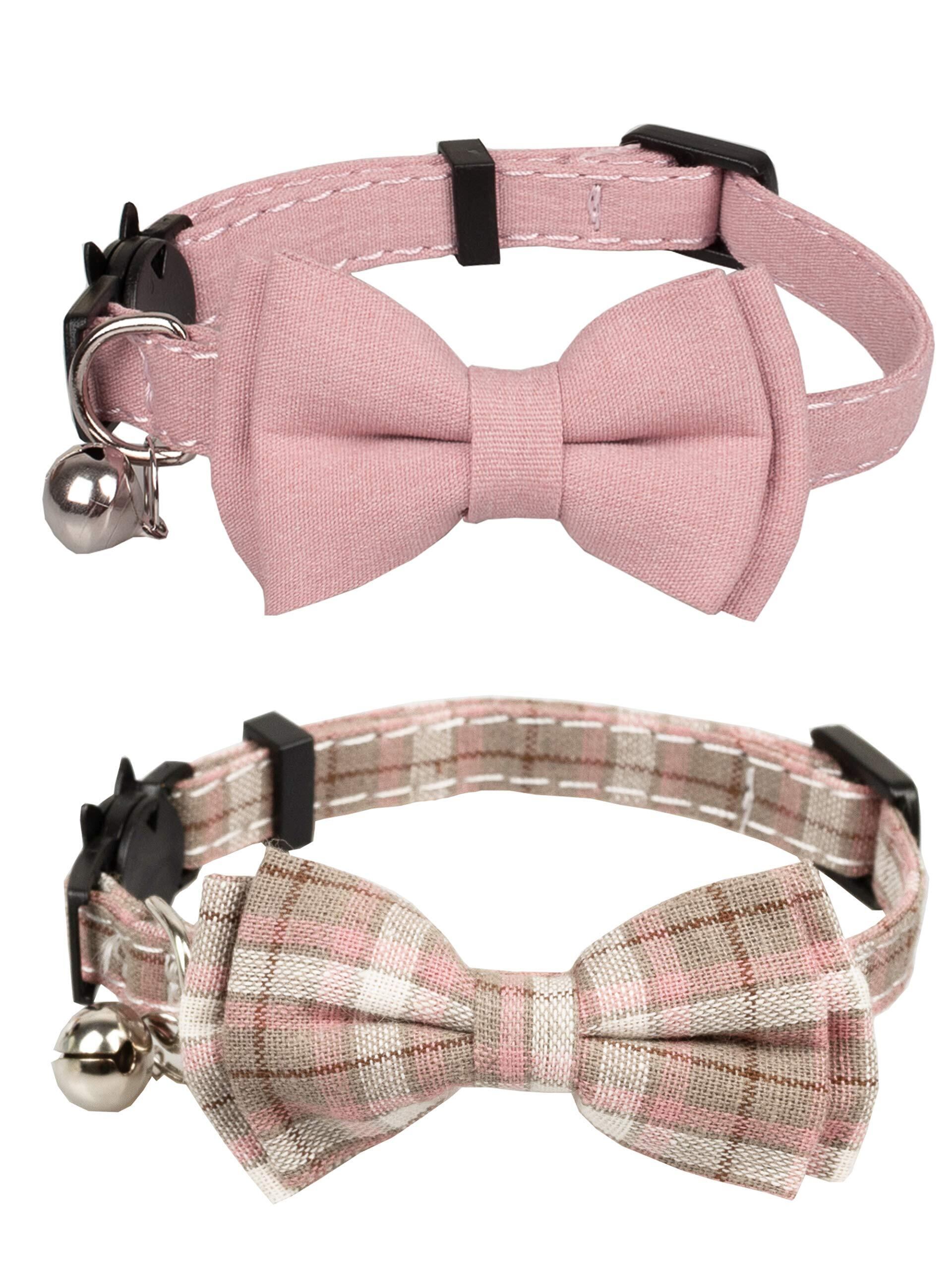 猫 首輪 ネコ 猫用 首輪 子犬 迷子札付き リボン付き 鈴付き セーフティバックル 可愛い 調整可能 軽量 ペット首輪 2個セット (ピンク+ピンク/ベージュ)