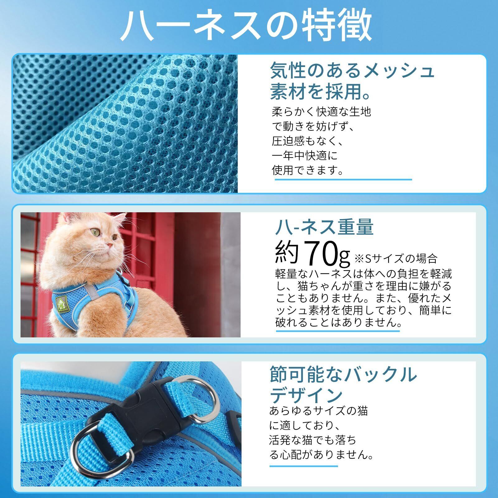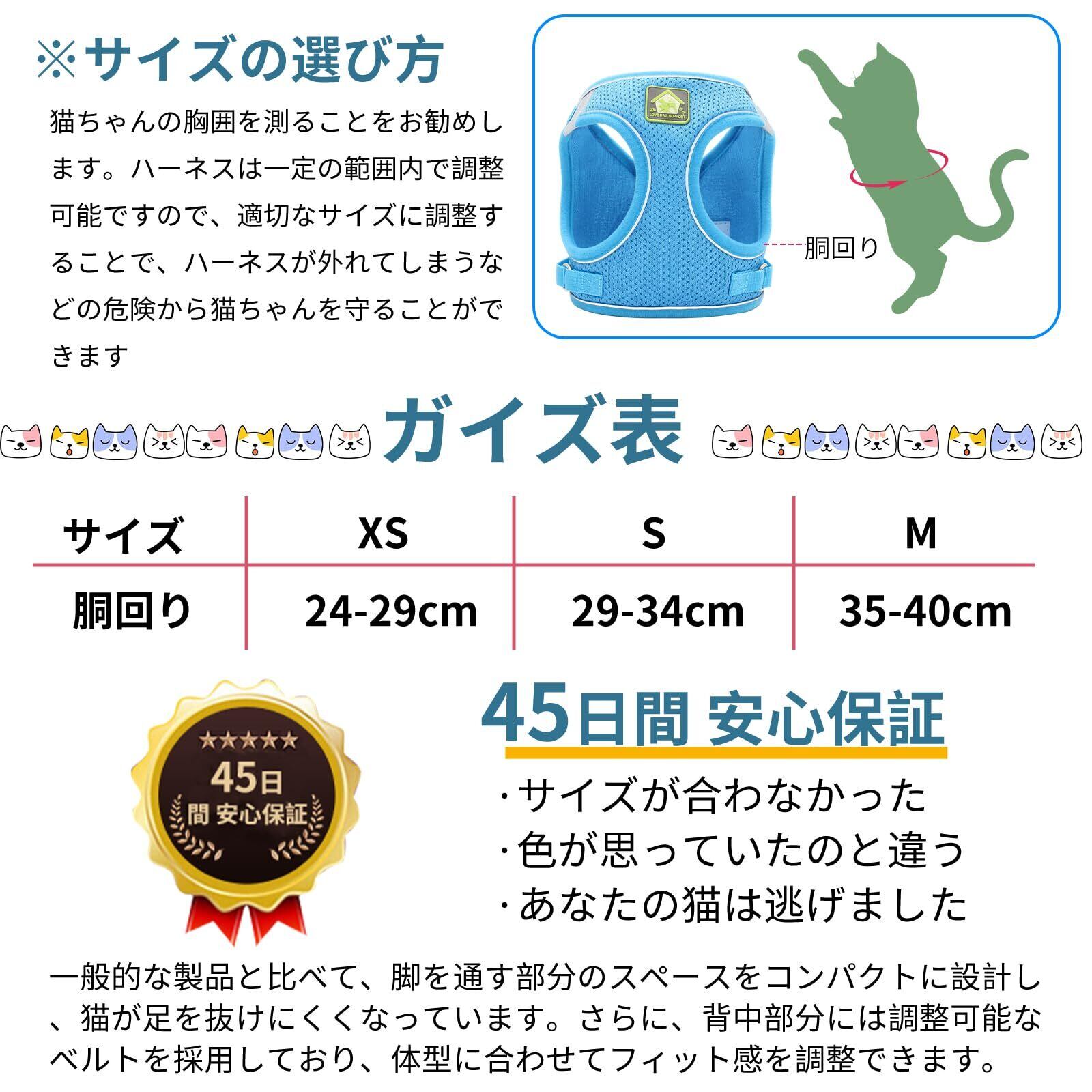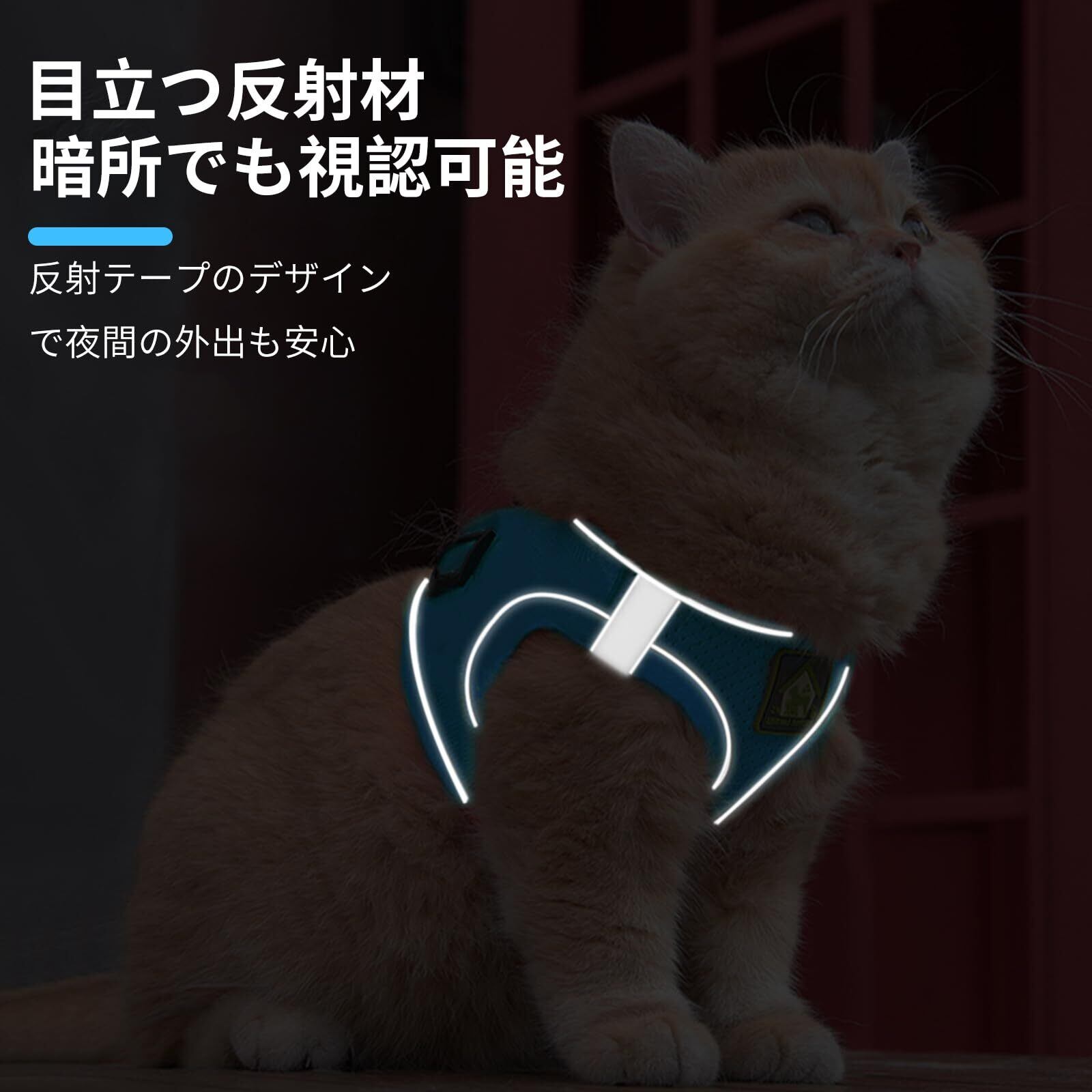 【猫 ハーネス 抜けない】XINIDEA 猫用ハーネス 逃げ防止 超軽量・通気性素材 着脱簡単 サイズ調節可 反射材使用 小型〜大型猫対応 散歩・通院・災害時避難用(ブルー, M)