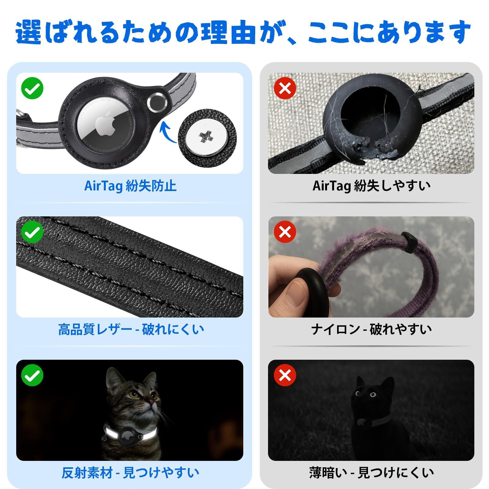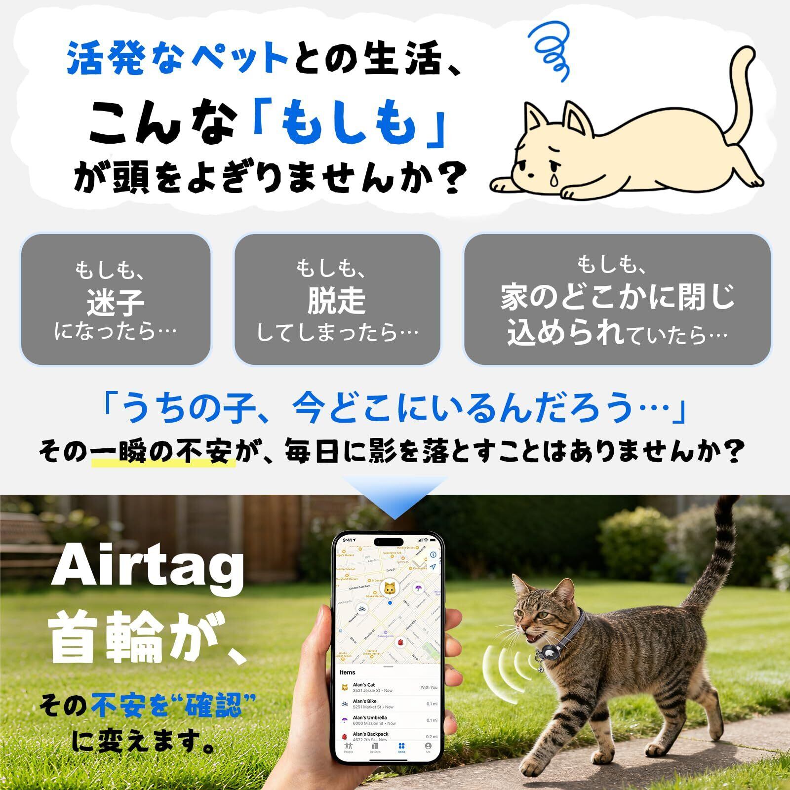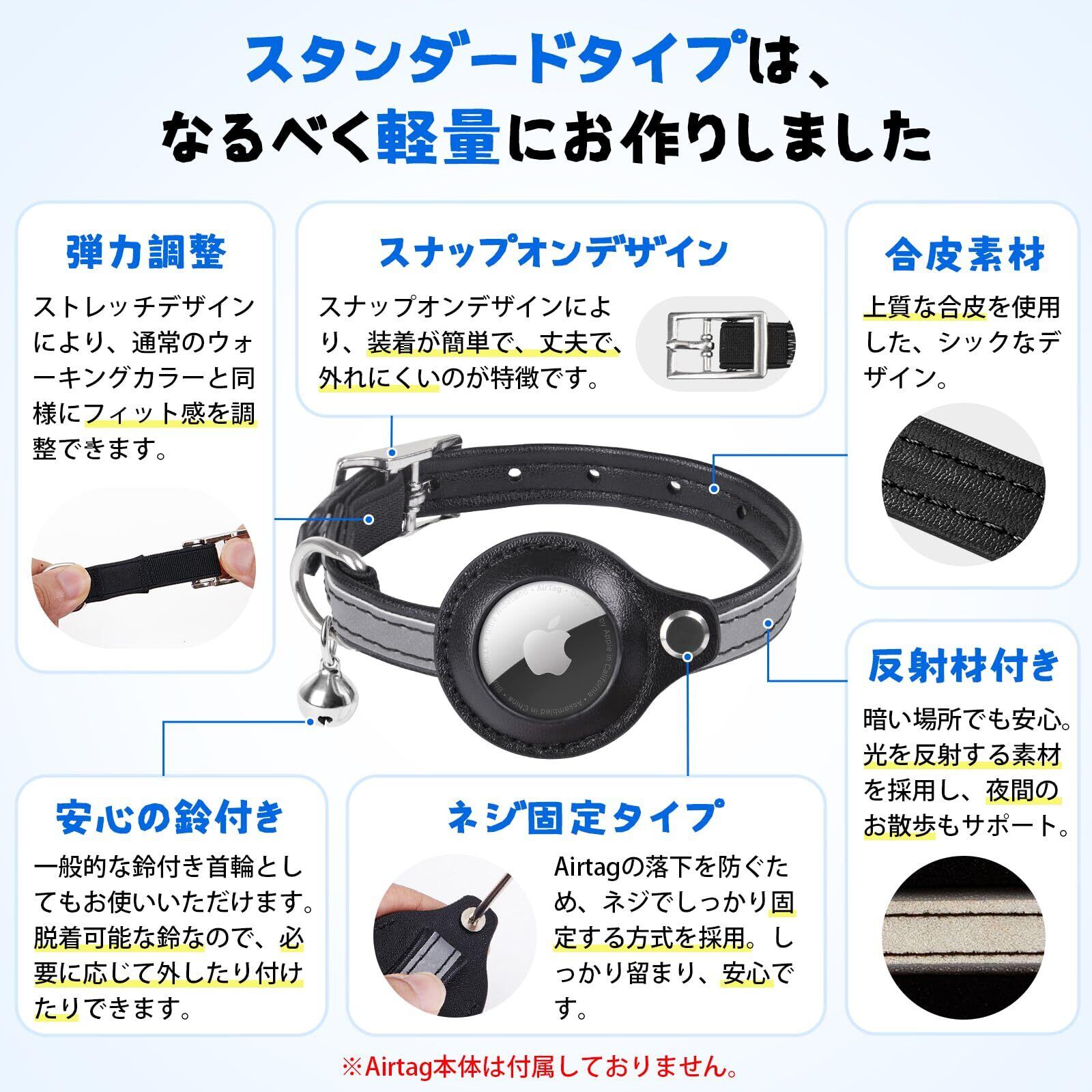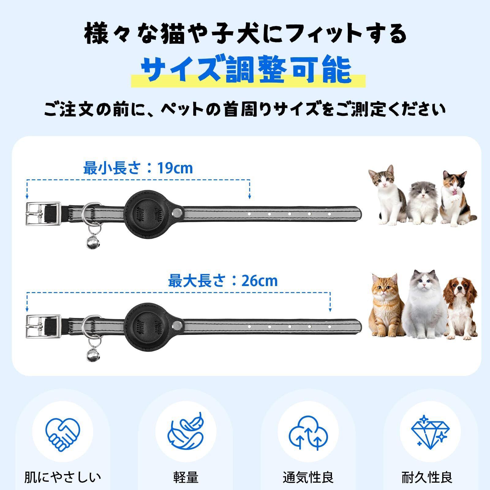 【ご注意事項】本品はAirtag接続用に設計された首輪のみの製品です。Airtag本体は購入に含まれません。長さ調節はベルトの穴位置で行えます。小型・中型・大型の猫犬に対応したサイズをご用意しています。
