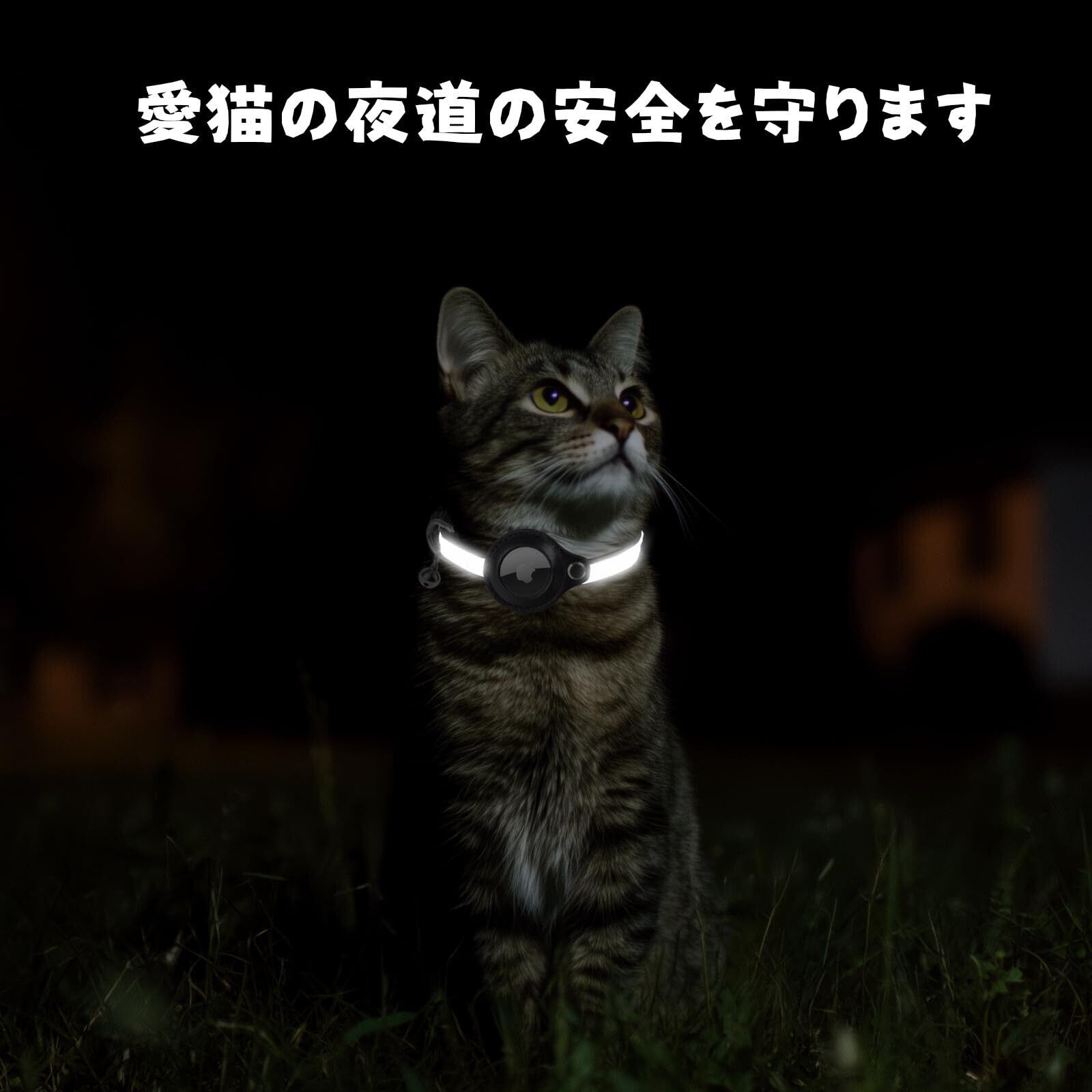 【鈴付き反射首輪】広幅の反射テープを採用したAirtag猫用首輪は、暗所でも事故を防ぎ愛猫の安全を確保します。内蔵された鈴は潜在的な獲物への警告機能として働き、安全性を高めます。鈴はお好みに応じて取り外し可能です。