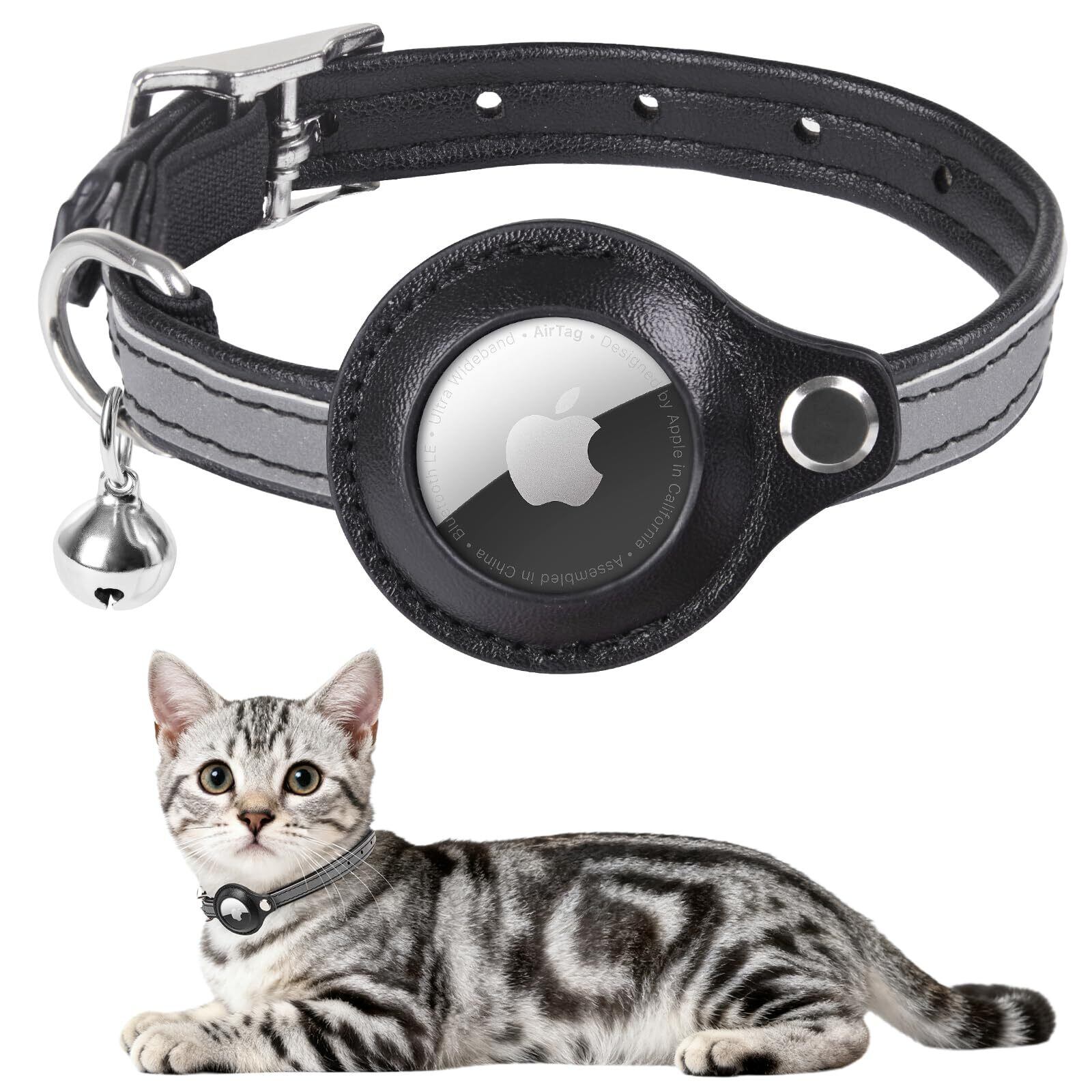 LOOBANI【獣医師推薦】 猫用首輪【迷子防止】警報GPS追迹装置 夜間リフレクター付き セーフティバックル付 鈴付き 超軽量 調節可能 ネコ 小動物 ペット用首輪 (ブラック, 19-26cm)