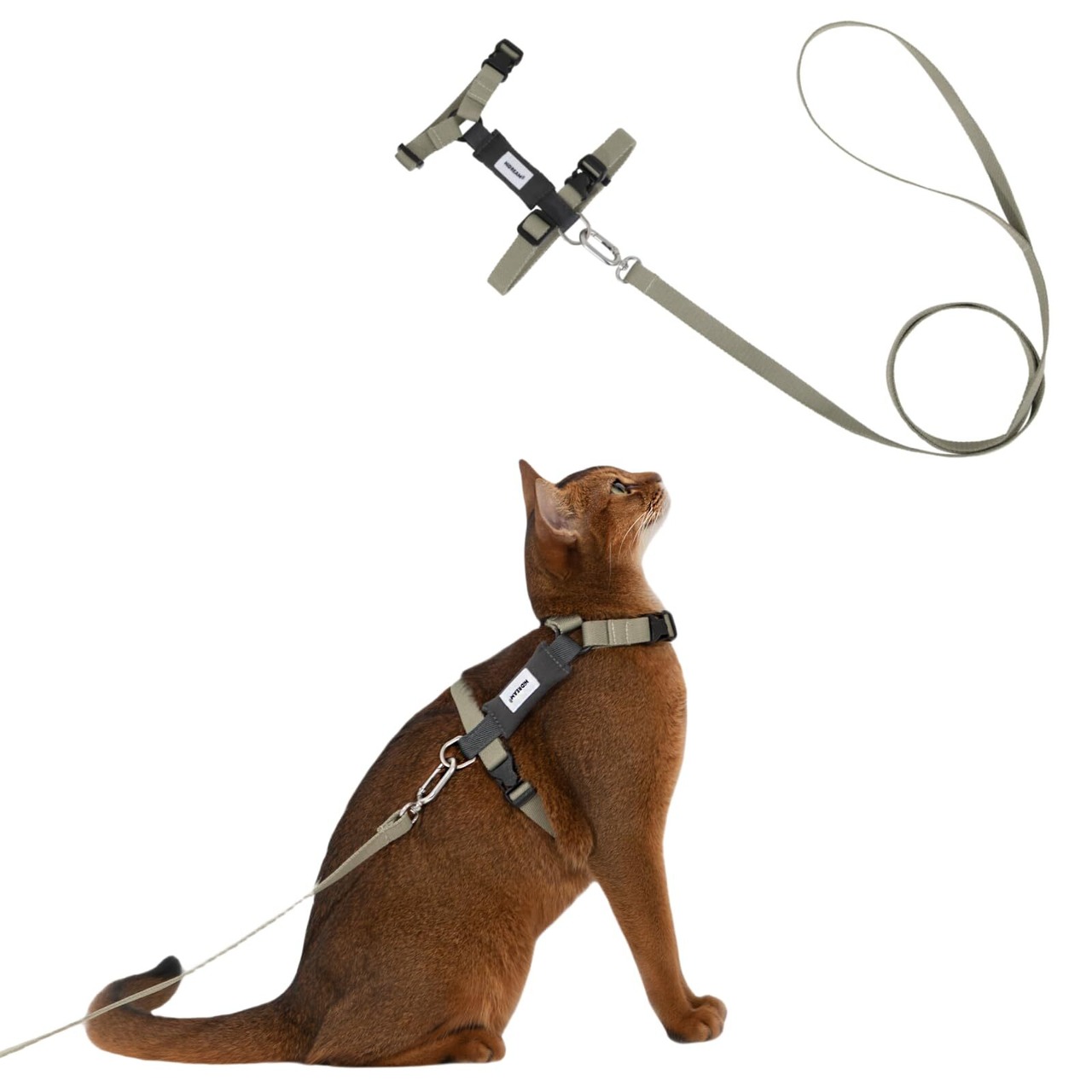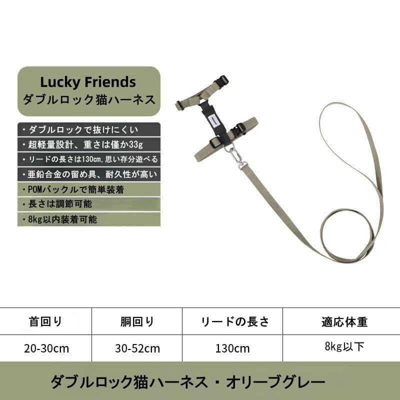 Lucky Friends 抜けない ダブルロック 猫ハーネス リード付き 簡単装着 猫ハーネス リードセット (オリーブグレー)