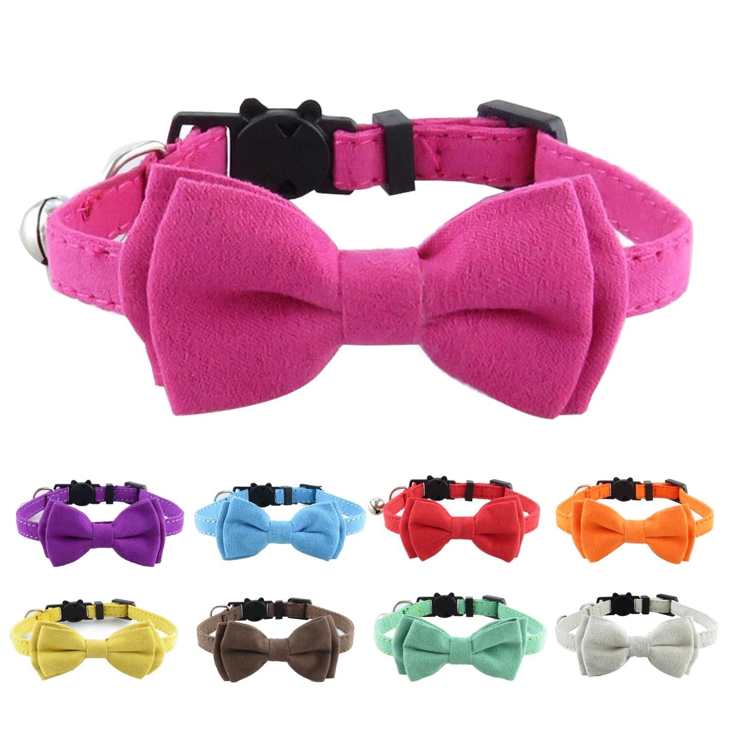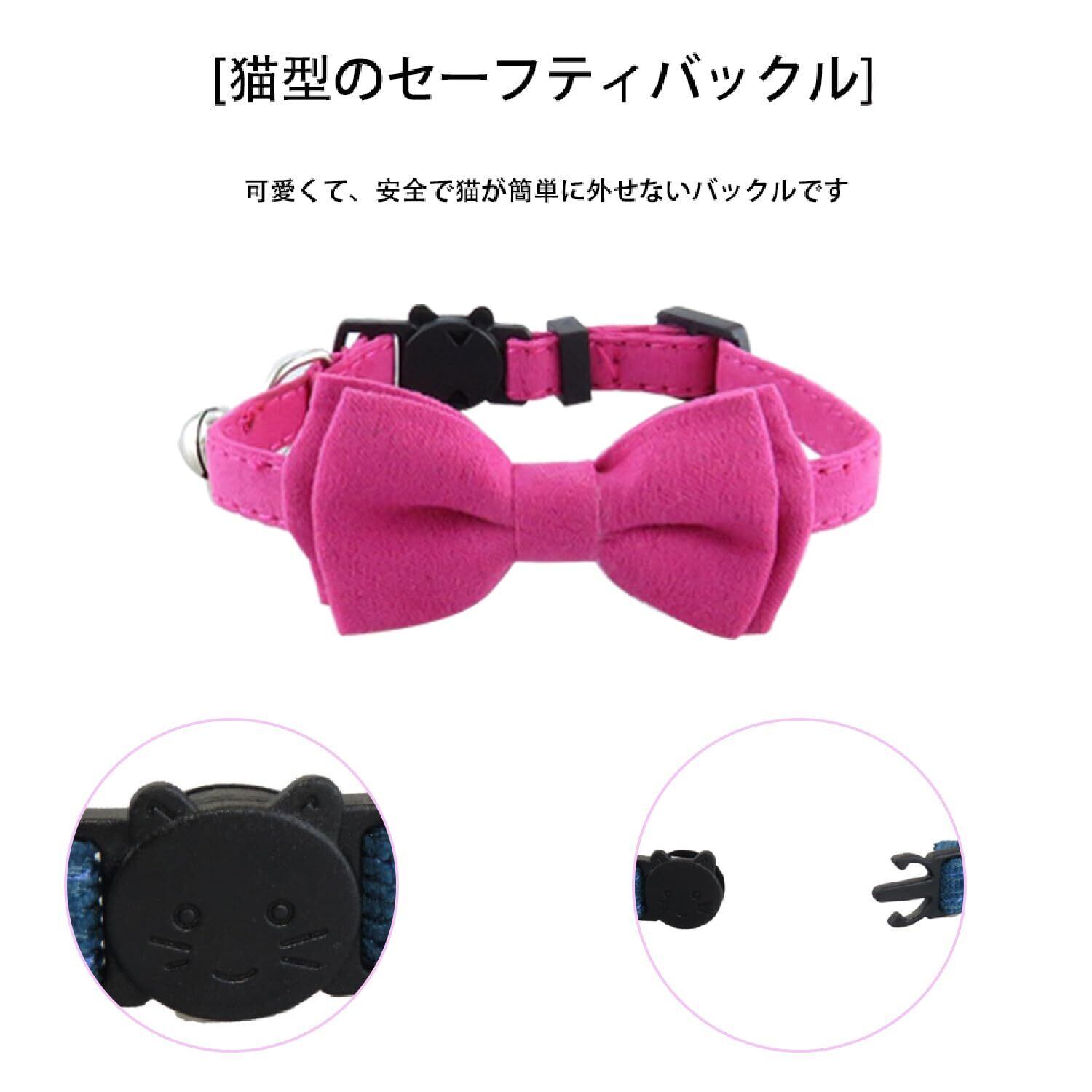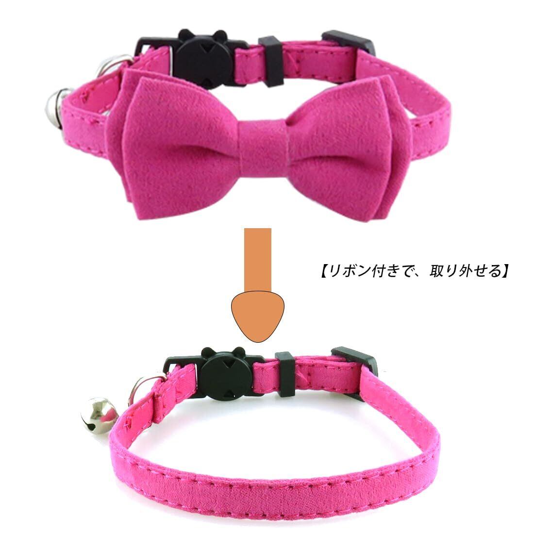 PIANETA 猫首輪 猫用 子犬用 調節可能 可愛い 蝶結び付き 鈴付き (ローズピンク)