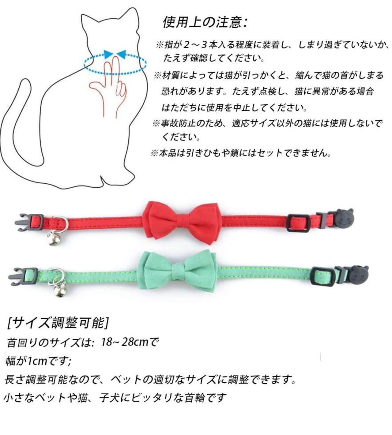 ●幅は1.0cmで、首回りサイズは18~28cm間に調整可能ですが、猫ちゃんに適切な長さが調整できます。