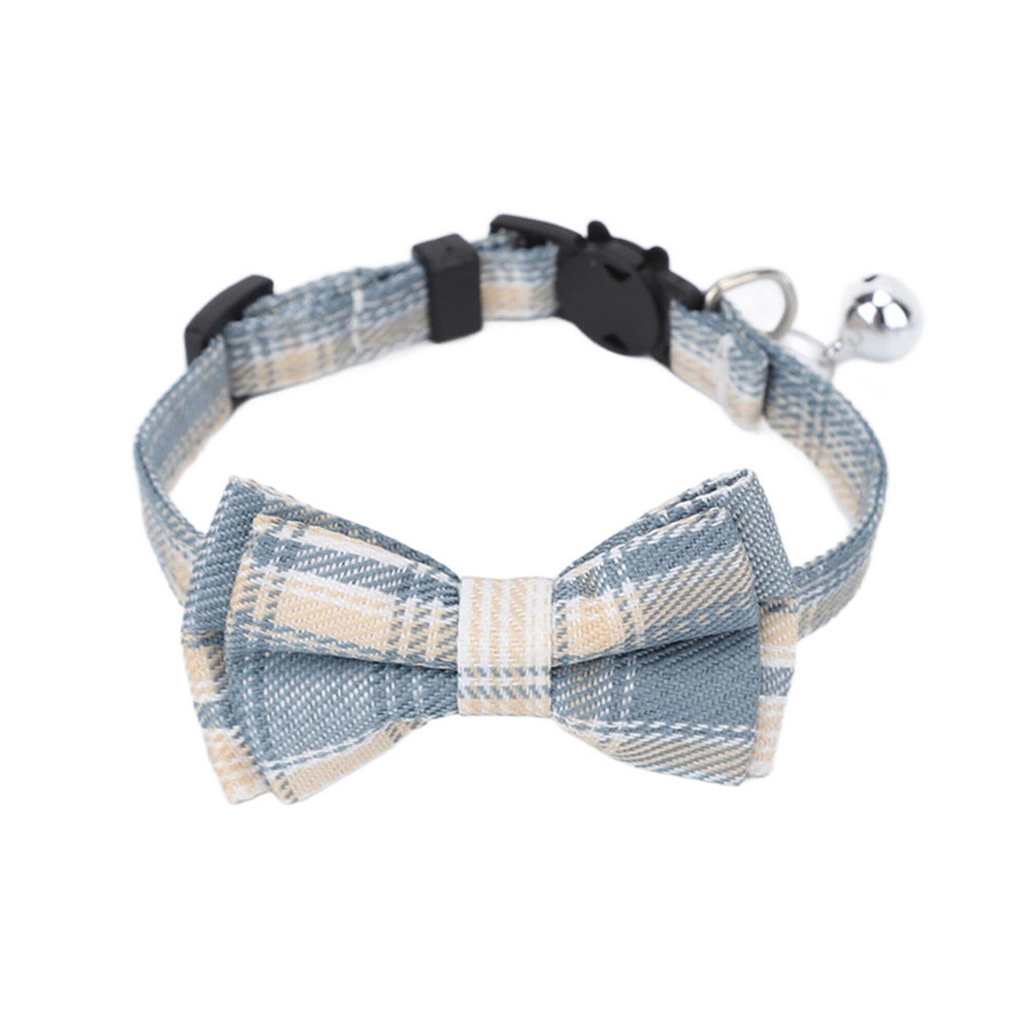 BLOOPIC 猫首輪 鈴付き 蝶結び 1本入り 犬首輪 猫くびわ 布製 調節可能 セーフティバックル付 可愛い 軽量 おしゃれ チェック柄 ペット用品 猫犬通用(白と青)