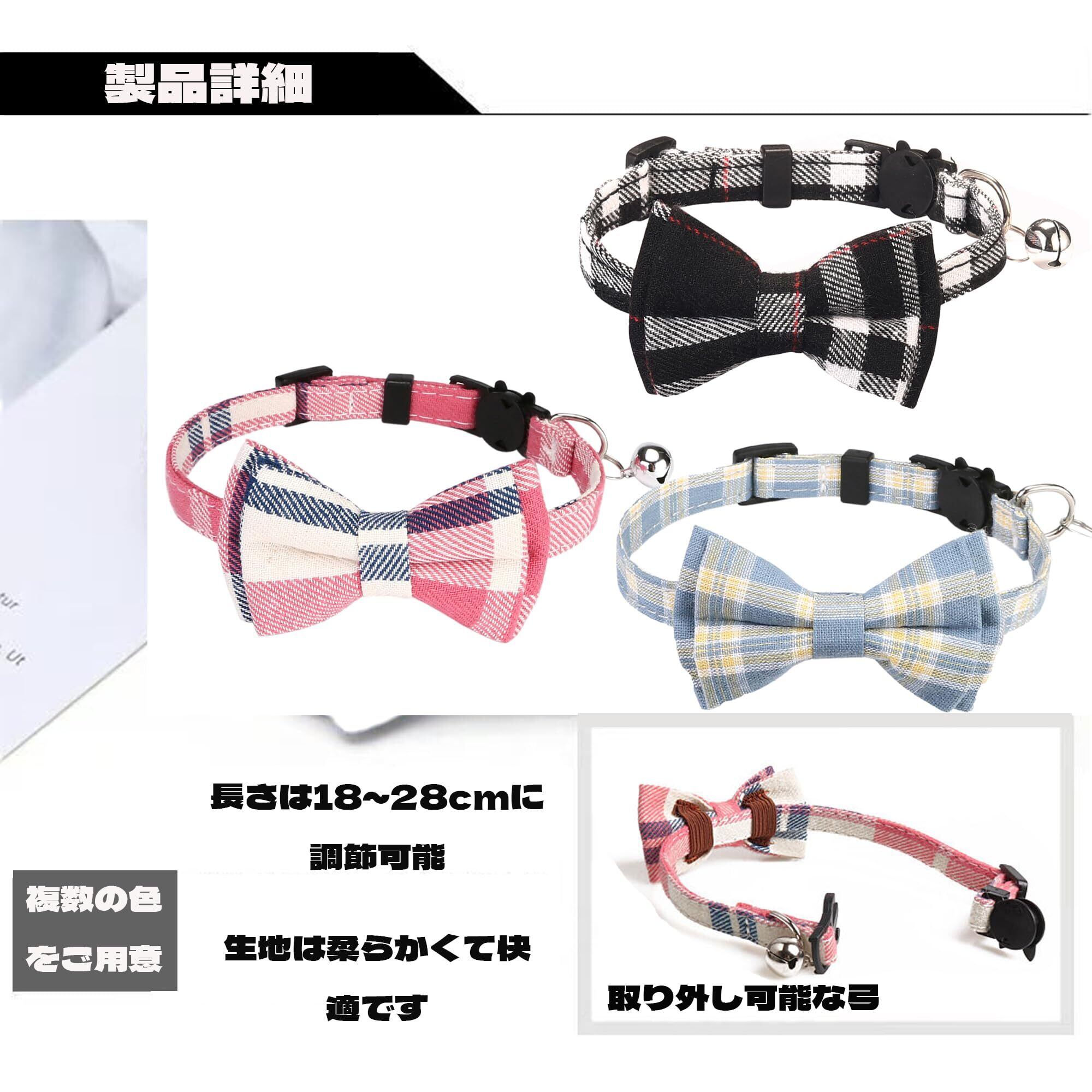 【可愛いデザイン】当社の 猫の首輪 は人気のあるチェック柄を採用しており 見た目も上品です さらに 取り外し可能なリボンが付いています また 可愛らしいベルが澄んだ音を立てるので 愛するペットの位置を常に把握することができます