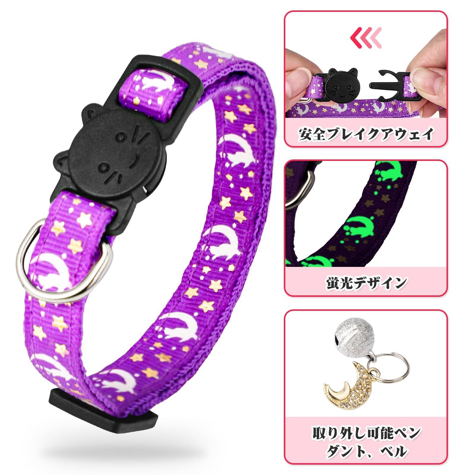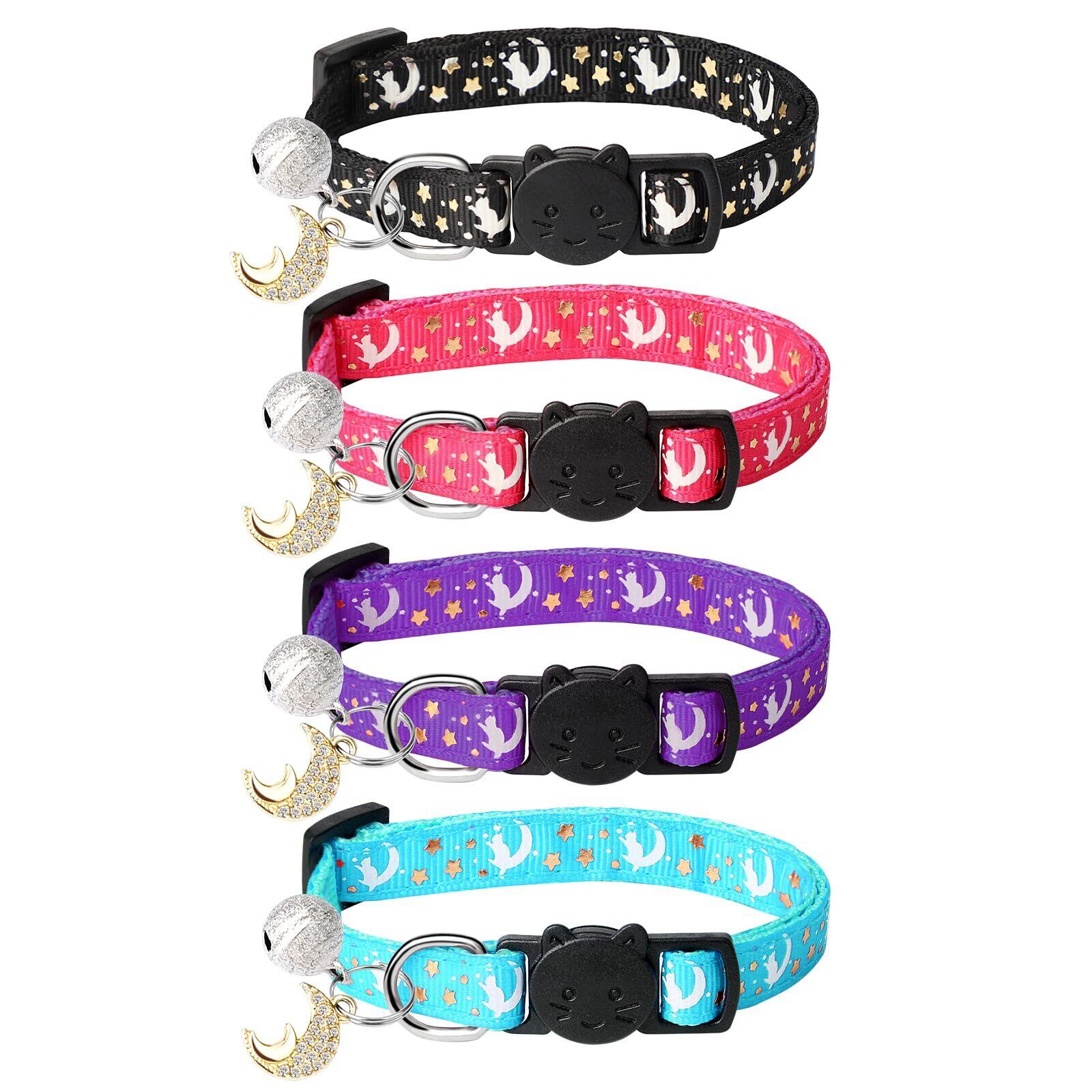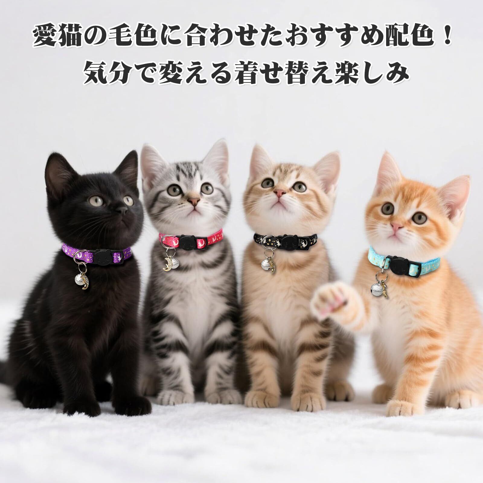 Enbluy 猫 首輪 4個セット 荧光猫用首輪 ペット首 輪 着脱式セーフティバックルと鈴付き 18-30センチメートルの調節可能サイズ 可愛い バックル 可愛い首飾り ネコ 小動物 小型犬適用