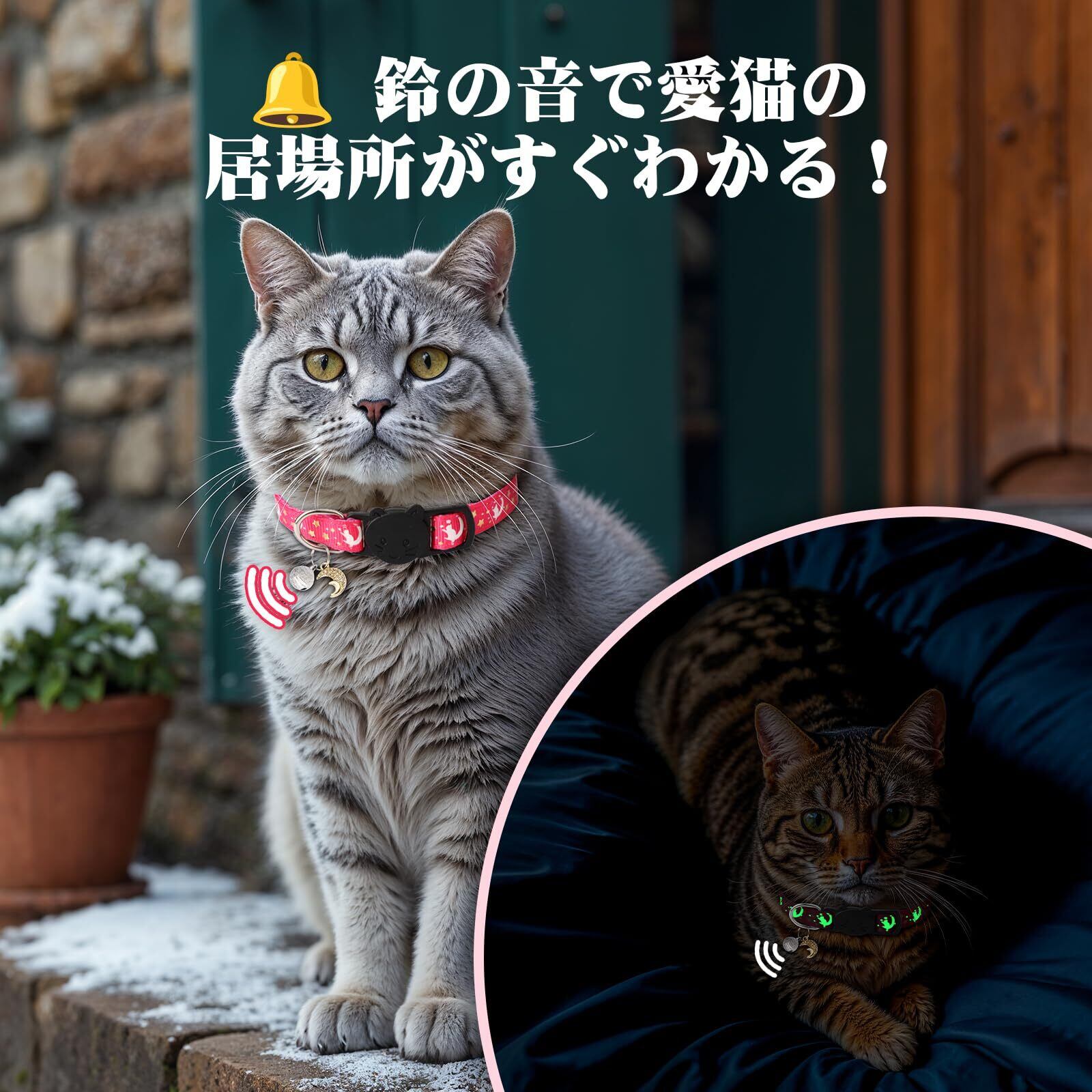 【鈴で猫の位置を素早く特定】可愛い鈴のチャーム付きで、遊び心と実用性を兼ね備えています。内蔵された澄んだ鈴の音で猫の動きを追跡でき、家具の陰や隅に隠れるトラブルを軽減。鈴は取り外し可能なデザインで、夜間の消音モードなど様々なシーンに対応。