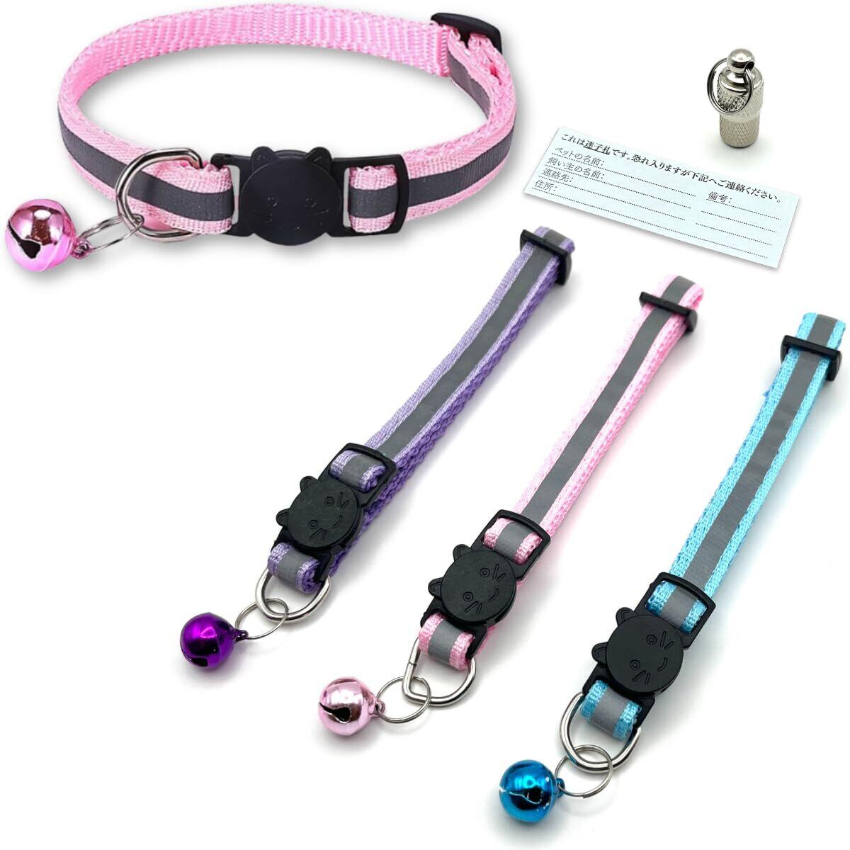 HINH 猫用首輪 マルチカラー 迷子札1個付き 夜間リフレクター付き セーフティバックル付 鈴付き 反射性 超軽量 調節可能 ネコ 小動物 ペット用首輪 (パステルカラー3色セット)