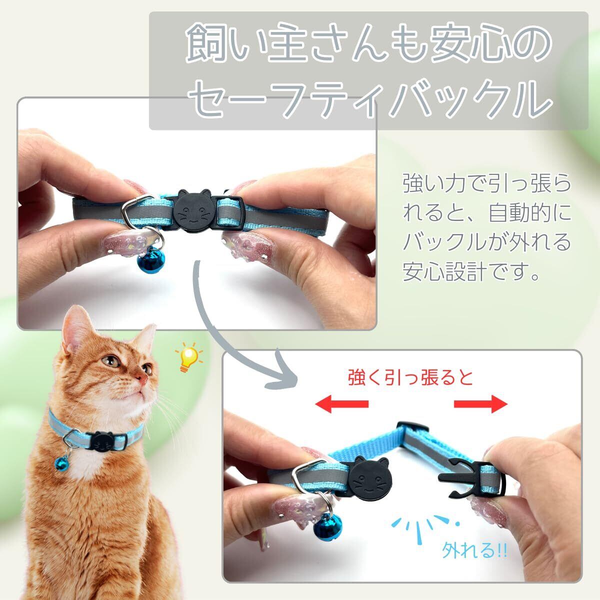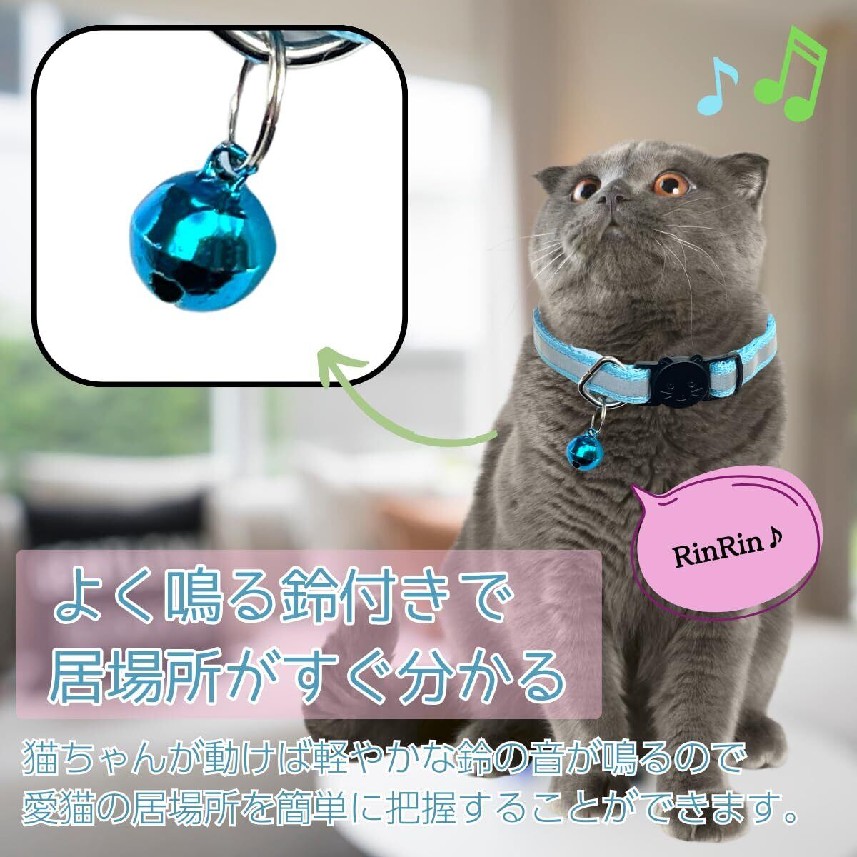 【鈴付きで安心】各首輪には小さくて可愛い鈴が付いており、猫ちゃんが動くと鈴の音がなり、居場所を簡単に把握することができます。鈴の音が軽やかで、家の中や庭で猫を探す際にも便利です。 また、鈴も首輪の色に合わせたマルチカラーになっていて、とっても可愛いです。
