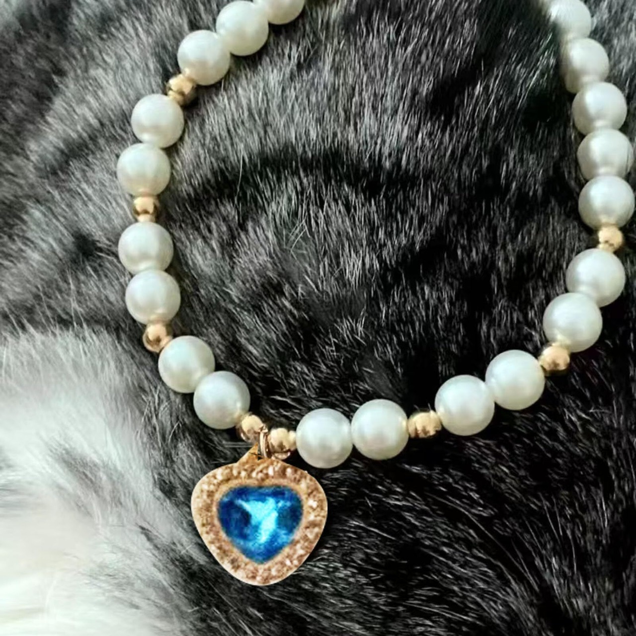 【猫の首輪】猫の首輪のペンダントはハート型のデザインを採用し、人工真珠やラインストーンは高級感があり、優雅な印象を与えます、軽くておしゃれな上、ゴージャス感を演出してくれます。
