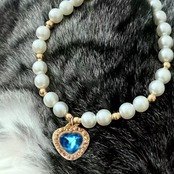 【高品質の素材】猫首輪は高品質の人工真珠と合金素材を用いて作られ、丈夫で耐久性があり、高級感があり、ウォータドリルがキラキラしていて、光沢感があります。