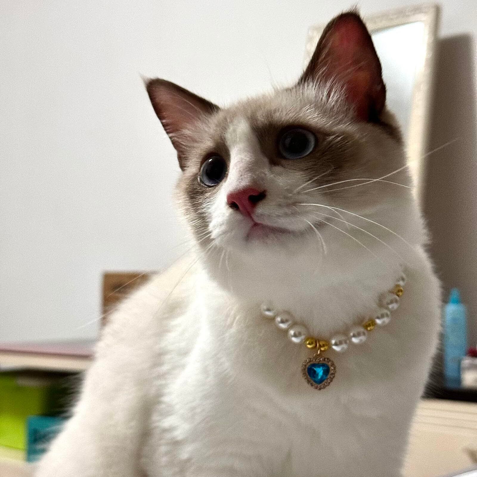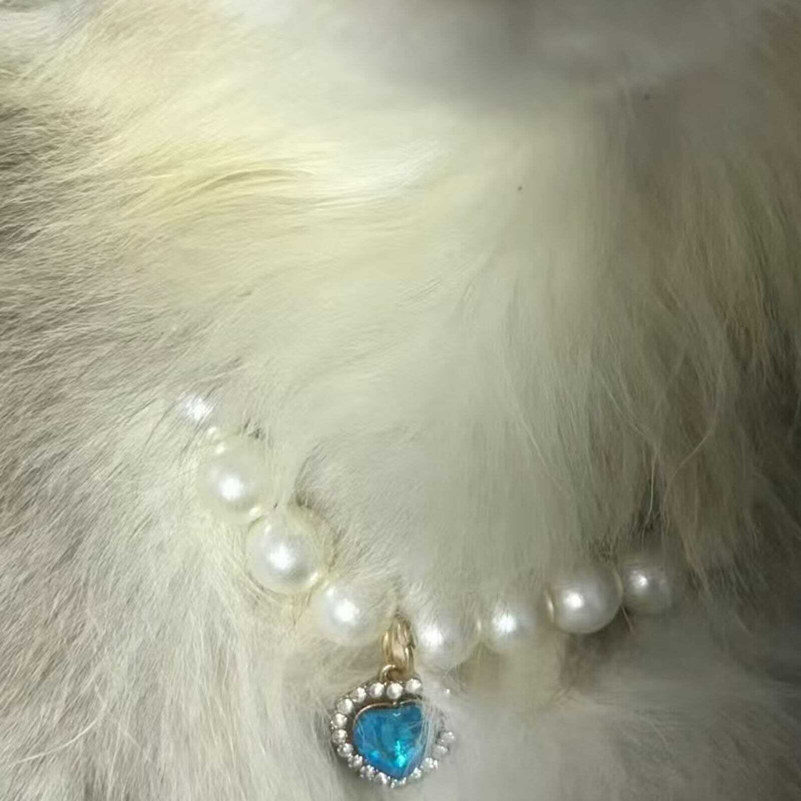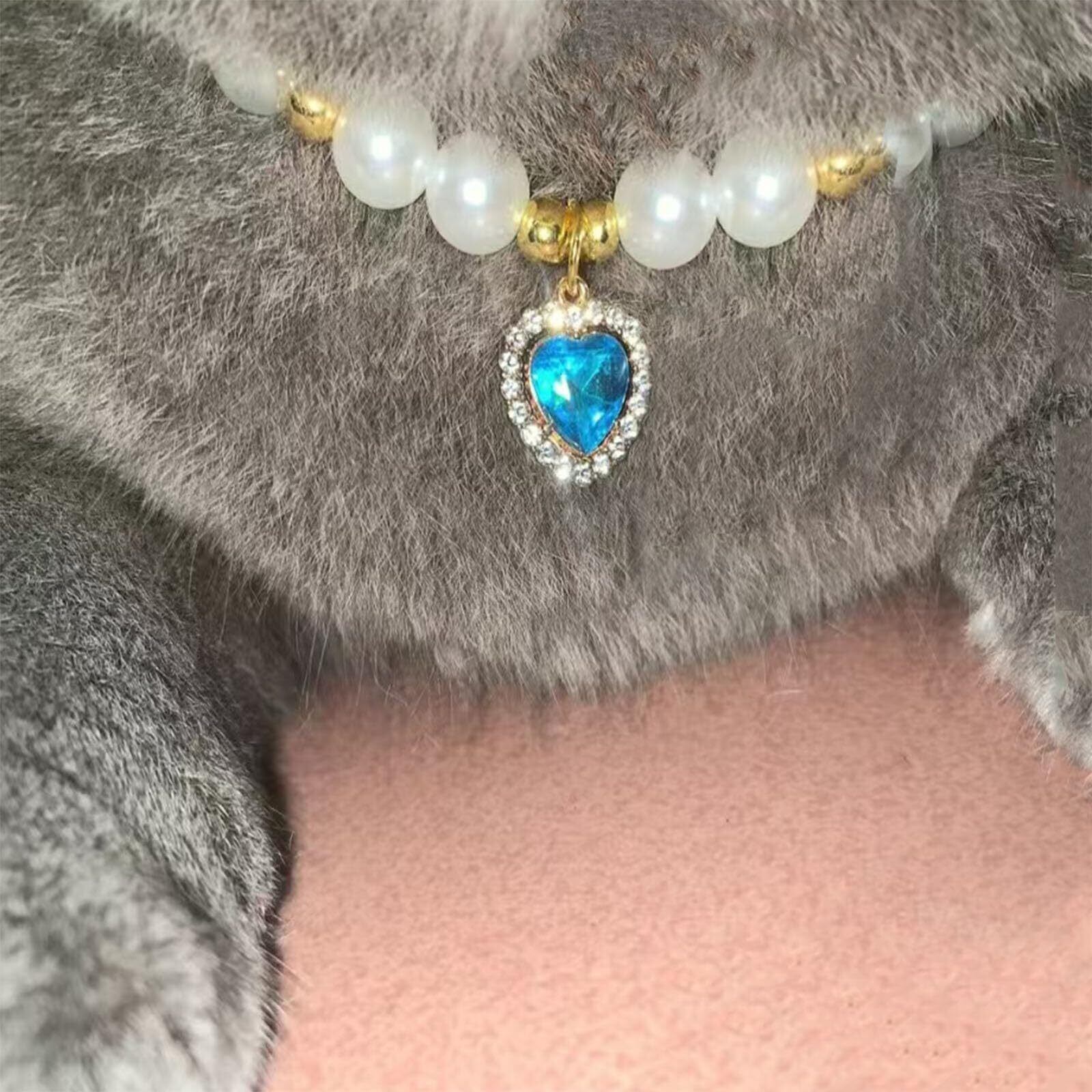猫首輪 猫の首輪 ペットパールカラー ペット 犬の真珠のネックレスの首輪 可愛い パール ハートペンダント 軽量 調節可能 ペット用品 誕生日 メモリアル用品 ファッション小物 着飾り XS S M L XL (XS)