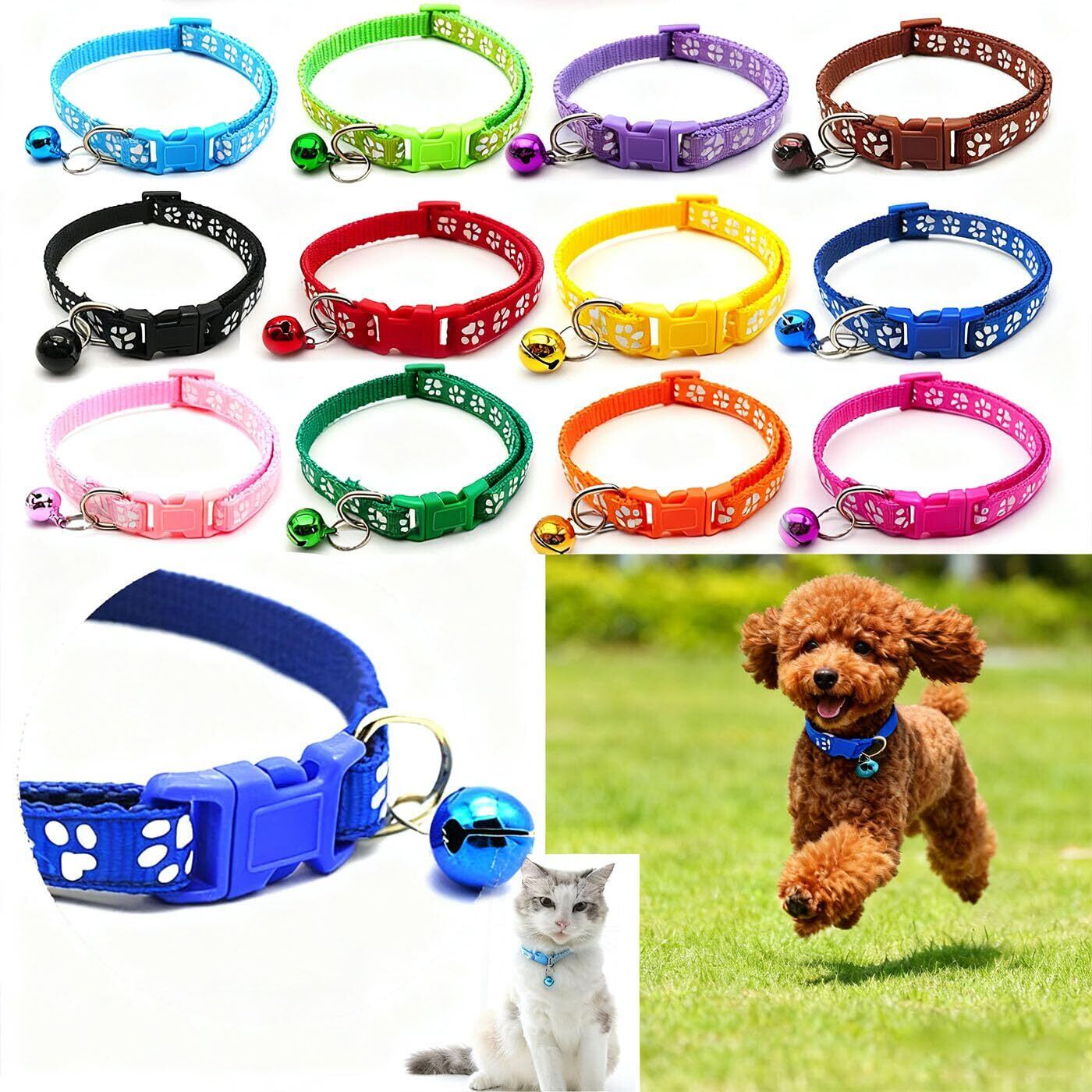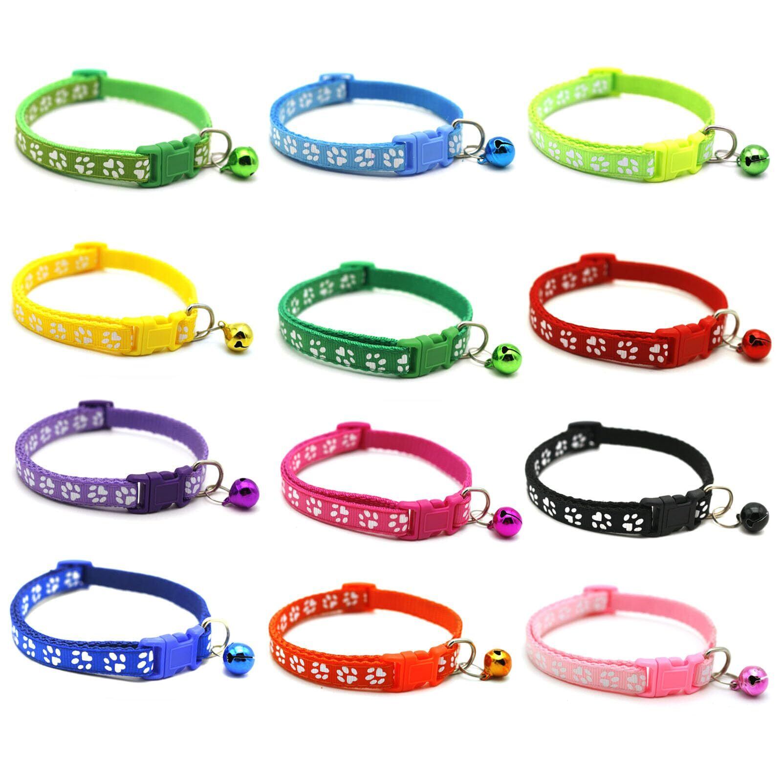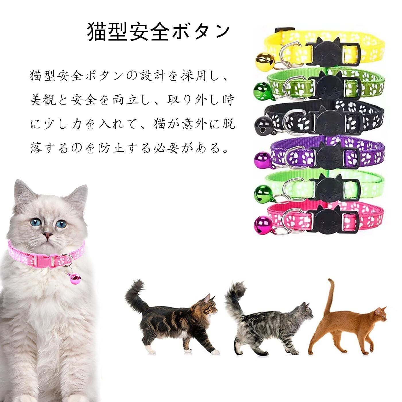 BRIIKPP 猫首輪 小動物 犬 調節可能 夜間リフレクター付き 鈴付 猫用 超軽量 ペット用首輪 可愛い (12色のスーツ)