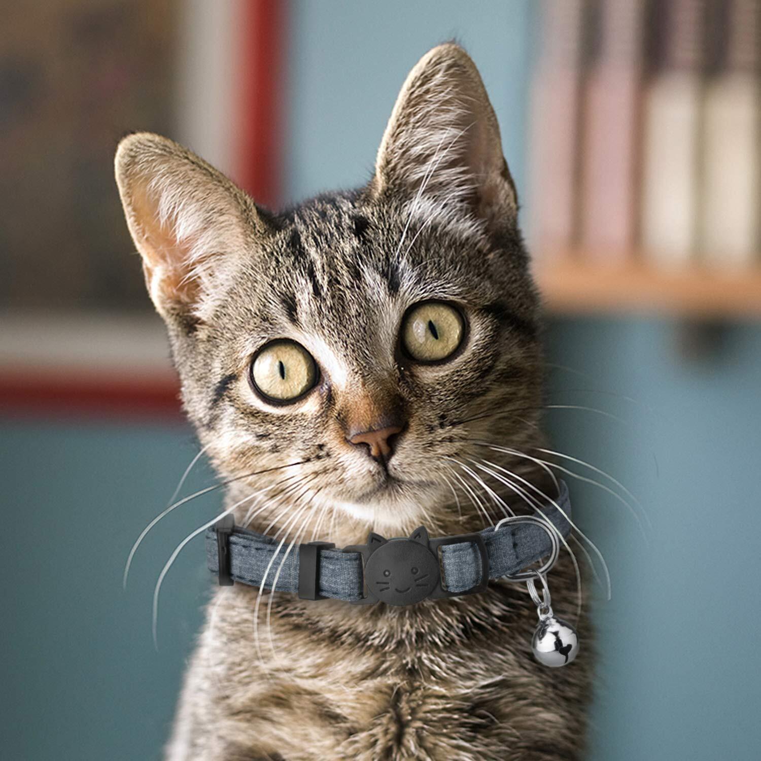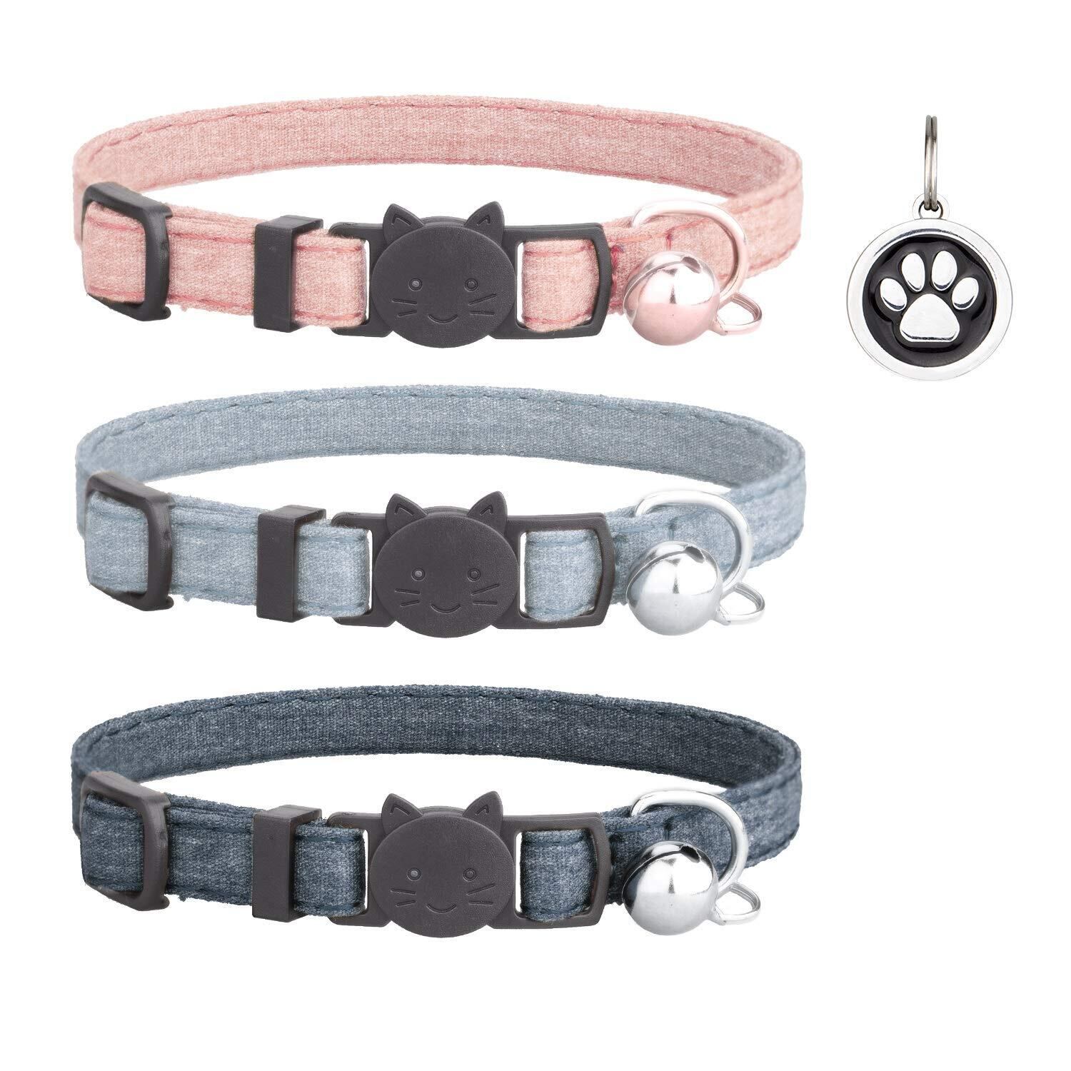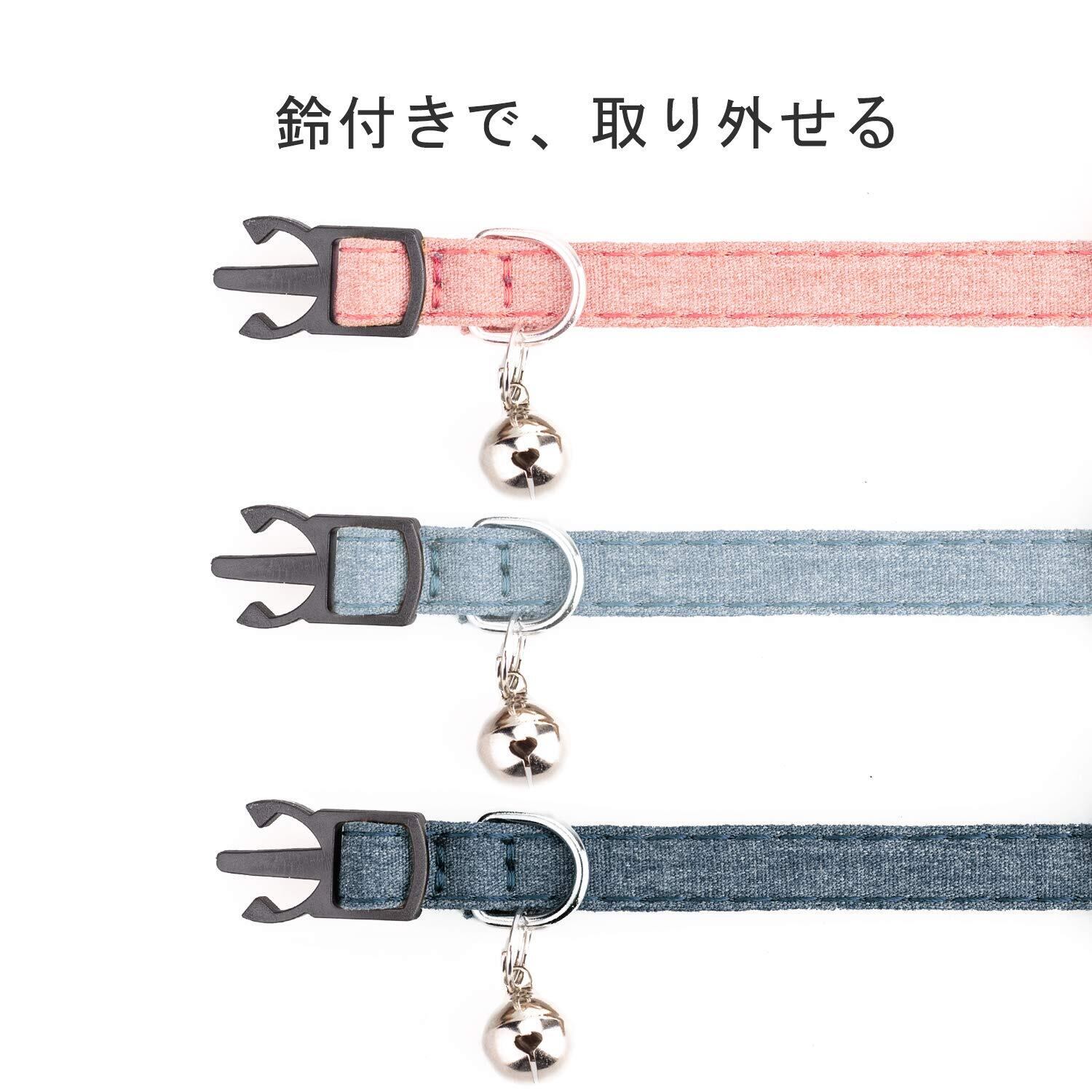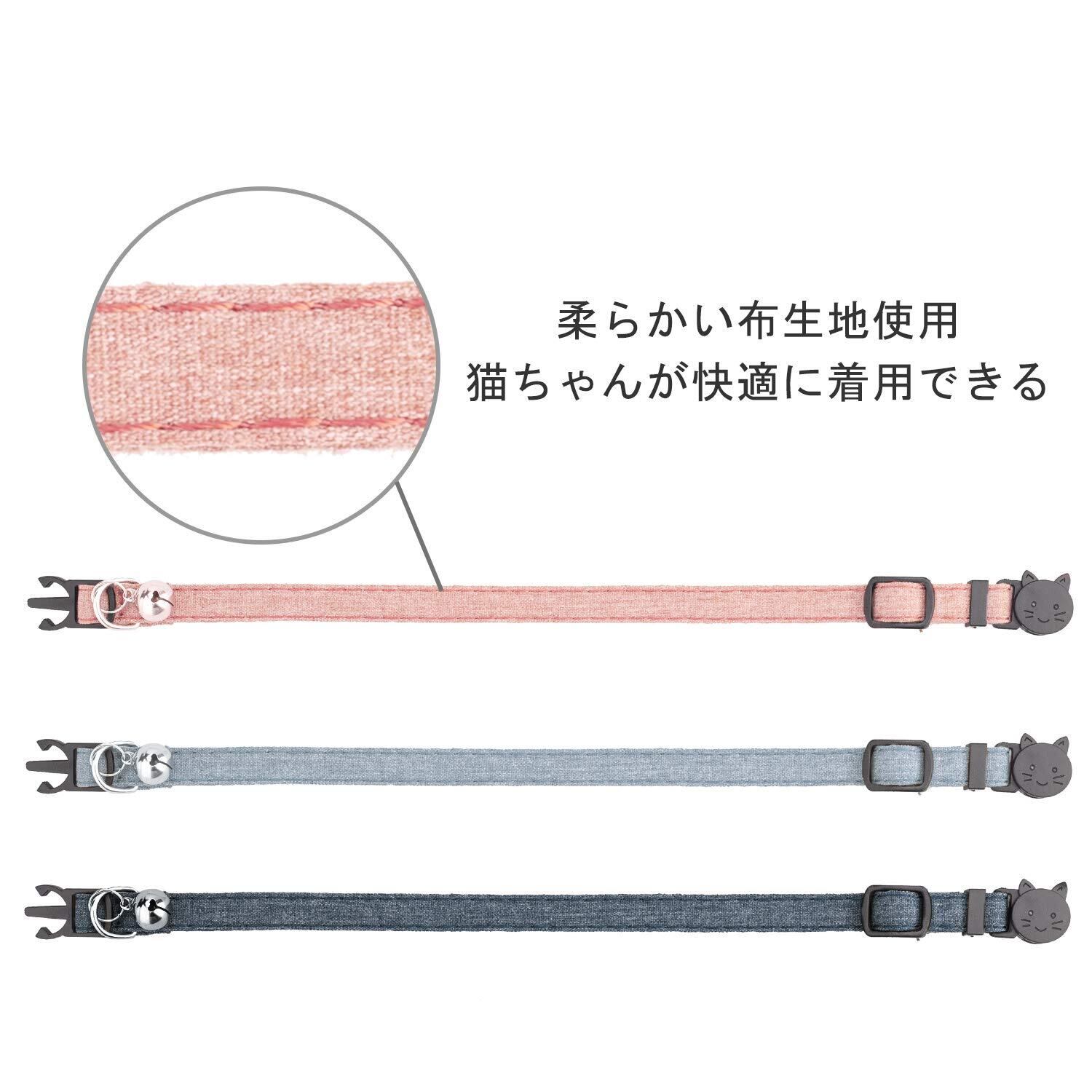 猫 首輪 ネコ 猫用 首輪 子犬 迷子札付き 鈴付き セーフティバックル 可愛い 調整可能 軽量 ペット首輪 布 シンプル 3個セット ピンク+ライトブルー+ダークグレー