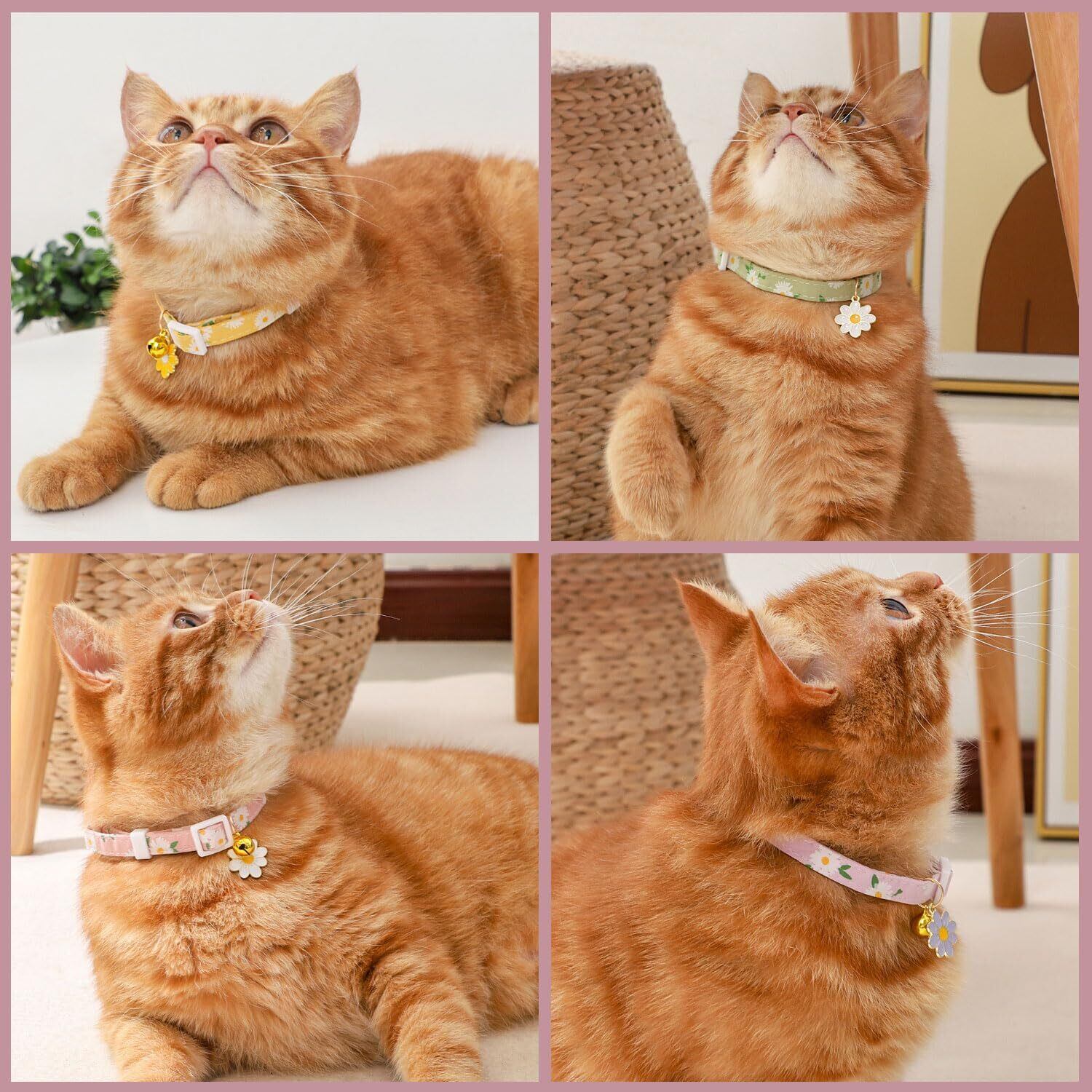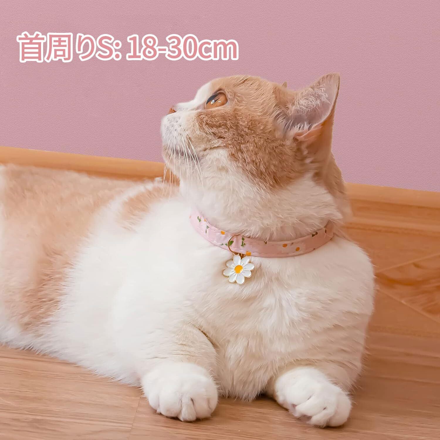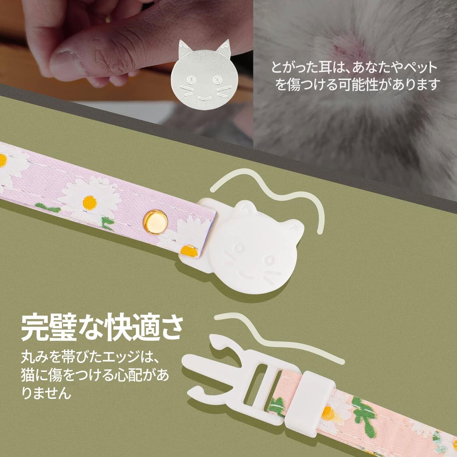 猫 首輪 2個セット 猫 首輪 セーフティバックル 鈴付き デイジー柄 安全留め具 かわいいネックレス 猫の首輪 小動物 小型犬用 超軽量 S 安全 調節可能 ポリエステル綿