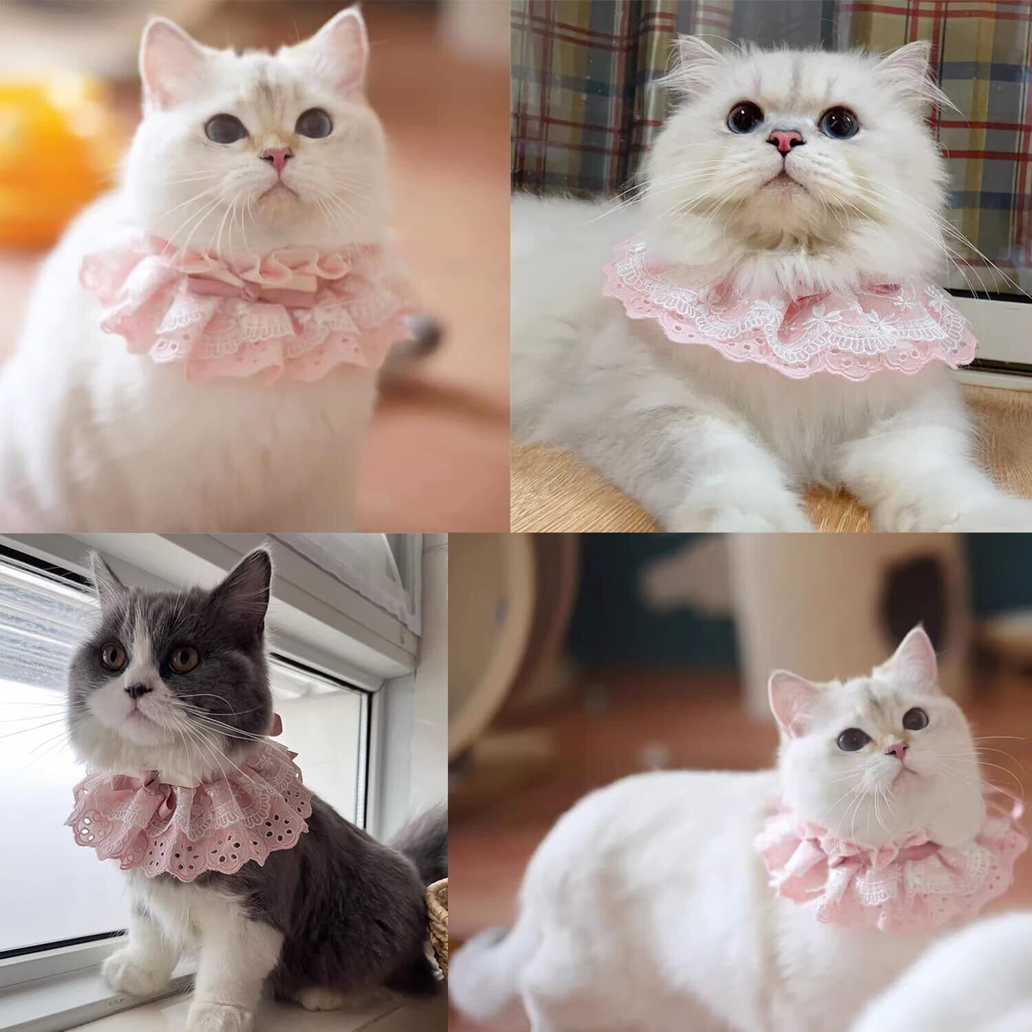 WEILFYONK 猫犬首輪猫唾液タオル首輪猫服犬服手作りレースペットアクセサリー写真背景ペット用品可愛い和風結婚リボン貴族風刺繍レース猫用首輪ネックレスリボン犬首輪 (S, ピンク)