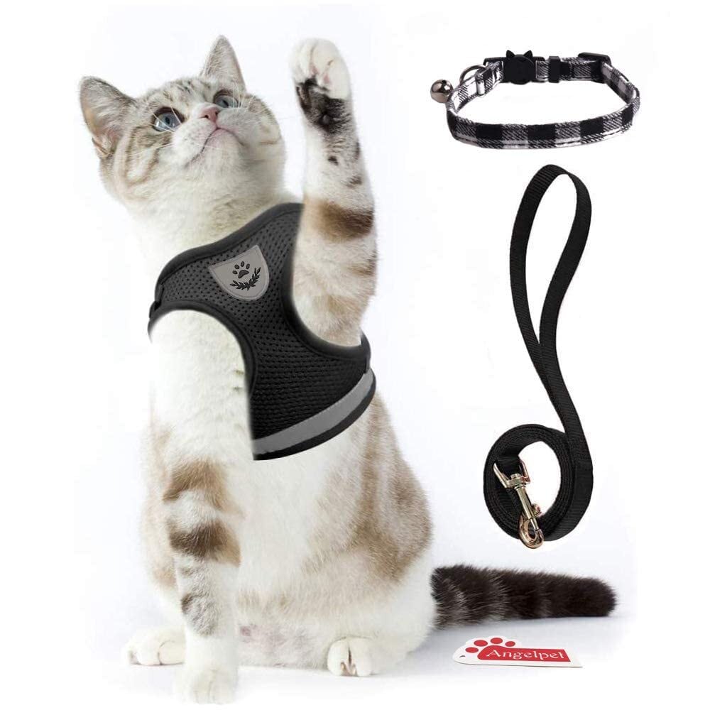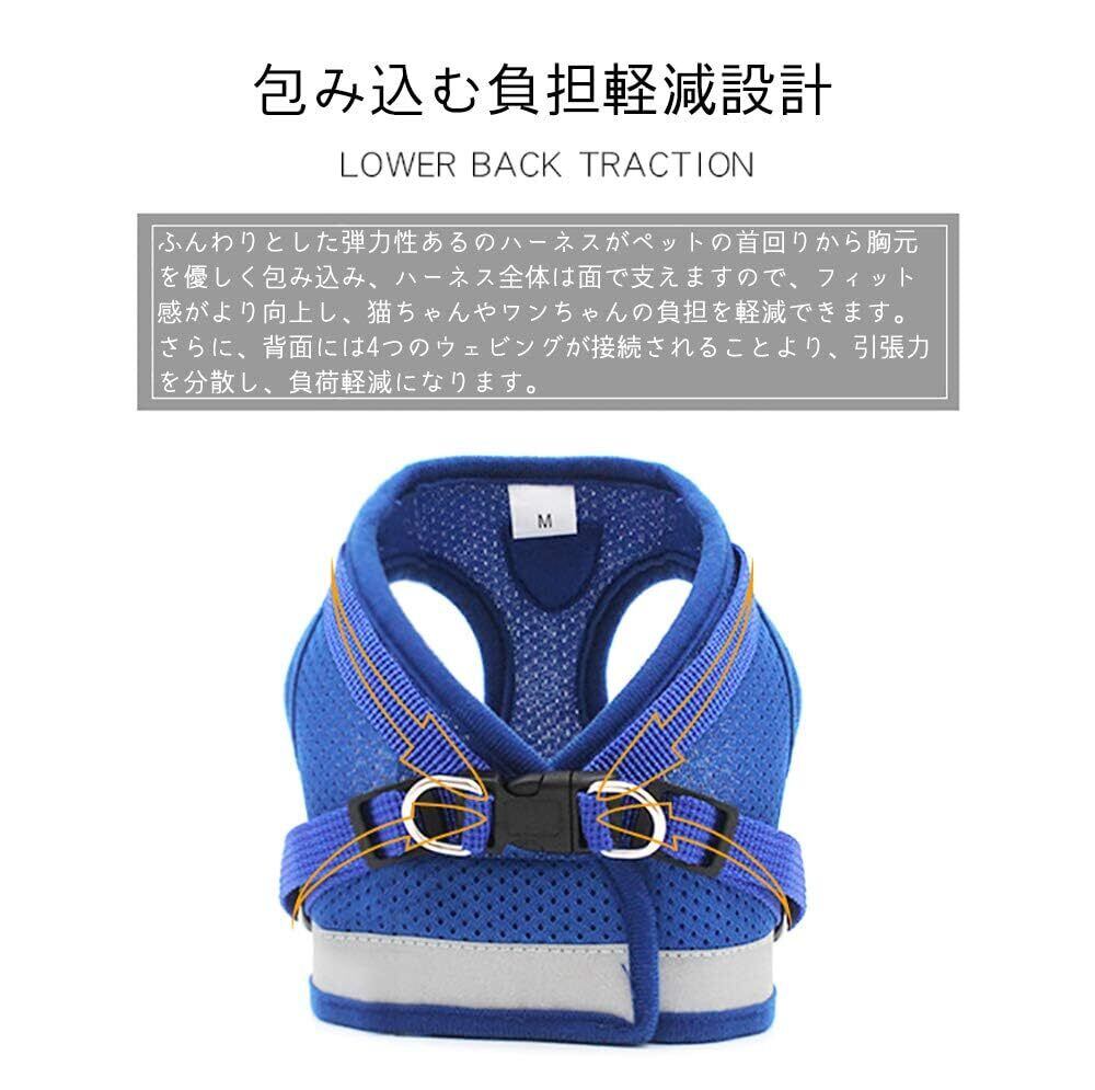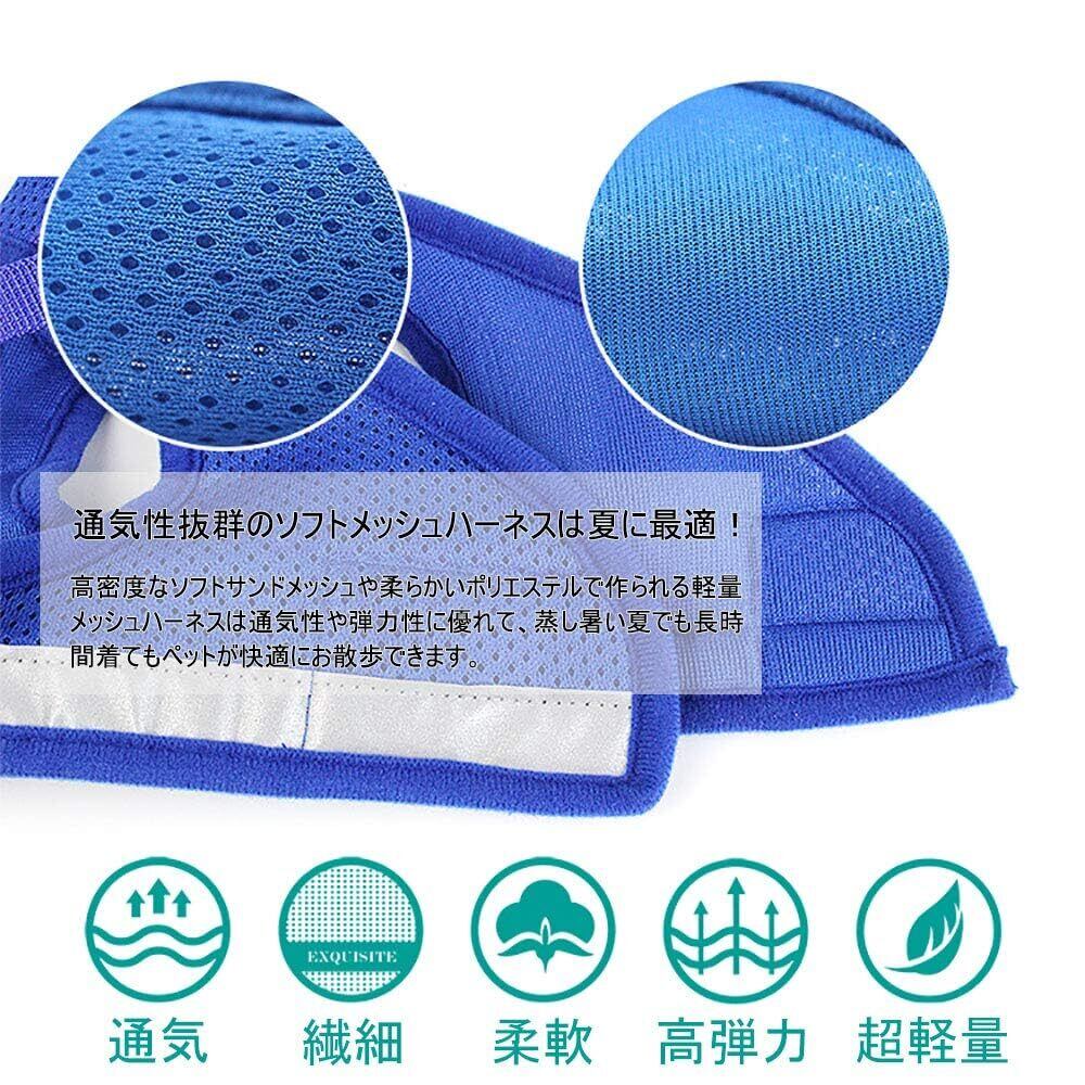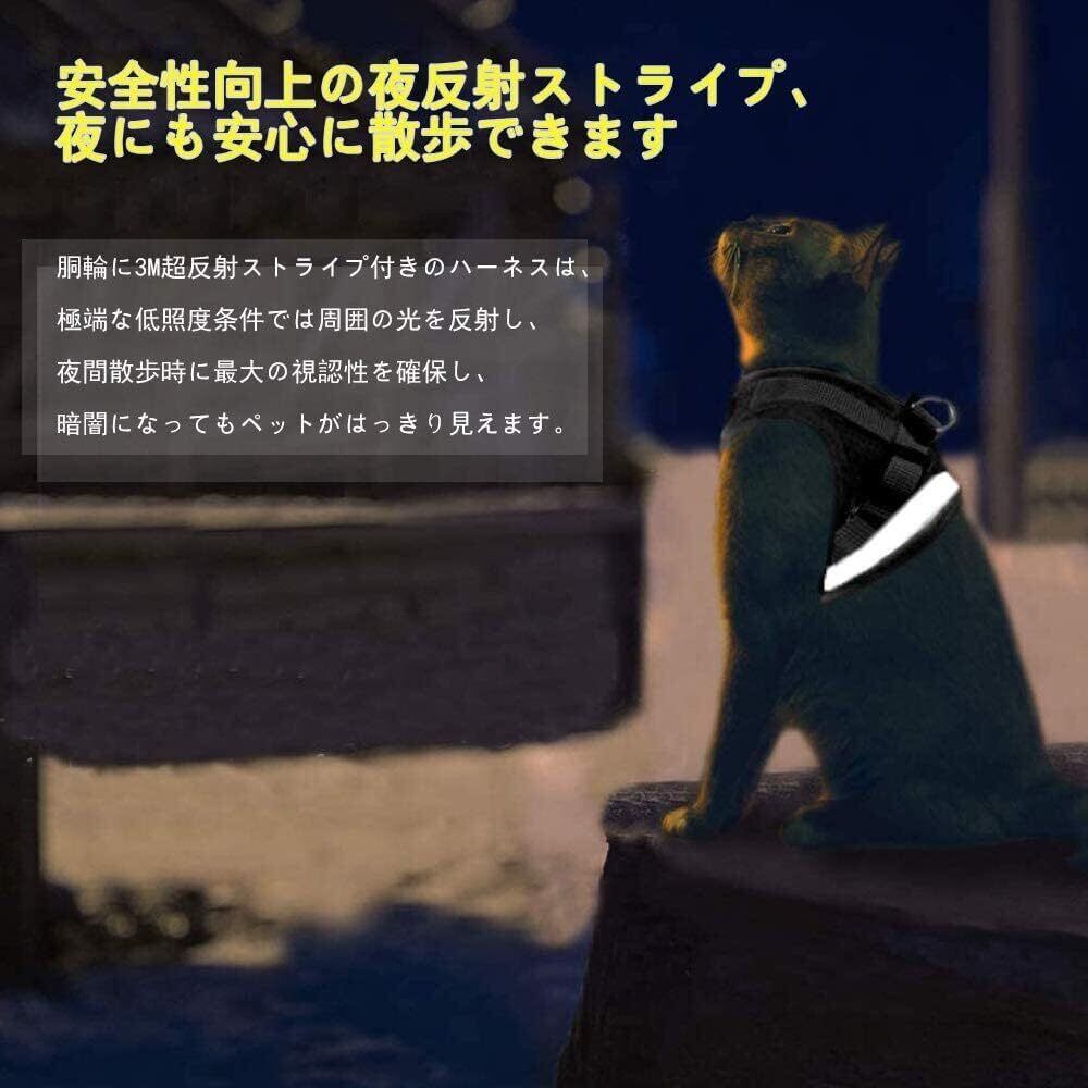 猫 猫用 ハーネス 胴輪 首輪 犬猫兼用 小型犬 ウサギ ソフト胸あて リード付き 抜けない 夜反射 メッシュ 通気性 超軽量 サイズ調節可能 マジックテープ式装着 反射ストライプ付き お散歩用 ポリエステル素材(猫用ハーネス+猫首輪)