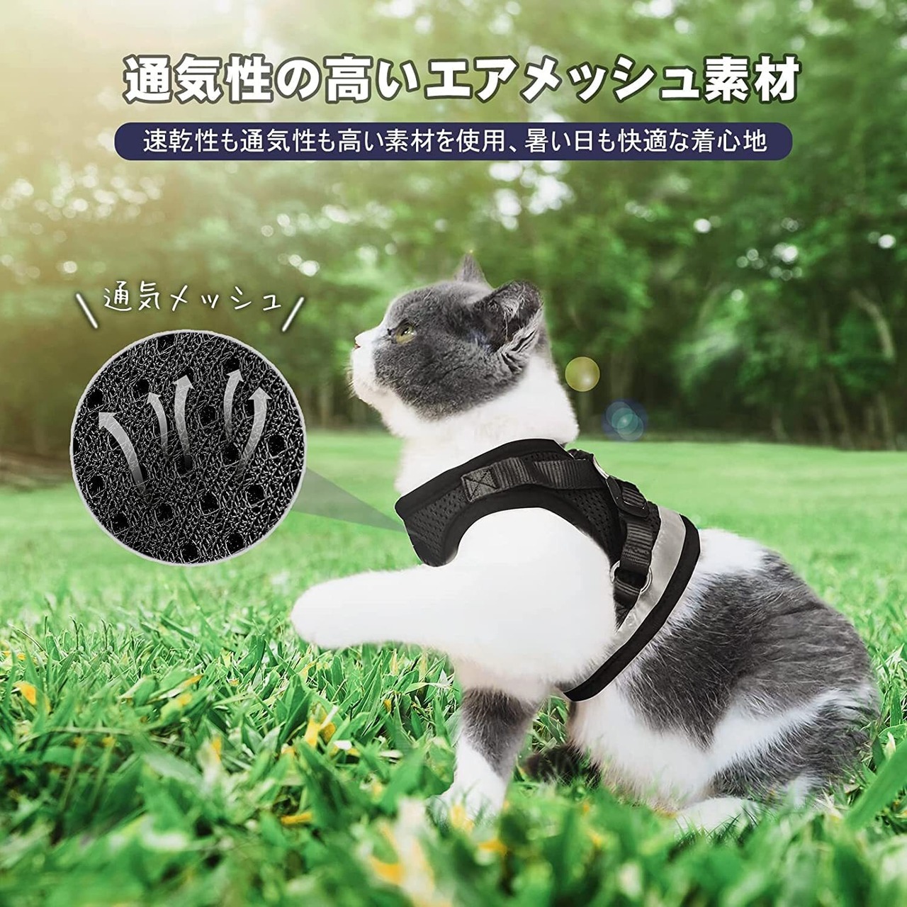 【猫ちゃんを一番に考えたお散歩ハーネス】 "通気性" や "速乾性" の高い素材のしっかり固定できる人気のベストタイプの猫用ハーネスです。"猫ちゃん専門のメーカー" が猫ちゃんの安心安全を考え抜いて、快適なハーネスを仕上げました。専用のリードもついているので、お散歩や災害時の備えに最適です。