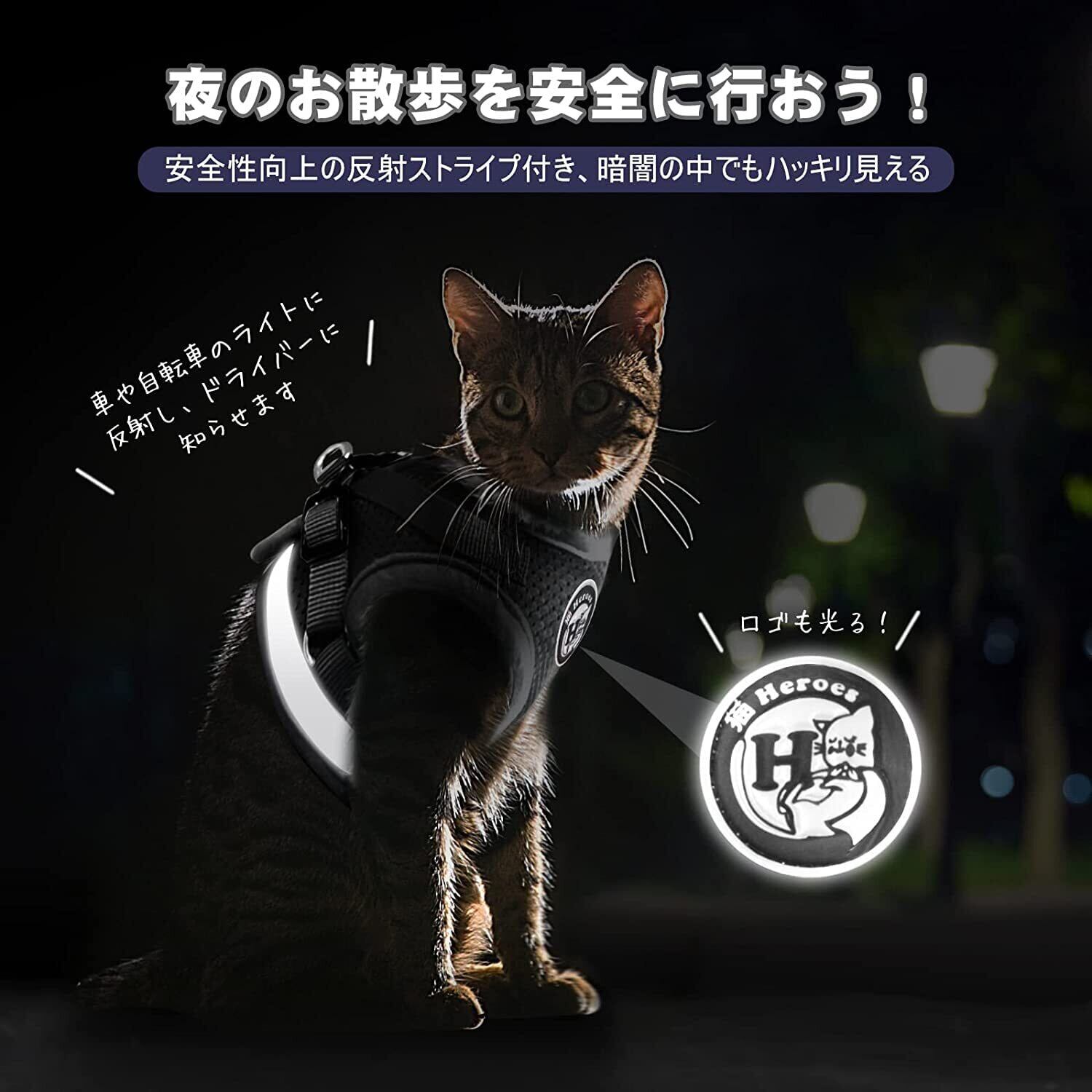 【夜でも安心の反射ストラップ付】自動車や自転車のライトに反射するストラップが胴回りについていますので、夜でもドライバーに気が付いてもらえます。お散歩が夜になっても安心です。