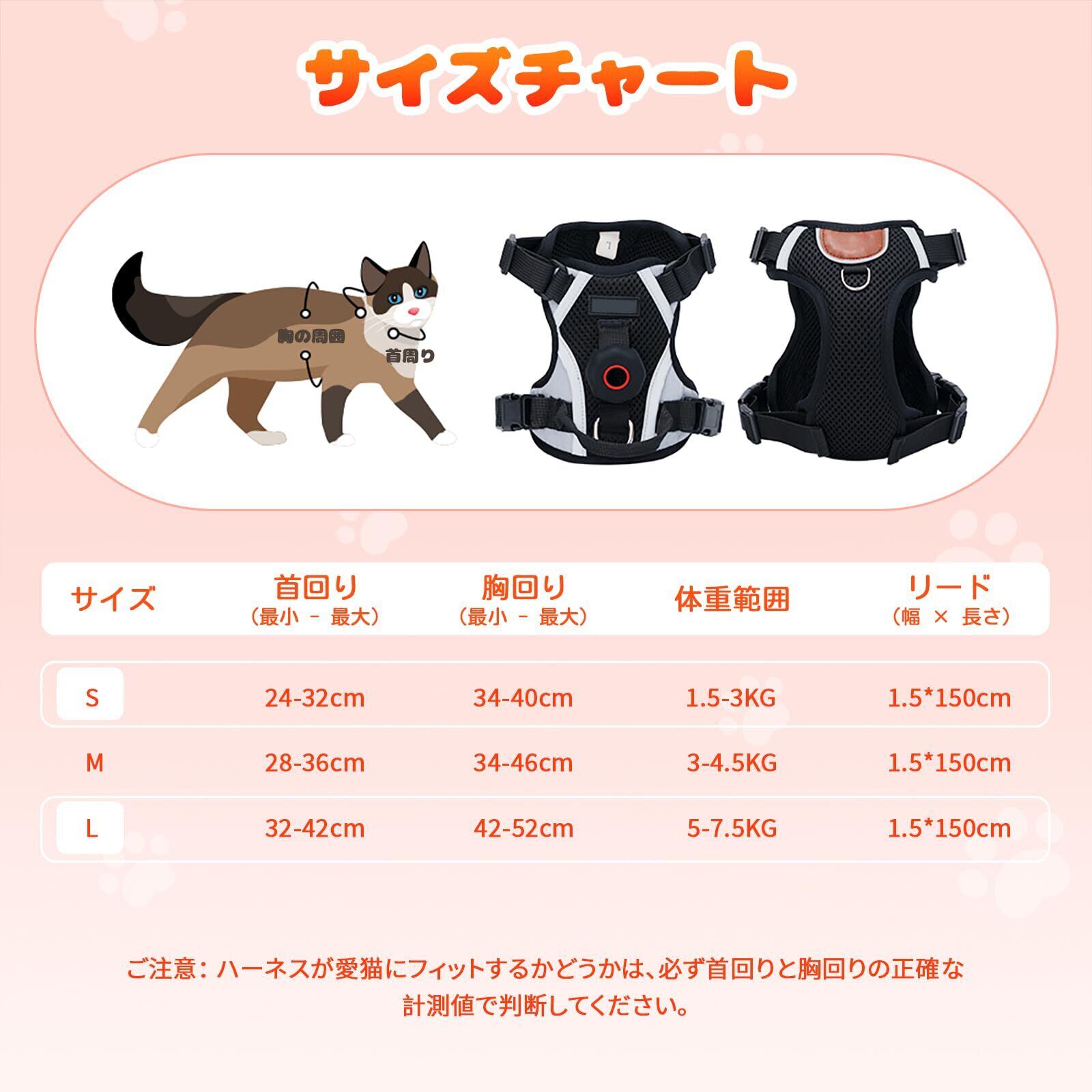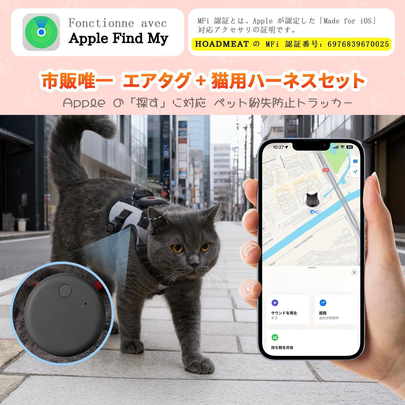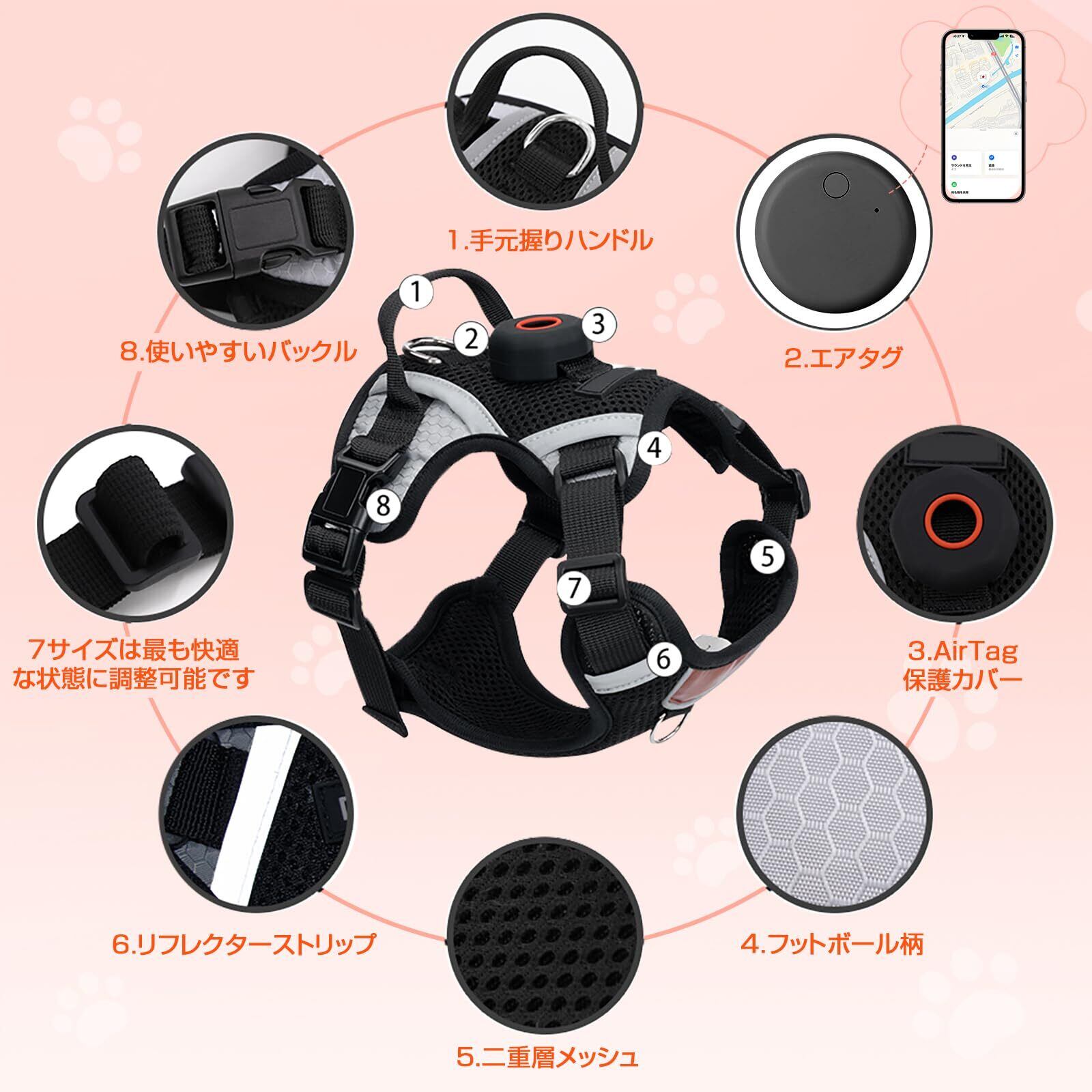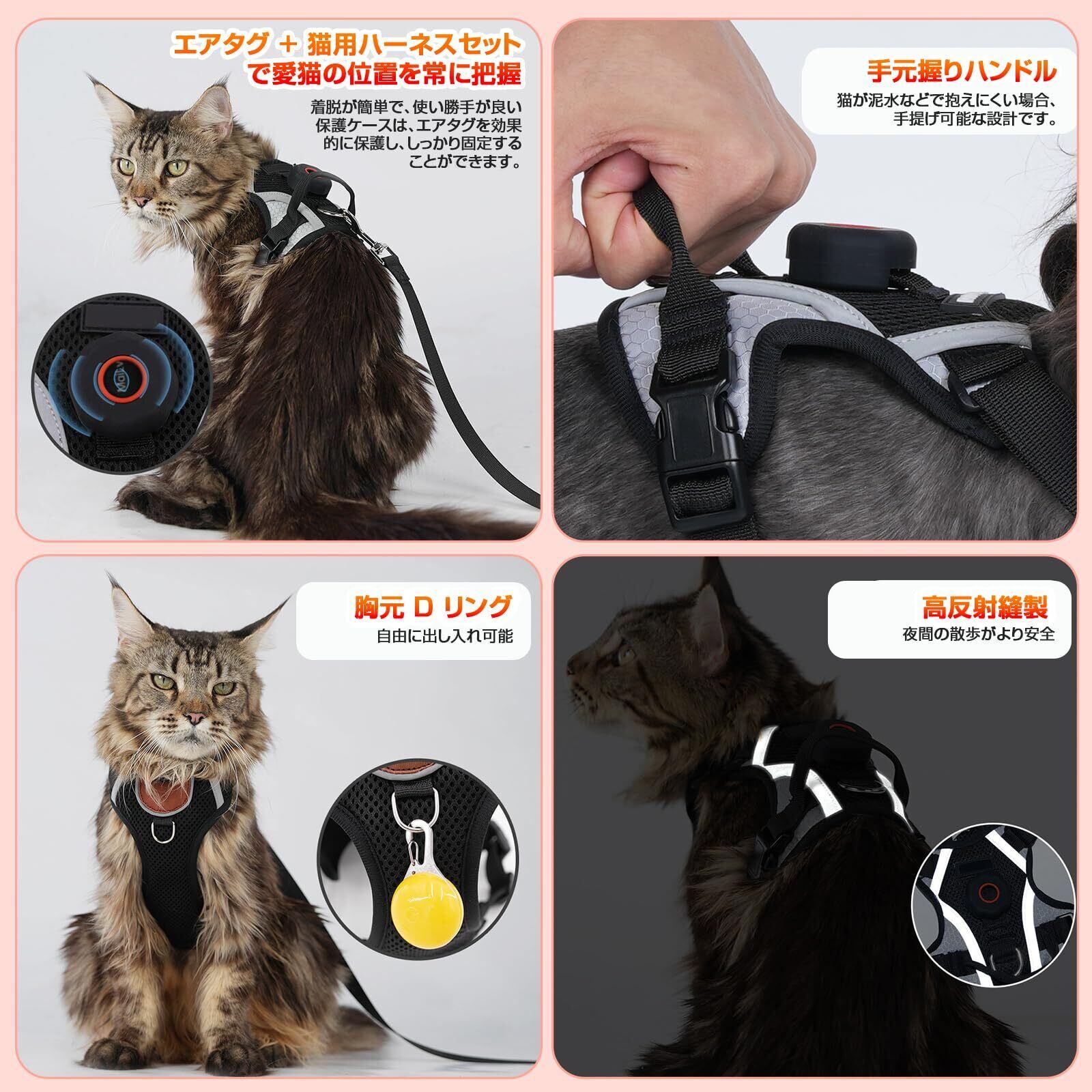 【エアタグ + 猫用ハーネスセット 】エアタグ収納専用デザインで で愛猫の位置を常に把握 散歩 お出かけ迷子防止 イズ調節可 夜反射 ソフト胸あて 通気メッシュ+手提げ可能な設計ですサ 210mAh CR2032 iPhone「探す」 月額費不要 (M サイズ)