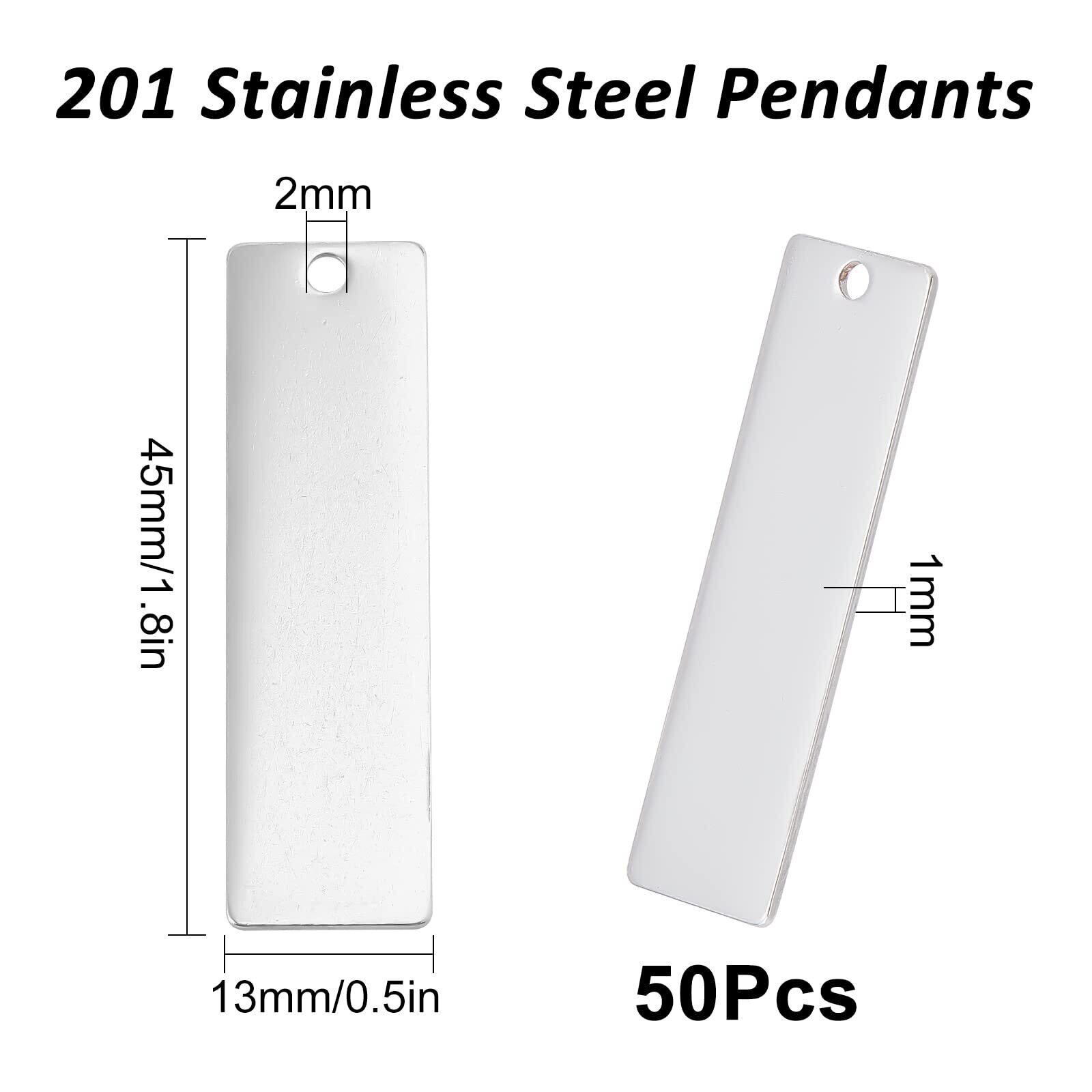 SUNNYCLUE 1箱50個 45mm ブランクタグ ネームタグ ステンレス チャーム ブランク タグ ブランク ペンダント 長方形 チャーム 空白札 ペンダント 四角形 刻印可能 ID タグ プレート メタルチャーム 垂れ飾り 迷子札 猫犬 首輪用 チョーカー 金具 留め具 ジャンプリング ブレスレット チャーム 穴付き チャーム 番号札 セット 名札 セット キーホルダー アクセサリーパーツ