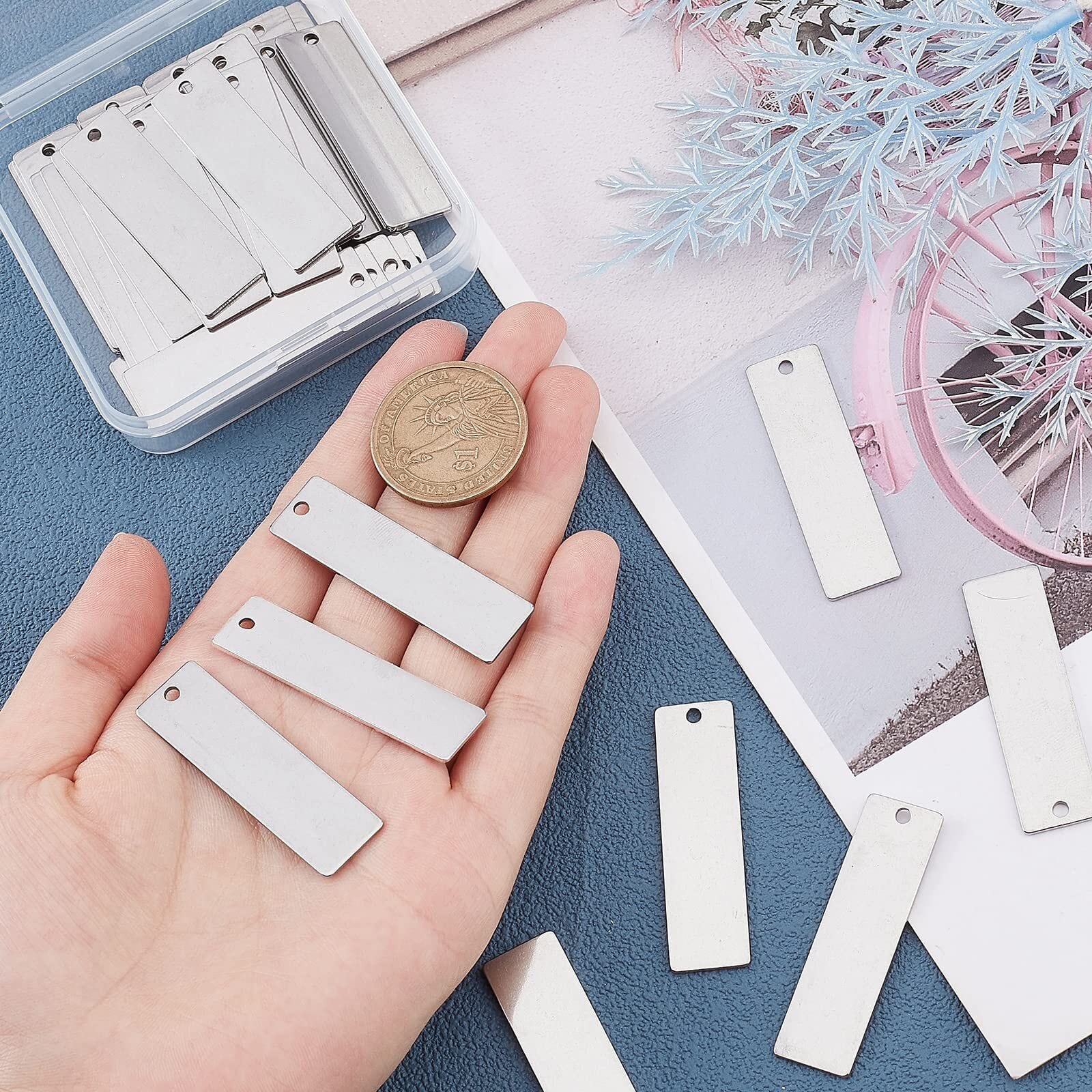 【50種空白チャーム】:ブランクタグは簡単な長方形を選び、50個もあり、数が非常に多く、大量のブランクタグを必要とするお客様に最適です。またはブランクタグの表面は非常に質感のあるステンレス色で、とても特別なデザインです。