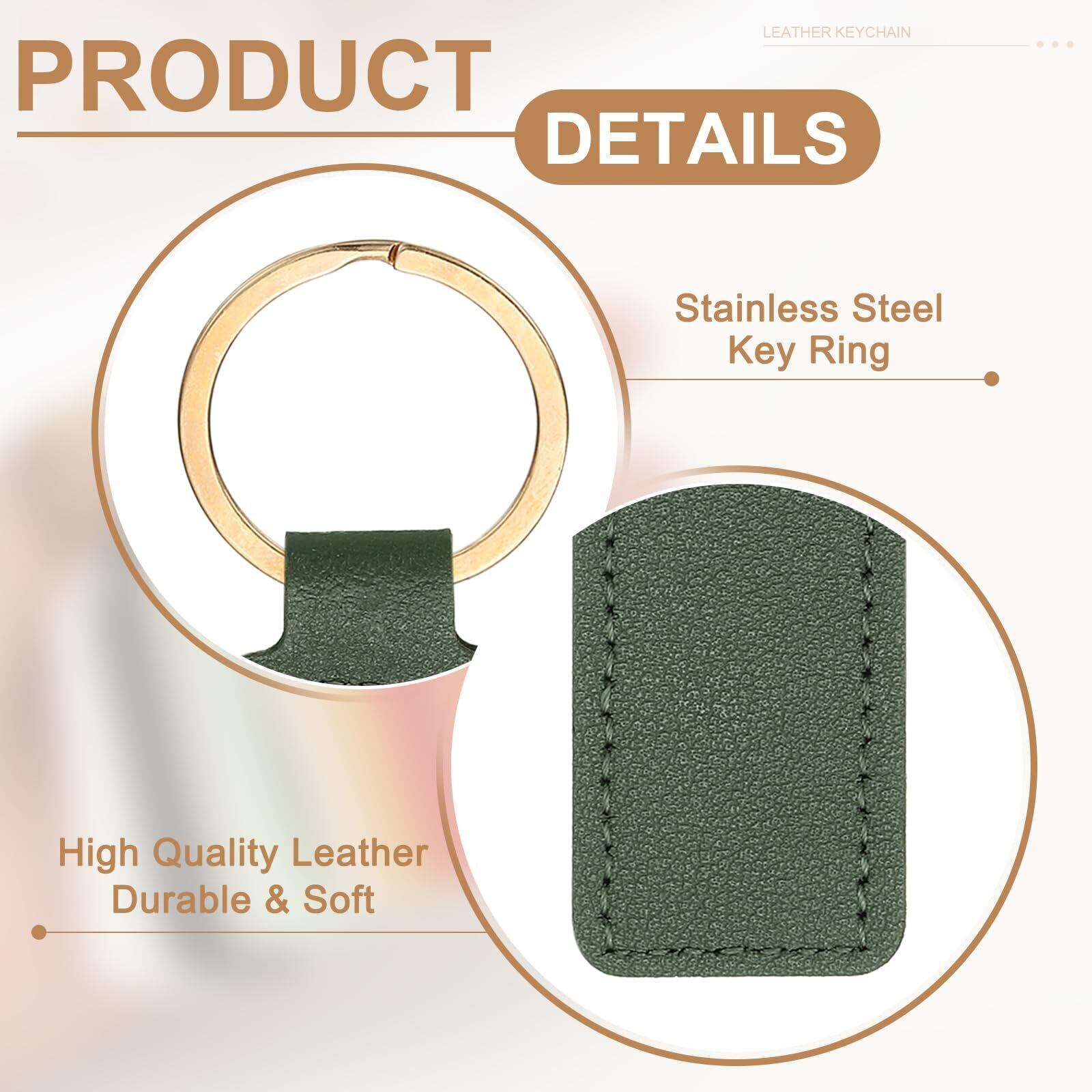 利点:レザーキーホルダーにお気に入りのパターンや画像をDIYデザインし、印刷することができ、優雅でクラシックでファッショナブルです。レザーキーチェーンは、細かい質感、柔らかい触り心地、柔らかい光沢を持つPU素材で作られています。
