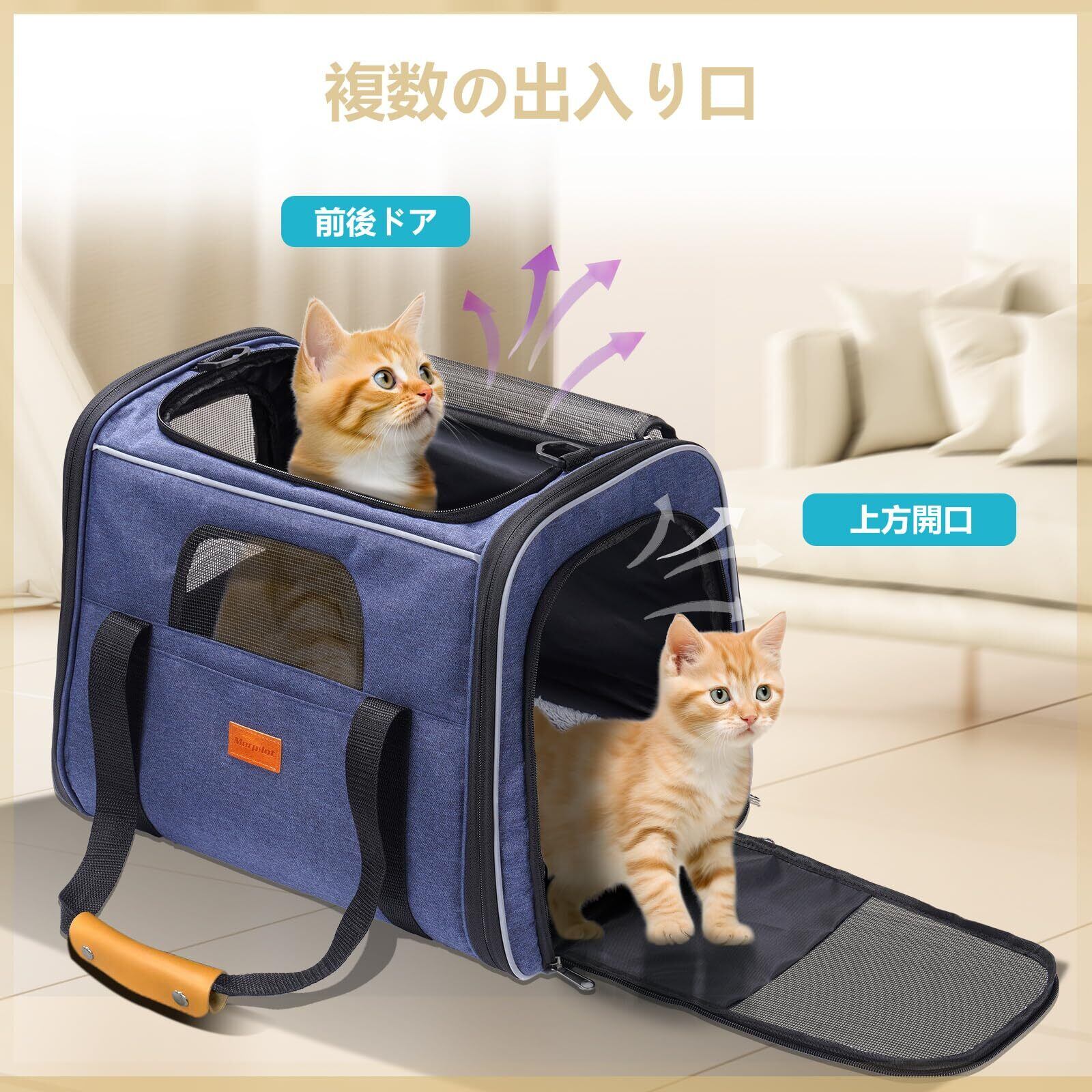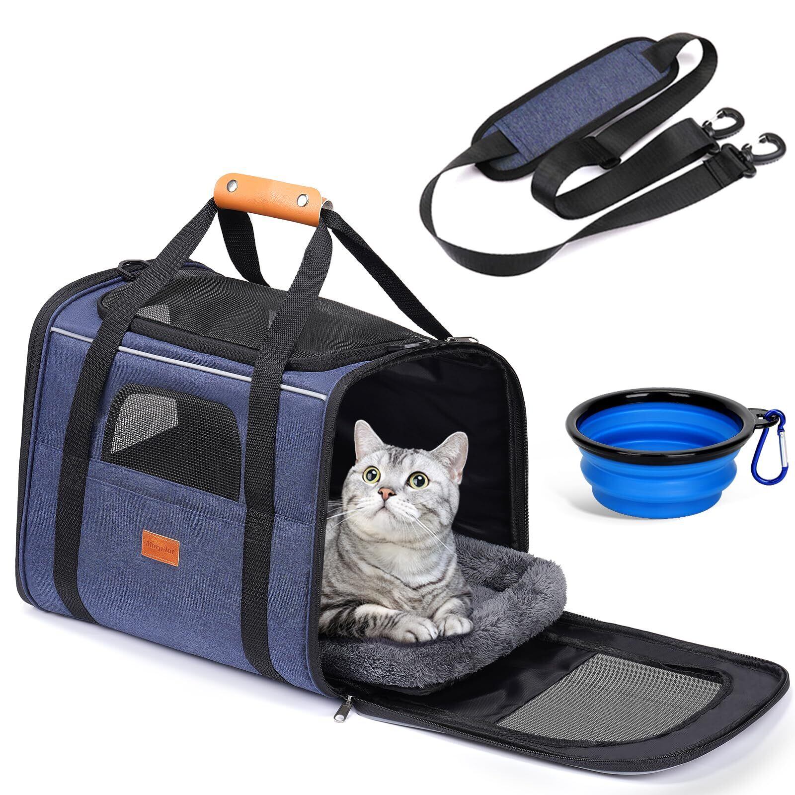Morpilot ペットキャリー 猫 きゃりーバッグ 4way ショルダー 中・大型猫・小型犬・うさぎ用 リュック 折りたたみ 通気性 臭気がない 引っ掻き傷に強い 車載/ドライブ/キャンピング/旅行/通院/災害避難用 猫 バッグ (マット/飛び出し防止リード/猫食器付き) (ライトグレー Mサイズ:43*28*35cm)