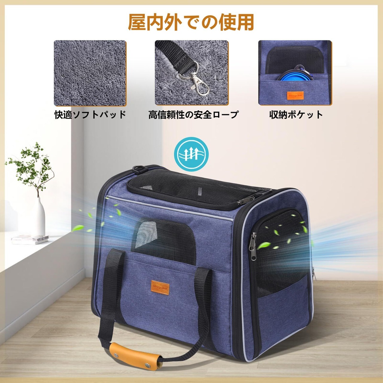 【高品質・通気性が抜群】サイドドア を備えて、ペットバッグの安定性を維持しながら、出し入れを容易にする。4つのメッシュ窓をを備えて、ペットの顔出しが可能になります。ペットに新鮮な空気を与え、窮屈な感じを与えません。メッシュ窓は高品質の材料を使用して作られて、引っ掻き傷に強い。